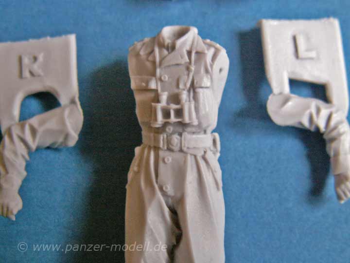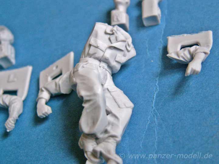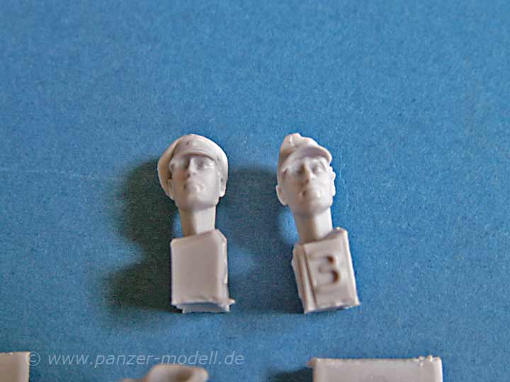 Beides sind Vollfiguren, denen nur noch Köpfe und Arme angeklebt werden müssen und weisen eine gut wählte Haltung auf, die sie mit der Wahl der Köpfe zu individuellen Schönheiten macht - gerade die eine Figur, die leicht sitzend modelliert ist, macht sich in vielen Sizuationen auf einem Panzer gut und bringt Leben mit hinein.