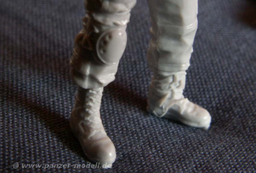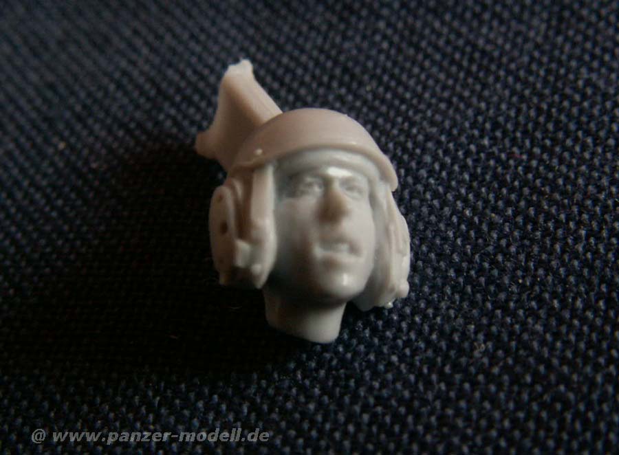 Wie gewohnt ist jede Figur schon mehr oder weniger komplett gegossen und es müssen nur Arme und Kopf angeklebt werden, was den Bau enorm beschleunigt. Für jede Figur stehen natürlich wieder je zwei verschiedene Köpfe zur Verfügung - in diesem Fall entweder mit Combat Helm oder mit Spechhauben Helm von Panzerbesatzungen. In beiden Fällen sind die Details, insbesondere des Gesichts sehr schön wiedergegeben.