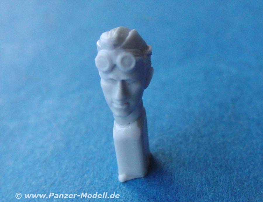 Für beide Figuren liegen wahlweise je zwei Köpfe bei - natürlich jeweils mit Fallschirmjäger Helm und jeweils mit Schiffchen. Je ein Kopf mit Schiffchen und Helm hat dabei eine hochgeschobene Staubschutzbrille, die das Erscheinen noch etwas auffälliger macht.