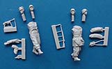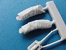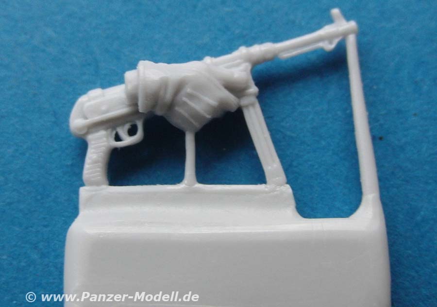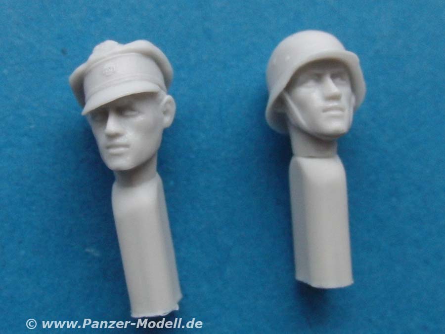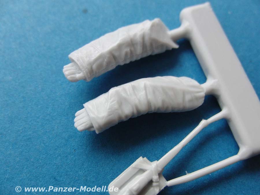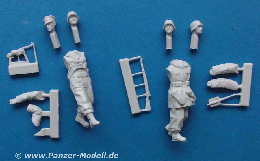 Beide Figuren sind quasi komplett gegossen. Es müssen lediglich noch Köpfe und Arme angeklebt werden. Zusätzlich gibt es noch Handwaffen, wie den Karabiner und die MP, die separat an die Figur geklebt werden, wobei an der MP bereits die rechte Hand der Figur mit angegossen ist.