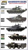 Was ist denn Novorossiya? Es handelt sich hierbei um einen historischen Begriff des ehemaligen russischen Reiches und steht für New Russia oder Neurußland, einer Region nördlich vom Schwarzen Meer (heute Teil der Ukraine). Enthalten sind sechs kleine Farbflaschen mit verschiedenen Farbtönen zu je 17ml Inhalt inklusive einer kleinen Stahlkugel. Diese Kugel dient dazu die Farbe durch schütteln der Flasche leichter und schneller anzumischen. Wie auch bei den bisherigen Farbsets ist die Verwendung mit Pinsel und Airbrush möglich. Das Set bietet eine Basisauswahl für die Bemalung von Fahrzeugen der neurussischen Armee. Sie führen eine Vielzahl von unterschiedlichen Tarnanstrichen auf ihren Fahrzeugen. Mit dieser Farbauswahl hat der Modellbauer die Möglichkeit viele verschiedene Tarnanstriche am Modell umzusetzen. Auf der Rückseite der Verpackung werden fünf mögliche Varianten der Tarnlackierung gezeigt. Folgende Farben sind enthalten: A.MIG 053 Protective NC 1200 Special thanks to Mig Jimenez for the sample.