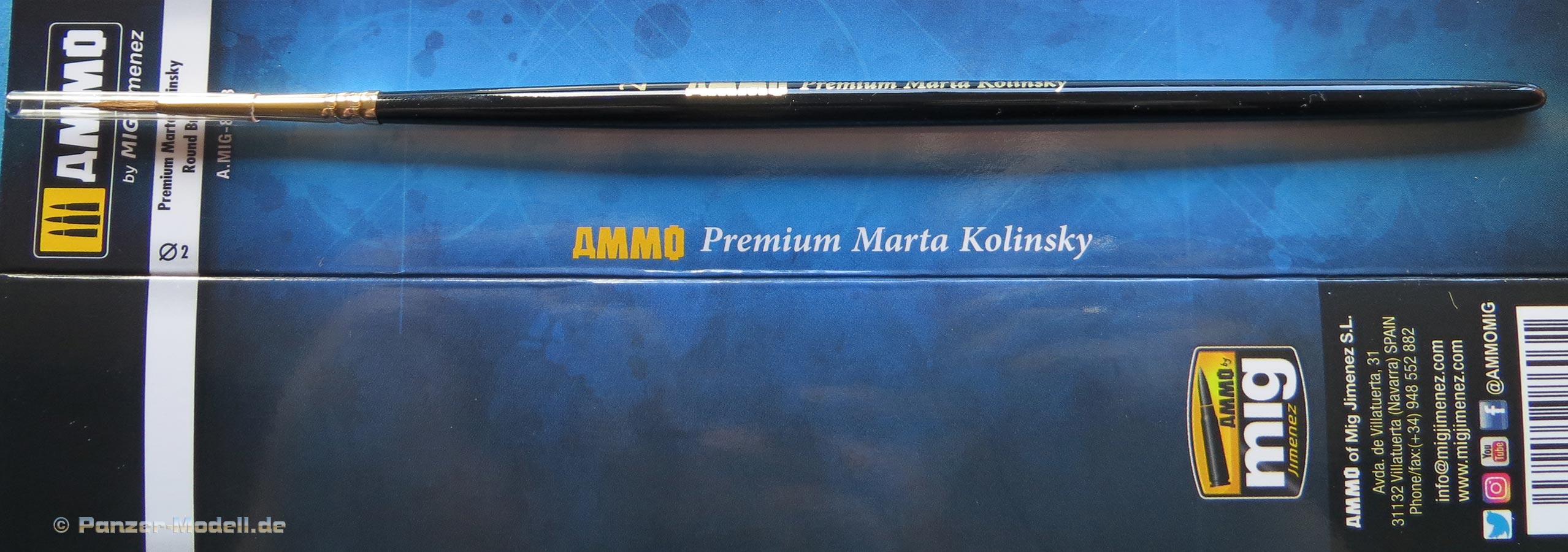 Mit der Artikelnummer A.MIG-8603 bietet Ammo by Mig ein einen Premium Marta Kolinsky brush #2 an.