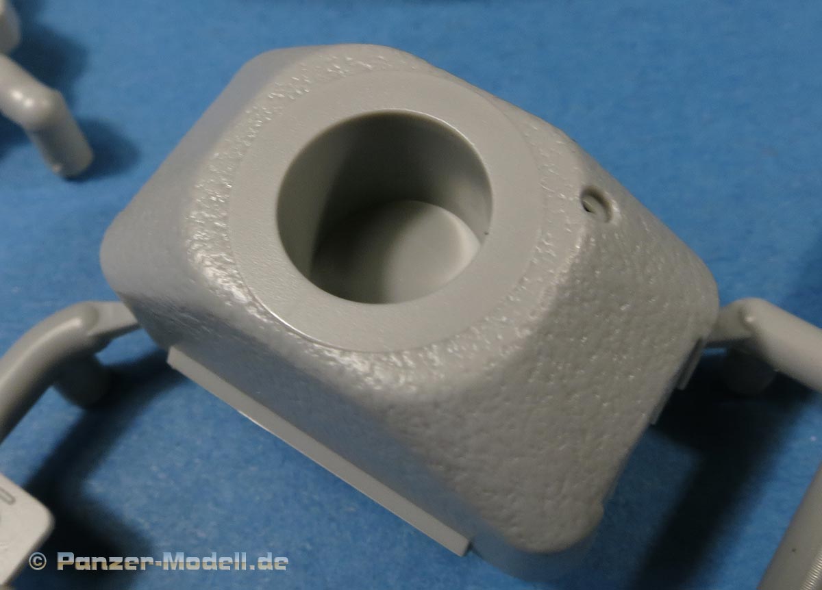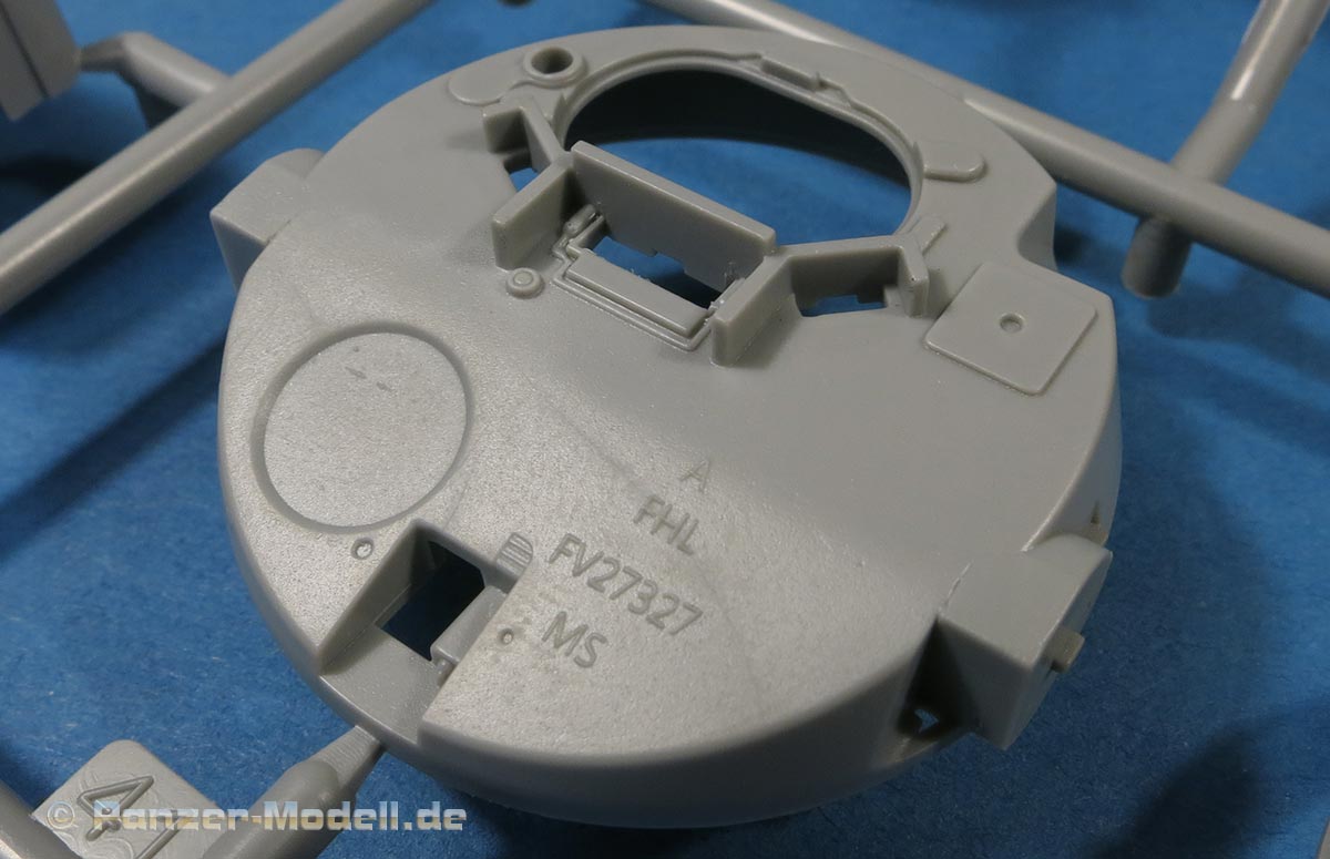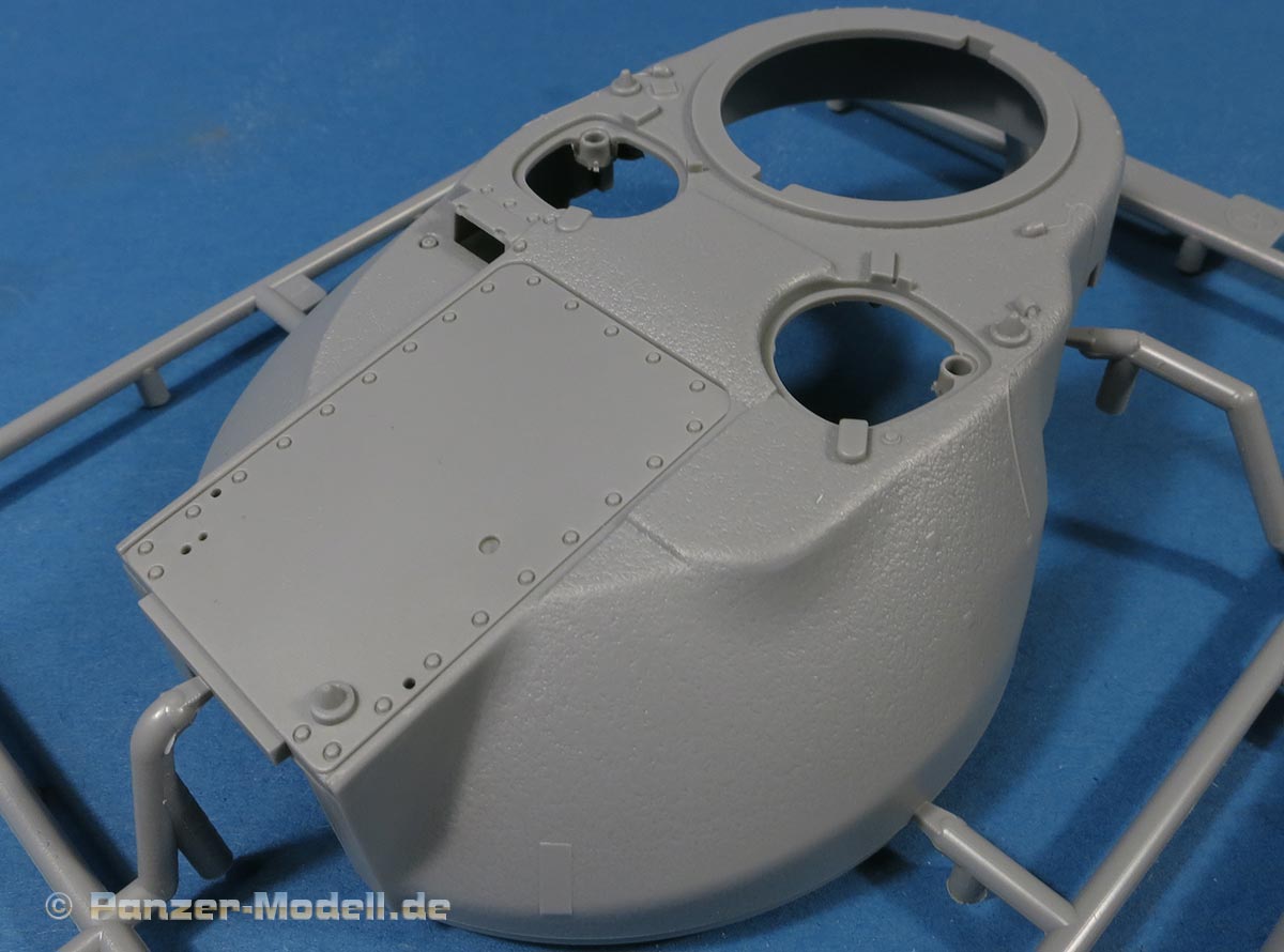 Die Luken für Fahrer in der Wanne und die Luken im Turm sind allesamt offen und geschlossen baubar. Die Kommandantenkuppel bleibt drehbar und weist einige schöne Details inklusive der Gussnummer auf, die sehr schön und markant dargestellt ist.