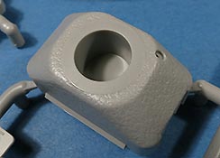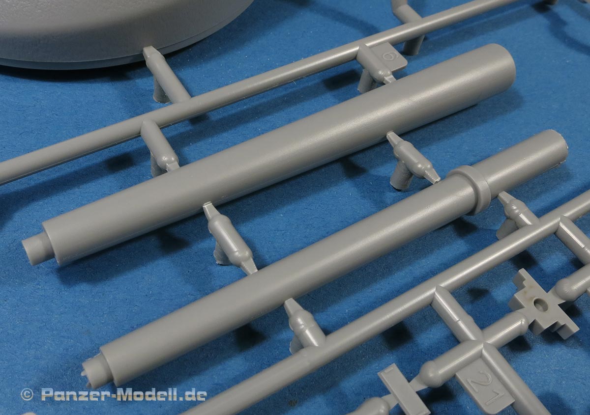 Das Rohr setzt sich aus 3 Teilen zusammen, die ineinandergesteckt und verklebt werden. Erfreulich ist hier dass es keine Halbteile sind und man daher keien lästigen Nähte verschleifen muss. Das Rohr wird dann in die Kanonenblende gesteckt, welche widerum höhenbeweglich in den Turm eingelassen ist.