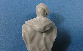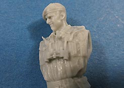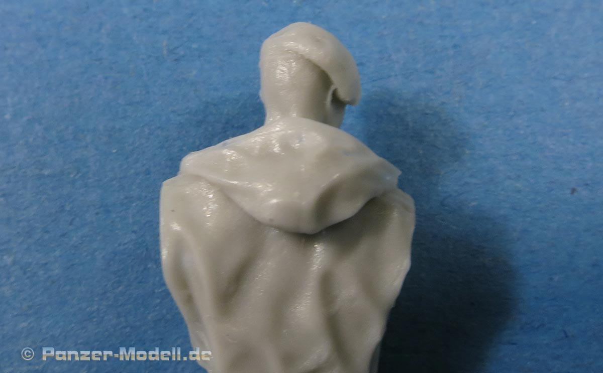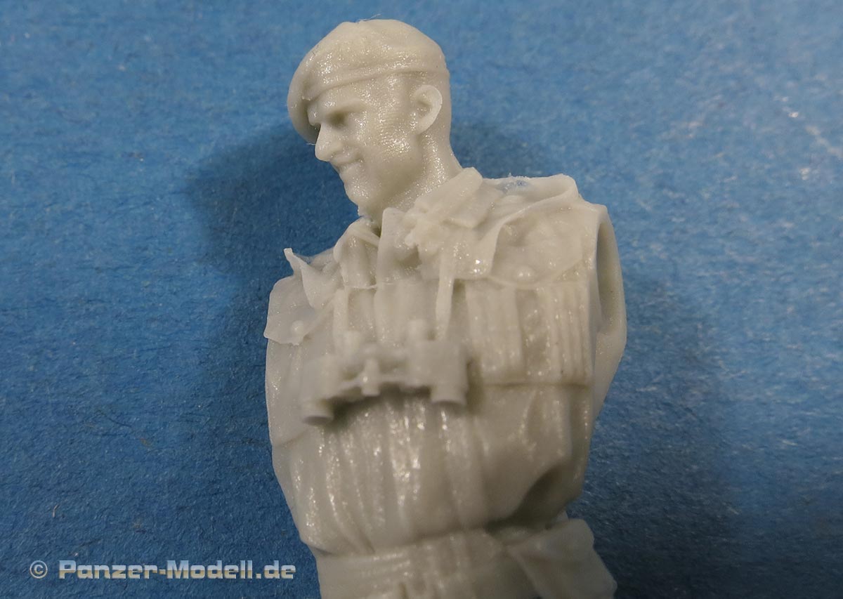 Die beiliegende Resinfigur ist fein und sauber gegossen. Die Details der Uniform sind schön dargestellt und der Kopf mit Gesicht und der Kopfbedeckung sind schon ein Hinkucker. Die Position ist locker stehend mit einer Zigarette in der Hand.