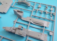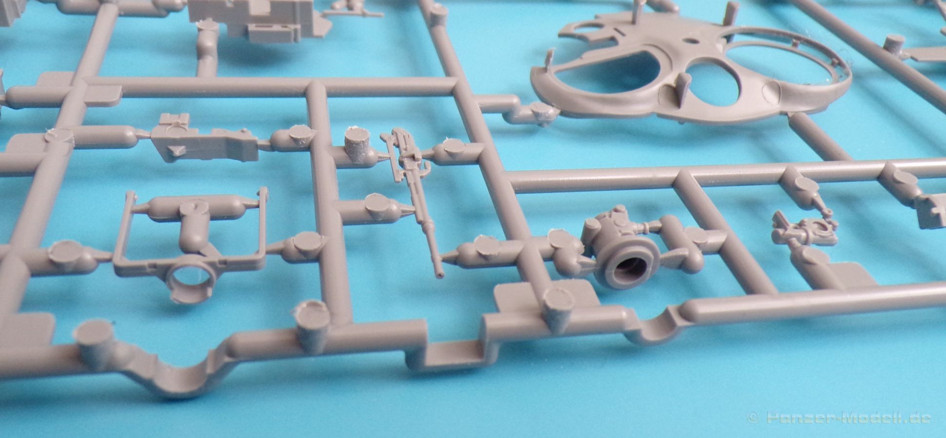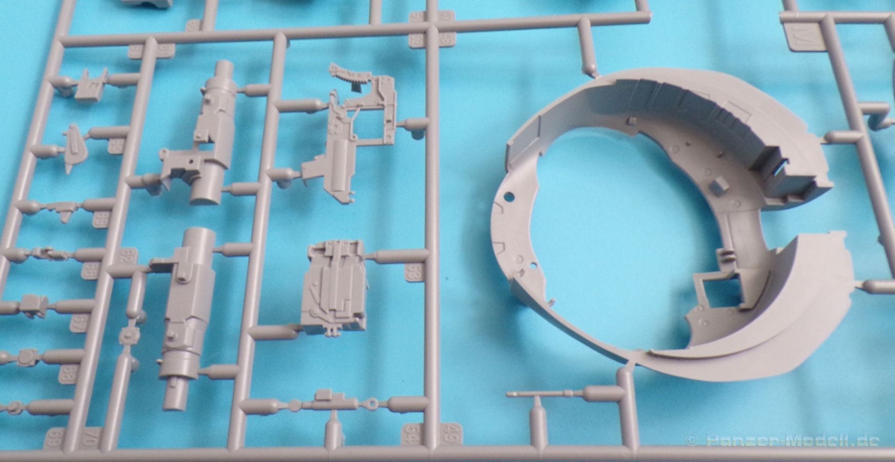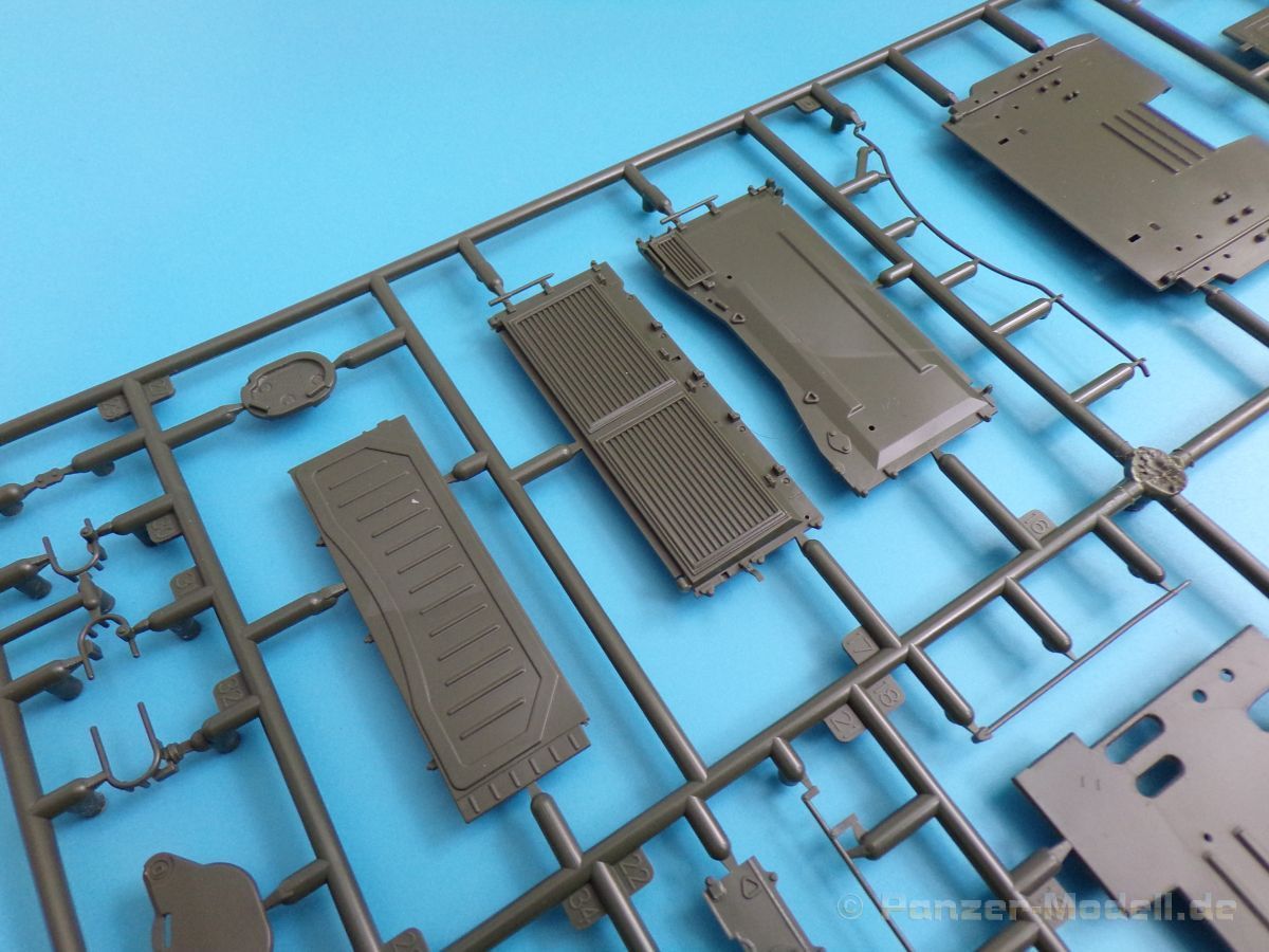 Die Detaillierung am gesamten Bausatz bewegt sich auf Top Niveau. Einige der Details werden auch durch die beiliegenden, nicht optionalen Fotoätzteile, dargestellt - zum Beispiel die Halter der Kettenbleche, sämtliche Lüftergitter und einige Details im Innenraum. An den Spritzlingen ist augenscheinlich weder Fischhaut zu finden noch sind auffällige Auswerfermarken an später sichtbaren Stellen zu erkennen.