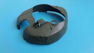 Bei der Bugplatte hat der Modellbauer die Wahl, ob er ein Fahrzeug mit Zusatzpanzerung (T-72M1) oder ohne (T-72M) bauen möchte, diese wird, wie beim Original, auf die Glacis-Platte aufgebracht. Hier befindet sich auch einer der wenigen Punkte, die mir nicht gefallen. Die Schutzkörbe der Frontscheinwerfer sollen mit schmalen Verstrebungen stumpf aufeinander gelebt werden. Das hätte man besser lösen können, zumal hier eine falsche Verklebung sofort auffällt.