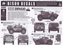 Weiter geht es mit einem interessanten Decalbogen aus dem Hause Bison Decals. Unter der Nummer 35092 gibt es einen Decalbogen für das Daimler Dingo Scout Car, welches z.B. MiniArt auf den Markt gebracht wurde.