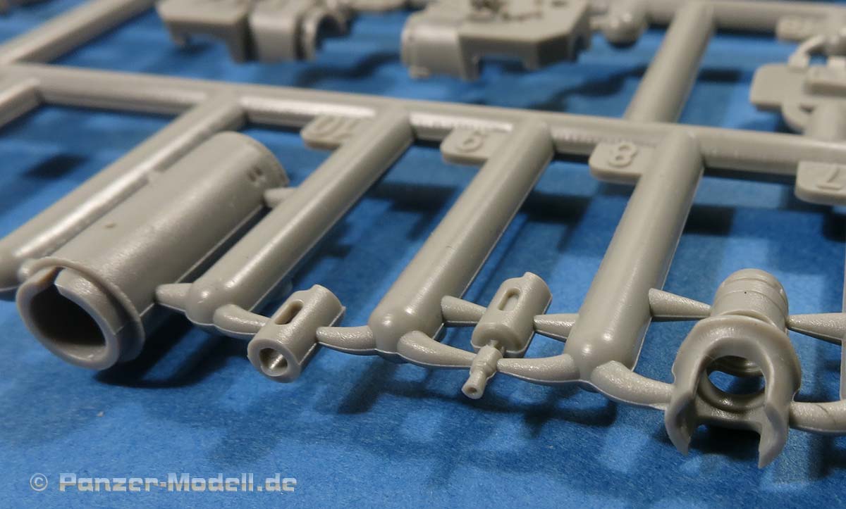 Dazu gibt es die jeweilig korrekten Mündungsbremsen, die auch einteilig mit Abschlussplatte gespritzt sind. Das sieht richtig gut aus!