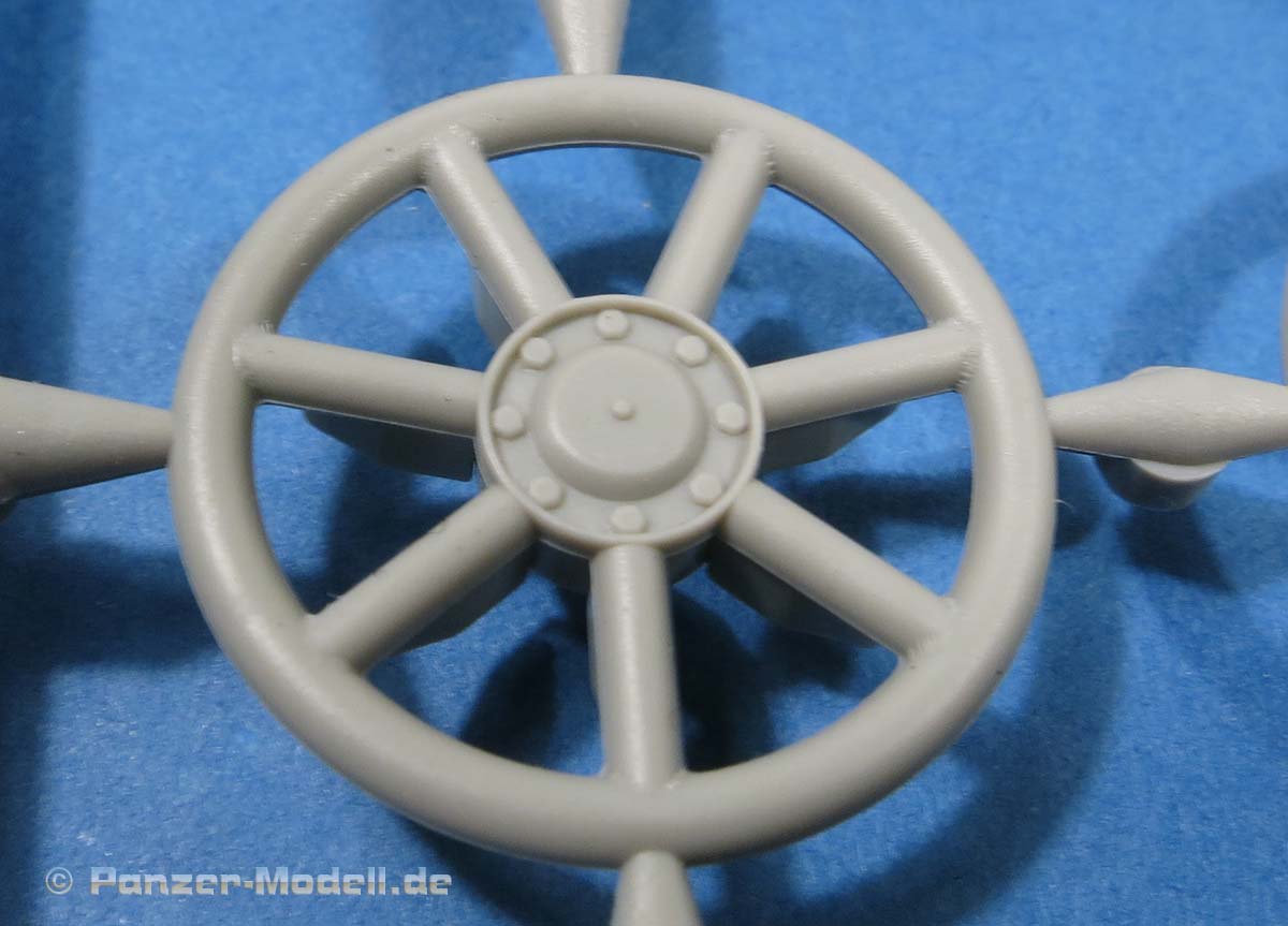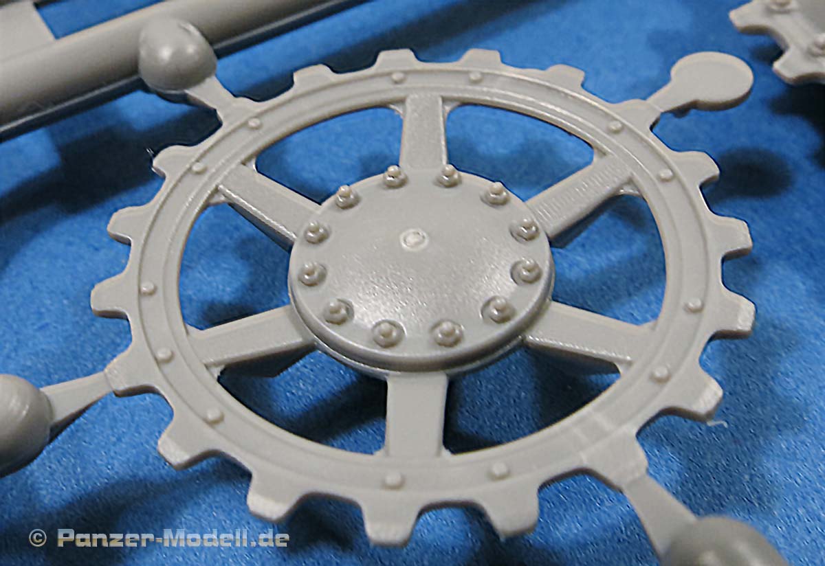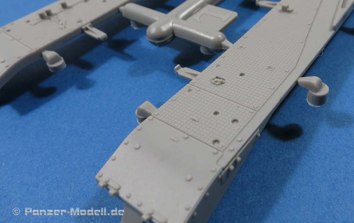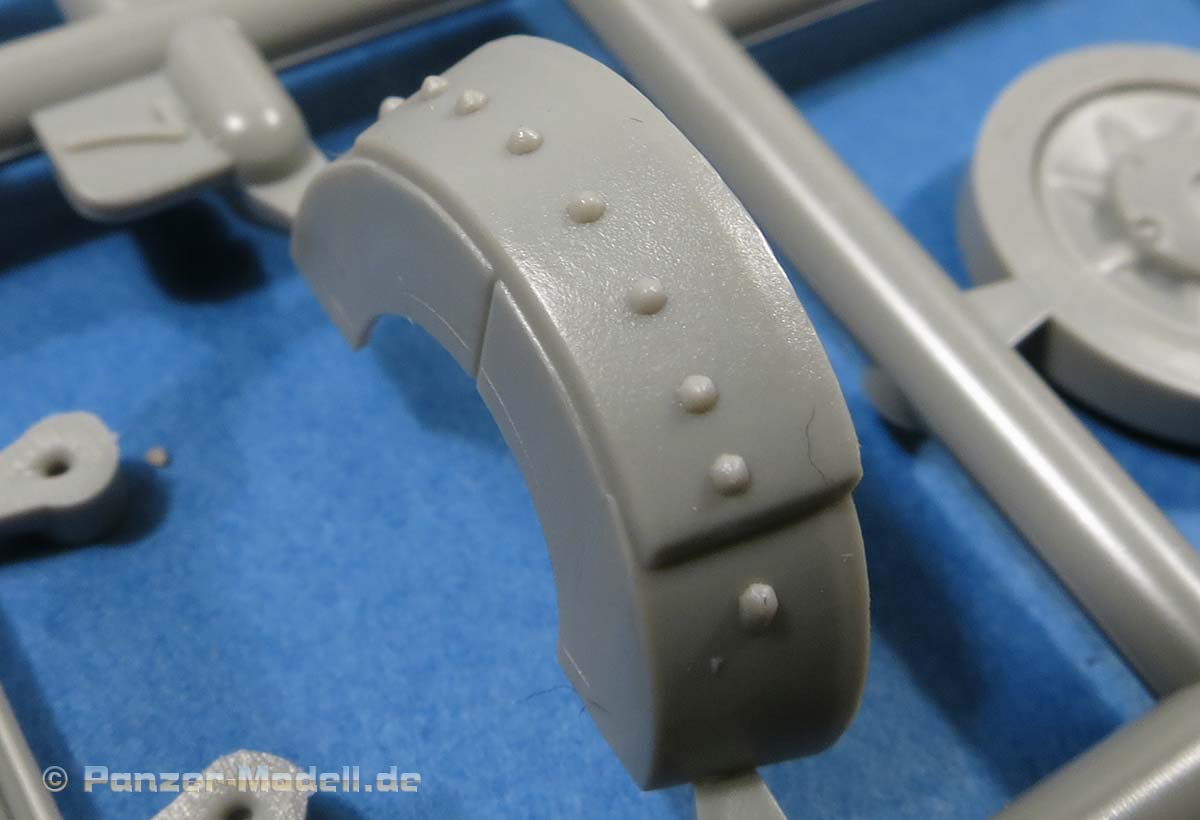 Auch sehr erfreulich ist die sehr positive Machart der Teile wenn es um Baubarkeit und Details geht - während man sich bei anderen Herstellern mit dem Anbringen einzelner Nietenköpfe an den Seitenvorgelegen herumärgert, sind diese hier bereits an dem betreffenden Teil in guter Qualität mit angespritzt.