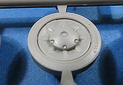 Die Heckplatte ist auch sauber und detailliert gespritzt - der große Auspufftopf ist leider zweiteilig gespritzt und das auch noch in Längsrichtung - d.h. hier gilt es dann gratfrei zu arbeiten bzw. zu versäubern.