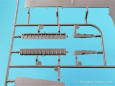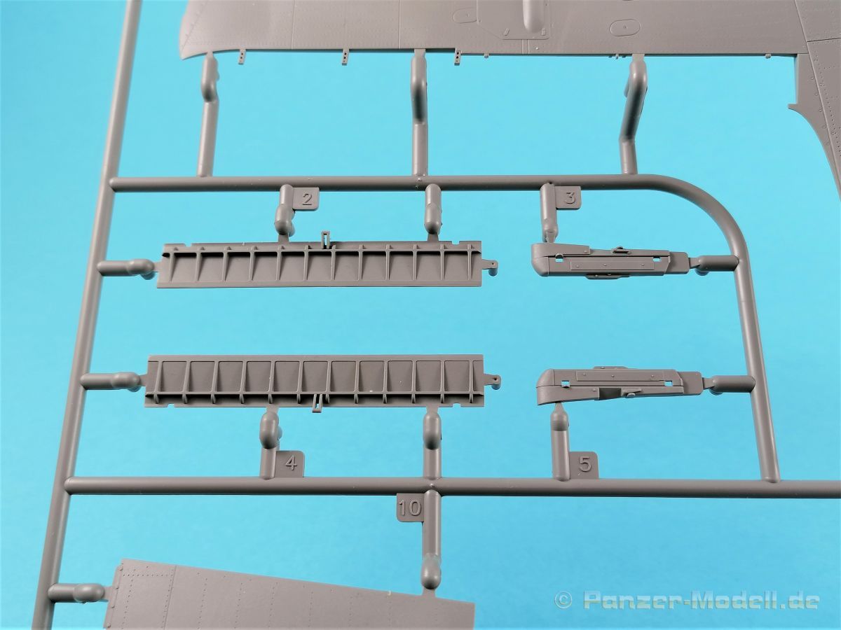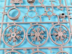Über die in rund 21.450 in verschiedensten Varianten gebaute Fw 190 werde ich mich nicht weiter auslassen. Dieses Flugzeug ist mit am besten dokumentiert; in gedruckter Form, als pdf und einer schier unerschöpflicher Form diverser Artikel im Netz. Nach der Me 109, der Ju 87 kommt mit der Fw 190 A-6 der dritte Kit im Maßstab 1:35 von Border auf unsere Basteltische. Ein Jäger und 100% kompatibel mit Fahrzeugen im selben Maßstab. Was bietet uns also der, mit einer erstklassigen Boxart von Jason versehen, 38 x 26 x 8 cm große Top-Opener. Neun Rahmen in hellgrau, ein Spritzling mit Klarteilen, eine PE-Platine und zwei Bögen Naßschiebebilder plus der obligaten Bauanleitung. Die Teile machen auf den ersten Blick einen guten Eindruck und zeigen Spritzguß auf sehr hohem Niveau. Leider finden sich bei genauerer Betrachtung doch einige Auswerfermarken in Bereichen die später einsehbar sind. Z.B. unter anderem im Bereich der Fahrwerksabdeckungen. Nicht tragisch, aber doch etwas ärgerlich. Einen Kontrollblick auf die jeweils zu verbauenden Teile sollte man sich evt. zur Gewohnheit machen… Aber das geht schon in Richtung meckern auf hohem Niveau. Egal, die Bauteile sind sehr sauber gespritzt und punkten mit einer reichhaltigen Detailfülle. Die Zelle und die Tragflächen sind mit einer Unzahl an Nieten etc. versehen. Was mir nicht so gut gefällt ist die Tatsache das viele der Blechstöße für meinen Geschmack teilweise zu prominent dargestellt sind. Das gilt z.B. für die Vorderkanten der Tragflächen, dem Rumpfrücken des Seitenleitwerks und weiteren Kleinigkeiten. Ein Vergleich mit Original-Aufnahmen mach dies deutlich. Zelle und Flügel waren eher glatt als wie im Kit dargestellt. Die anzusetzenden Ruderflächen punkten durch die Darstellung der Stoffbespannung, die die inneren Streben abzeichnen. Ein Produktionsmerkmal der 190er. Der Begriff “Stressed Skin” ist hier absolut falsch. Besonders schön umgesetzt ist auch der große Querholm in Verbindung mit den Flügeln. Top gemacht. Und dann gehen wir mal direkt zu den diversen Luken, Abdeckungen usw. Alle Teile die auch offen dargestellt werden können sind auf beiden Seiten vollkommen durchgestaltet. Somit steht beim Bau nur noch die Entscheidung des Modellbauers an was wie gebaut wird. Beeindruckend sind die Waffenstationen die jeweils aus mehreren Teilen aufgebaut werden. Alle Mündungen sind dankenswerter Weise schon aufgebohrt. Realisiert wird der gesamte Waffensatz durch die übliche Grundbewaffnung von vier MG 151/20 in den Flügeln und zwei MG 17 im Rumpf. Schon ein Bausatz im Bausatz ist die Antriebseinheit, der BMW 801 D. Alle notwendigen Teile sind ebenfalls detailreich wiedergegeben. Die Auspuffstutzen sind offen dargestellt und wurden im “Slide-Mould”-Verfahren realisiert. Versierte Modellbauer dürften den Motor sicherlich durch diverse Leitungen und Kabel noch weiter verfeinern. Die hohe Detailfülle der Teile setzt sich nahtlos im Cockpitbereich fort und gibt ein schönes Gesamtbild ab. Hervorzuheben sind ebenfalls die Teile der WGr. 21 bei denen die Rohre ebenfalls im “Slide-Mould”-Verfahren hergestellt sind. Erste Sahne. Der Guß (o.a. Kritikpunkte lassen wir außen vor) kann auf ganzer Linie überzeugen und die Passung sollte erneut, wie bei den beiden Vorgängern, sehr gut sein. Dem Muster lag kurioserweise ein Rahmen “I” bei, der in der Gesamtübersicht nicht vorhanden ist. Dieser kann getrost auf die Seite gelegt werden da die Teile auf eine A-8 hinweisen. Verpackungsfehler? Sehr gut sind die Klarteile der Kanzel die den Namen “Klar” auch verdienen. Die im Kit enthaltene PE-Platine birgt eine ganze Reihe von sehr gut gestalteten Bauteilen. Eindruck macht besonders das Gurtzeug des Piloten. Und damit kommen wir zu dem “Instruction Sheet”. Während sich auf der ersten Seite die Box-Art wiederholt ist die zweite Seite blank. Auf Seite drei die übliche Aufstellung des Schachtelinhalts. Eine normalerweise in diesem Bereich abgedruckte Farbtabelle sucht man vergebens. Die Farben (exclusiv von AMMO by MIG) sind bei den entsprechenden Bemalungsvorschlägen (sieben) angegeben. Ärgerlich ist aber die Tatsache (Über den falschen Begriff “Messerschmitt” kann geschmunzelt werden.) das von diesen sieben Varianten am Ende nur vier zur Verfügung stehen. Die Vorschläge fünf bis sieben sind nicht realisierbar, da es keine A-6 sind, auch wenn die falschen Profile eine A-6 zeigen. Aus diesem Grund sind diese nicht im Bildteil aufgeführt. Hilfreich zur Alterung der Maschine sind die Hinweise dazu im unteren Bereich der jeweiligen Seite. In insgesamt 18 Schritten soll die 190 fertiggestellt sein, allerdings müssten es 19 (!) Baustufen sein. Dazu aber w.u. mehr. Alles beginnt mit dem Bau des Motors der drei Untergruppen benötigt. Dieser ist recht komplex und beinhaltet kleine und kleinste Teile. Sorgfalt ist unabdingbar. Stufe 2 erklärt den Bau der Waffenanlagen in den Tragflächen während diese u.a. in der nächsten Stufe in den Unterflügeln montiert werden. Gleichzeitig muß der Modellbauer entscheiden ob die WGr. 21 montiert werden soll. Wenn ja, dann sind entsprechende Löcher zu bohren. Worauf die Bauanleitung nicht eingeht ist die Tatsache das bei Verwendung des Werfers die äußeren Waffenpakete in der Regel ausgebaut wurden. Lediglich ein Stummel der Rohrummantelung ist zu sehen. Fotos dazu finden sich im Internet. Allerdings ist es kein Beinbruch wenn die Bewaffnung so bestehen bleibt. Nachdem das Cockpit vervollständigt ist und in die Rumpfhälften eingebracht wurde kann die untere Flügelsektion angebaut werden. Es folgen die Tragflächenoberseiten mit den verschiedenen Höhenrudern, die in verschiedenen Stellungen verbaut und fixiert werden können. Ist dieser Punkt erreicht erfolgt der Einbau des Motors mit den Motorträgern und allen Abdeckungen. In diesem Schritt fällt auch die Entscheidung ob die Wartungsklappen offen oder geschlossen dargestellt werden. Ein Außenlastbehälter