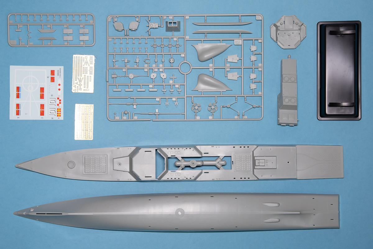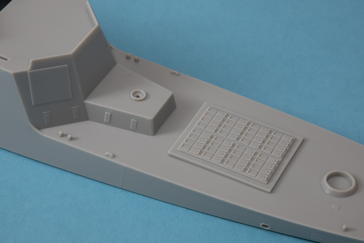 Fazit: Der Bausatz ist sicher gut baubar. Der Spritzguss und die Passgenauigkeit machen einen guten Eindruck. Wegen der geringen Teileanzahl und der aufgeräumten Decks ist der Bausatz sicher auch sehr gut für Einsteiger in den Schiffsmodellbau geeignet. Auf der einen Seite präsentiert Bronco uns hier ein sehr aktuelles Modell. Das Vorbild ist erst wenige Tage in Dienst, da halten wir schon den Bausatz in den Händen. Die Kehrseite der Medaille ist leider, dass doch sehr viele Details fehlen. Bronco hat mit anderen Bausätzen gezeigt, dass sie das definitiv besser können. Ich vermute, dass zum Zeitpunkt der Formerstellung viele Details am Vorbild einfach noch nicht montiert, bzw. einfach nicht öffentlich bekannt waren. Aus der Schachtel gebaut entsteht sicher ein schönes, aber auch etwas vereinfachtes Modell, welches die markanten Charakteristika eines Typ 055 Zerstörers gut wiedergibt und im Bau keine besonderen Hürden bereithält. Fortgeschrittene Modellbauer werden jedoch sicher Details ergänzen wollen, da das Modell aus der Schachtel wahrscheinlich schon etwas leer wirken wird. Von der Firma BigBlueBoy gibt es bereits ein passendes Set mit Ätzteilen.