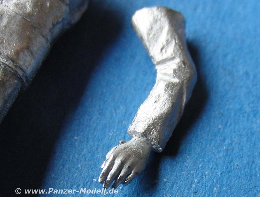 Die Komplettfigur ist der Einweiser. Er besteht aus einem in sich komplett gegossenen Körper mit den beiden separaten Armen und dem Kopf.