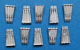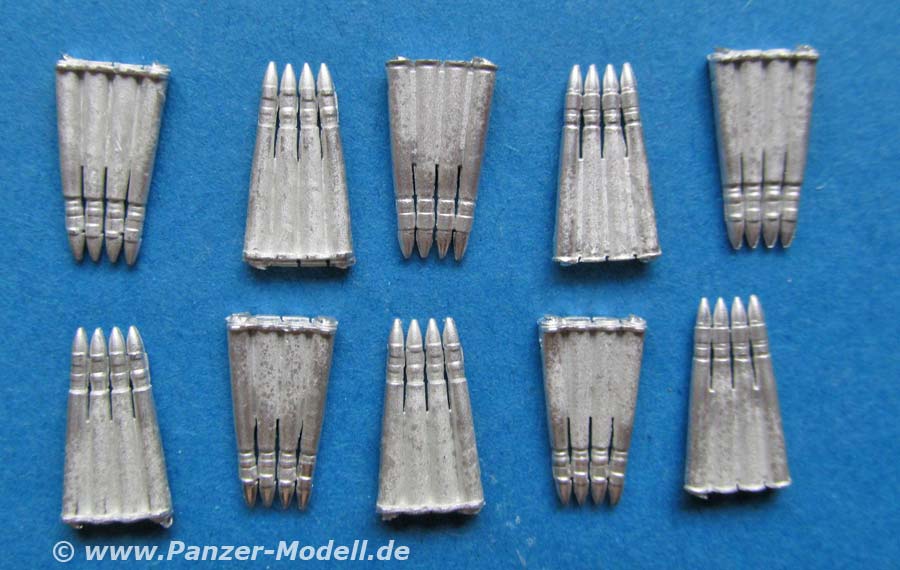 Dieses Set enthält insgesamt 10 Metallteile, die jeweils einen 4er Ladestreifen 40mm Munition für die Bofors Flak darstellen.