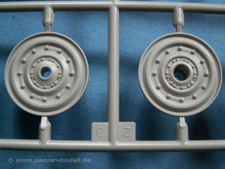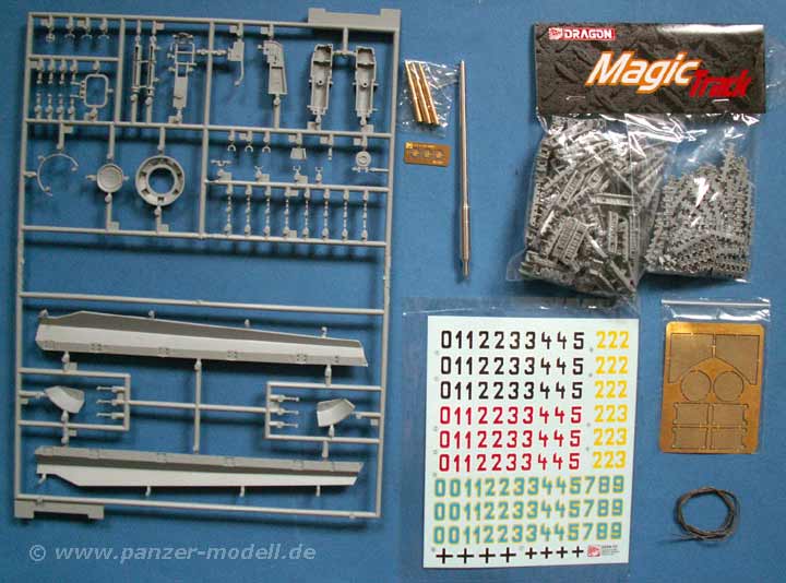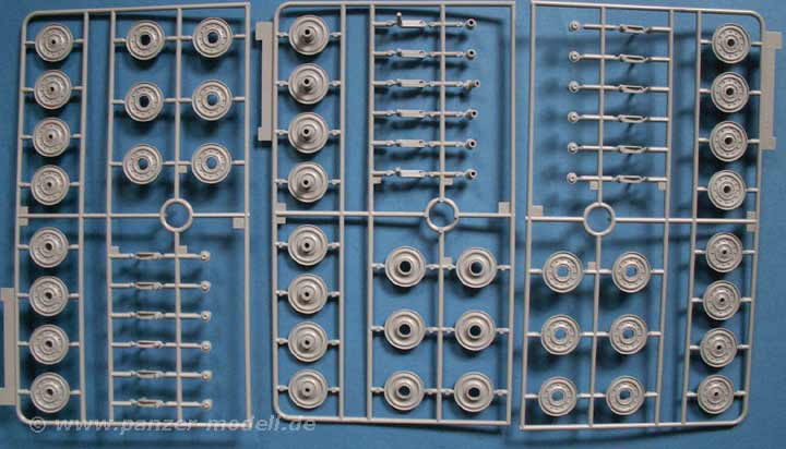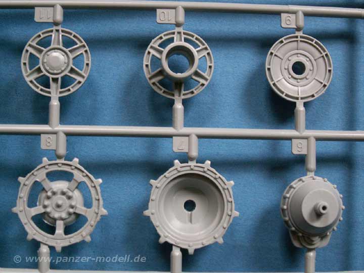 Besonders positiv fallen die neugestalteten Laufrollen, sowie die Kette (Gg26/800/300) als Magic Tracks auf. Gerade letztere ist als Einzelgliedkette, die schon geschnitten und versäubert in Tütchen vorliegt ein absolutes Plus! Die Treibräder sind vom 9-zähnigen Typ