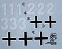 An Markierungen sind nur wenige vorhanden und die Bauanleitung hat 3 Markierungsvorschläge - alle von der Stu.Pz.Abt.216 in Italien 1944. Markiert mit Balkenkreuzen und einer Ziffer von 1-3. Das Tarnmuster ist jeweils gleich - mal mit mal ohne Schürzen und braune Tarnstreifen auf sandgelb.