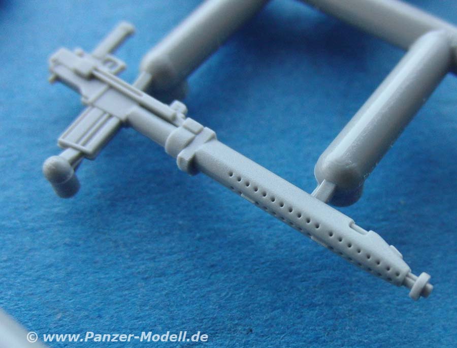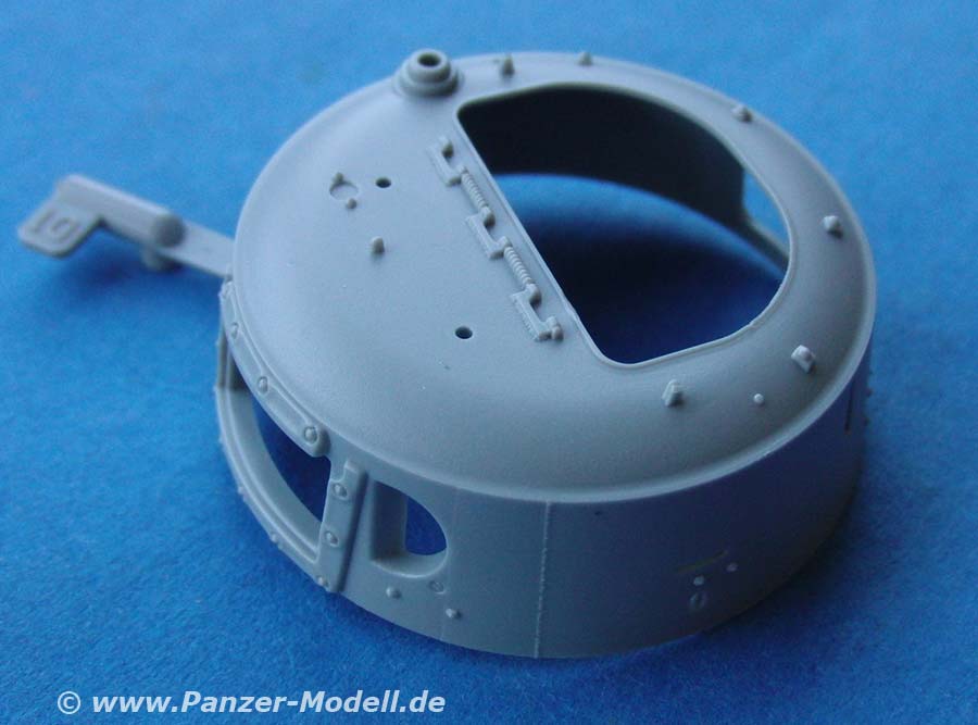 Der Turm ist hervorragend in seiner Form und so feinen Details wie den Nieten wiedergegeben. Die Kanone ist zwar nur aus Plastik, aber dafür in einem Stück und recht gelungen. Gerade am Turm gibt es recht viele Optionsteile der Klappen und Anbauteile.