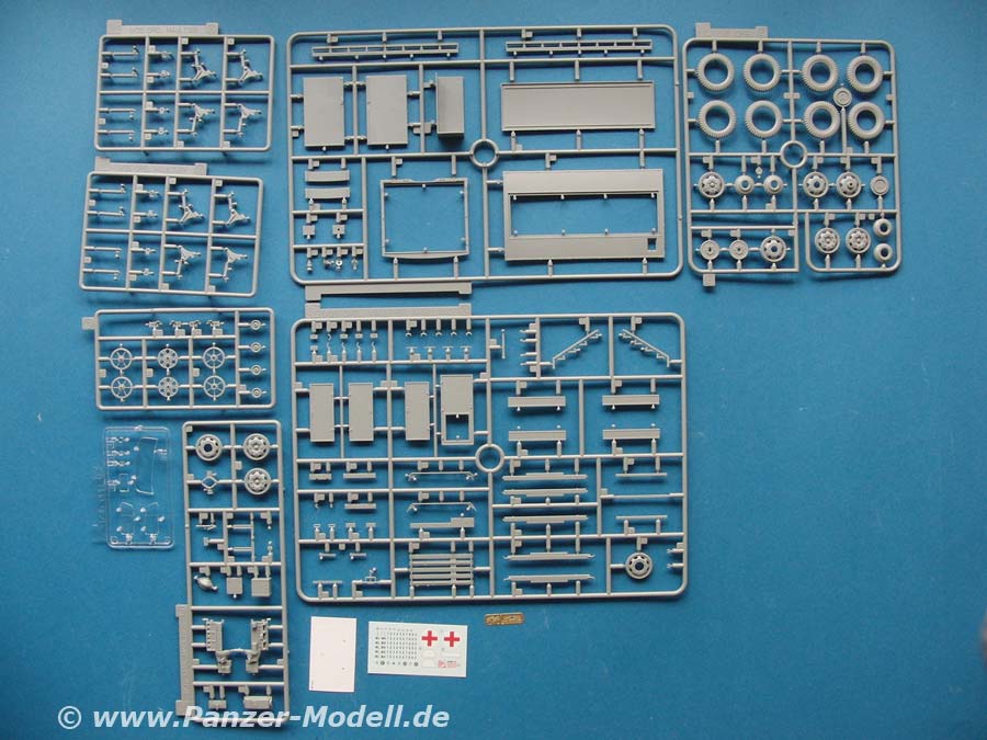 Im Bausatz enthalten sind über 550 Teile an 23 mehr oder weniger großen Spritzlingen, dazu 2 Spritzlinge mit Klarsichtteilen, Magic Tracks, eine kleine PE Platine und zwei kleine Decalbögen.