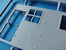 Die Seitenwände und natürlich die heckwand erfreuen zudem mit Türen, die man offen darstelllen kann. Durch diese und die mit Klarsichtteilen zu versehenden Fenster kann man ganz gut in den Innenraum blicken. Die Heckwand besteht eigentlich nur aus zwei großen Türen und einer schön gestalteten Treppe mit einzelnen Stufen. Diese lässt sich entweder hoch oder abgeklappt darstellen.