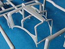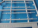 Die Inneneinrichtung kann sich durchaus sehen lassen: Staukisten und Schränke, Klappsitze für das medizinische Personal, ein Ofen und natürlich die Aufhängungen/Schienen für die Tragen. diese sind sehr gut und filigran gearbeitet. Sage und schreibe 9 Tragen können hier im Aufbau untergebracht werden. Diese sind natürlich auch im Bausatz enthalten ... fehlen nur noch die passenden Figuren, denn so wirklich viel Platz bis zur darüberliegenden und Nachbartrage ist nicht.