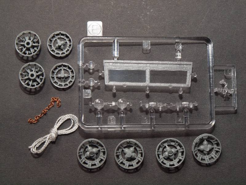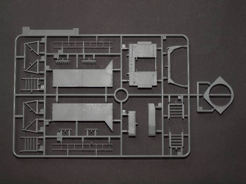 Im Bausatz finden sich 350 Teile aus dem bekannten hellgrauem Plastik. Ein Großteil der zwölf Platinen kam bereits bei den anderen Halbketten zum Einsatz (#6329, #6361, #6381, #6467). Darüber hinaus gibt es noch eine Fahrerfigur, eine PE-Platine, ein Seil, eine Kette, sowie zwei Decalbögen, die sehr schön gemacht sind.