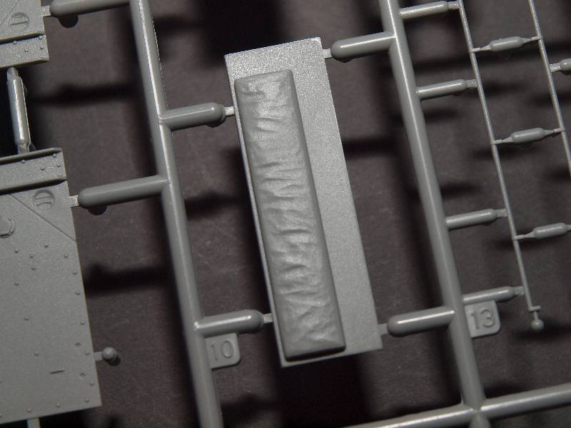 Analog zu den anderen Varianten gibt es auch hier wieder einen rudimentär ausgestateten Motorblock. Leider kann man die überarbeitete Motorhaube nicht geöffnet darstellen. Der Kampfraum ist sehr schön dargestellt. So weisen die Sitzbänke nun auch eine schöne Struktur auf. Ferner liegen die Minen samt seitlichen Halterungen als separate Teile bei, die zusätzlich noch PE-Teilen verfeinert werden können. Auch die beiliegende Fahrerfigur kann sich sehen lassen.