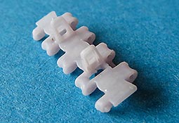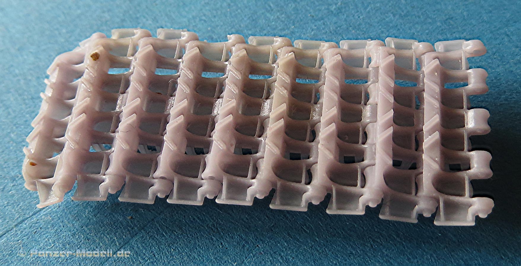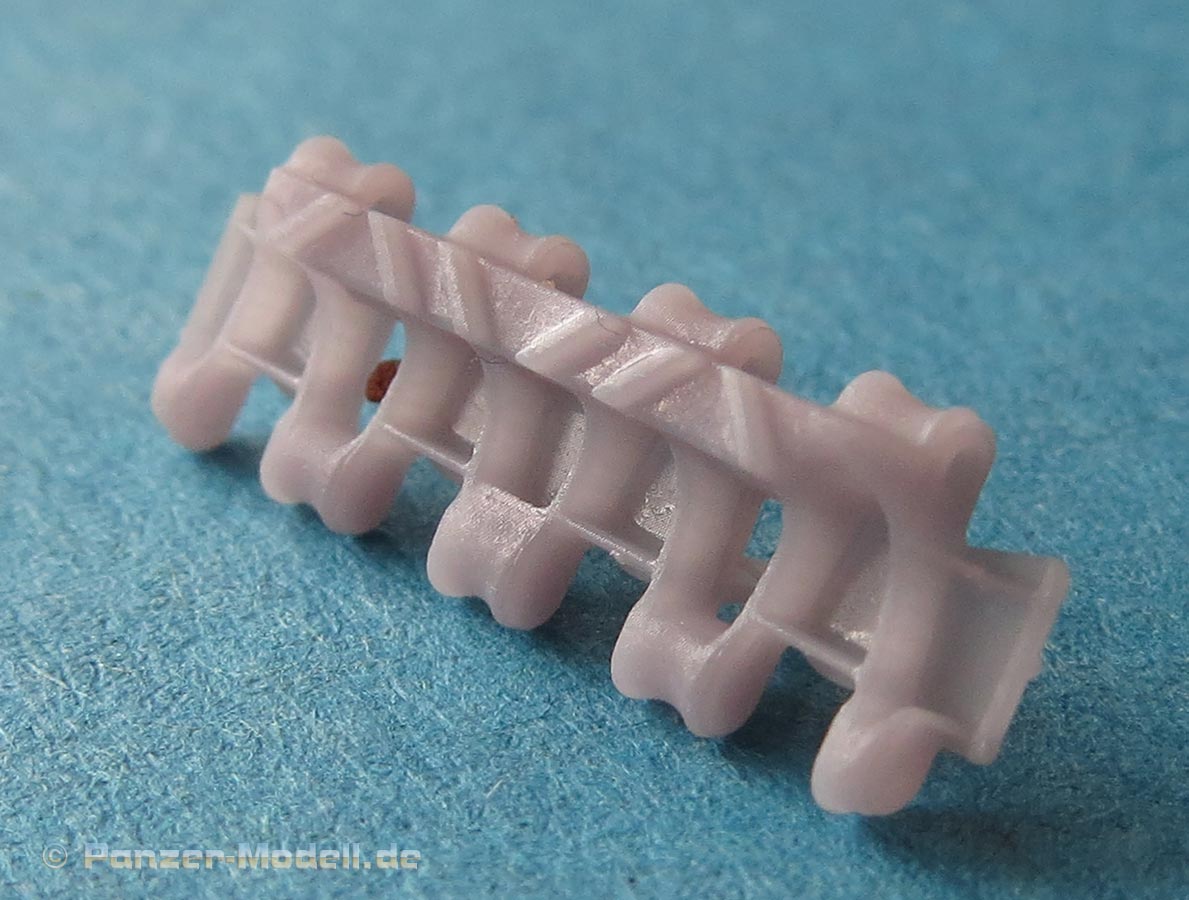 Auf jeden Fall macht jedes Kettenglied so schon eine hrvorragende Figur - und wenn man dabei bedenkt, dass man hier nicht wie in Plastikbausätzen noch bis zu 6 oder 8 Angüsse abtrennen muss plus die Führungszähne einzeln aufkleben, hat man hier schon eine Menge Zeit und Nerven gespart.