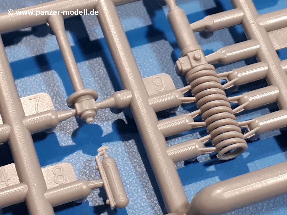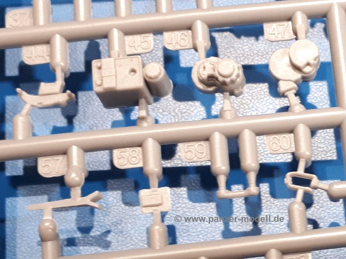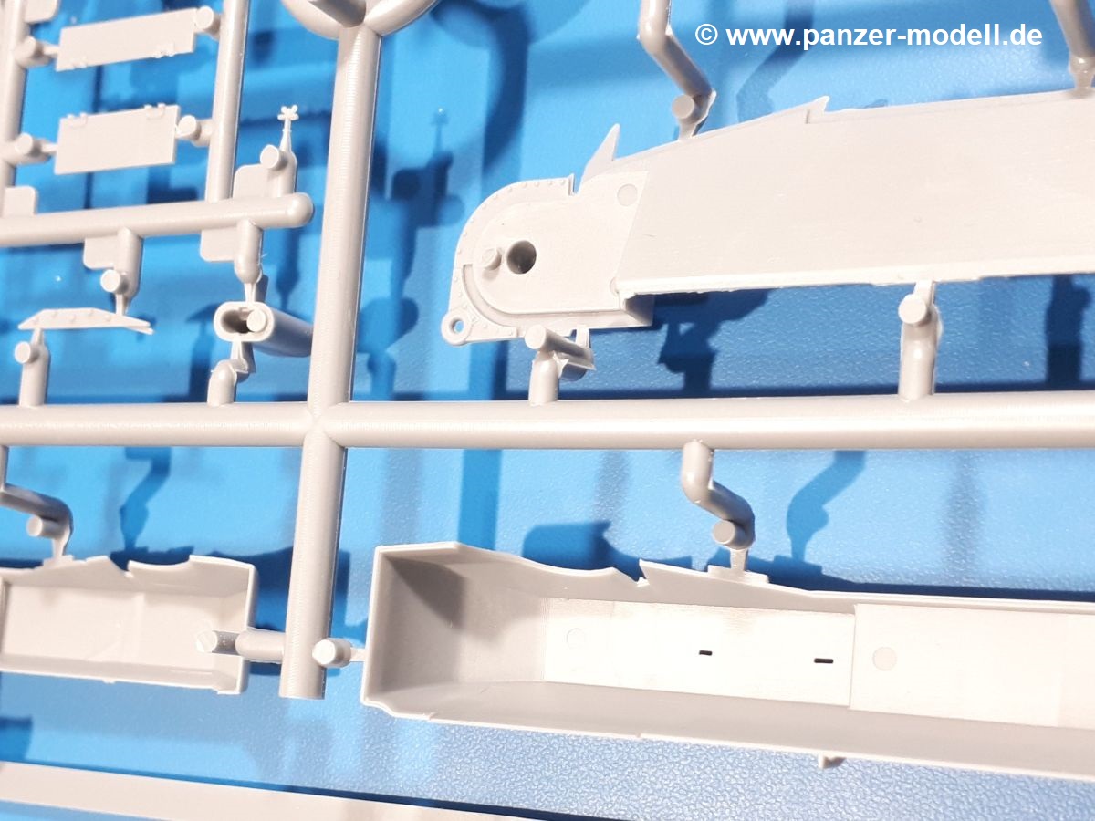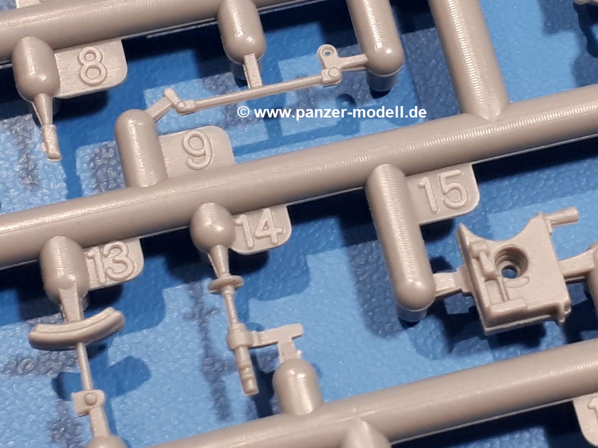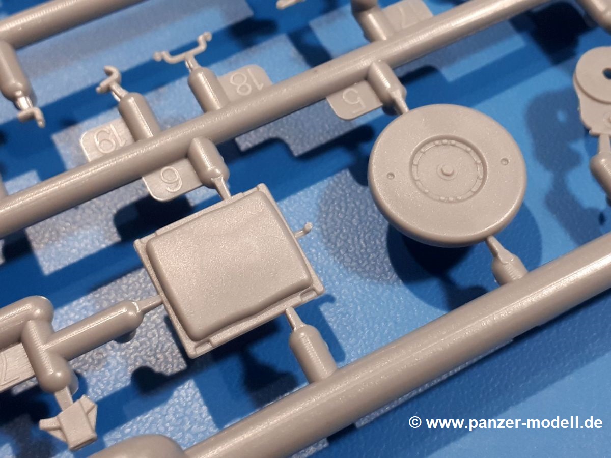 Das Original: In den 1930-er Jahren parallel zum Cruiser Mk. I (A9) entwickelt, war der A10 in der Rolle eines schweren Infanteriepanzers vorgesehen, die er aber nicht erfüllen konnte und deswegen als schwerer Kreuzerpanzer eingesetzt wurde. Es gab ihn in 3 Versionen - Mk. II (40mm 2-Pfünder Kanone, 1 koaxiales Vickers-MG), Mk. IIA (40mm 2-Pfünder Kanone, 1 koaxiales Besa-MG, 1 Besa Bug-MG) und Mk.IIA CS (94mm Howitzer, 1 koaxiales Besa-MG, 1 Besa Bug-MG). Mit seinem 150 PS Motor erreichte er grad mal 26 km/h auf der Strasse, 13 km/h im Gelände. Insgesamt wurden 175 Mk. II produziert. Er wurde Anfang des 2. Weltkrieges in Frankreich, später auch in Nordafrika und Griechenland eingesetzt. Er lieferte aber keine zufriedenstellenden Ergebnisse und wurde später durch den Cruiser Tank Mk. III (A13) ersetzt. Der Bausatz: Schon länger in der Vorankündigung kommen nun endlich die ersten Gecko Model Bausätze auch auf dem deutschen Markt an.Im Karton finden wir einen Klarsicht- und 35 hellgraue Spritzlinge. Dazu kommen Draht, Schnur, 1 Ätzteilplatine, ein Decalbogen und eine 28-seitige Bauanleitung.Die Verarbeitungsqualität ist hervorragend. Details wie z.B. Schrauben, Nieten, Schweißnähte und Bedienhebel fallen einem ebenso ins Auge wie die Schlieren freien, kristallklaren Scheinwerfergläser. Die Angüsse sind klein und gut zugänglich. Auswerferspuren sind, wo es geht auf den Gießästen zu finden, und sonst nur in geringer Anzahl auf den Teilen und an Stellen, die nach dem Zusammenbau nicht mehr ins Auge fallen. Zudem sind sie recht flach und gut zu entfernen, wenn man dies für nötig hält.Gleich vorweg - Gecko Models spendiert seinem A10 eine Inneneinrichtung für Fahrer-, Kampfraum und Turm. So besteht die Unterwanne aus Bodenplatte, Seitenteilen und Frontplatte, ausgestattet mit Details wie Wartungsdeckeln, Nieten und Lagerverschraubungen. Der Fahrerraum ist mit Fahrer-, Bug-MG Schützensitz und Bedienelementen wie Lenkhebel, Schaltung, Pedalen und Armaturentafel versehen. Das aus mehreren Teilen bestehende Bug-Mg samt Halterung kann beweglich in die Frontplatte eingebaut werden. Die Fahrersichtluke bietet die Option des offenen oder geschlossenen Anbaus. Die Trennwand im Rücken des Fahrers hat einen Durchlass zum Kampfraum. Im Kampfraum finden sich Halterungen mit insgesamt 10 Schuss 3,7 Zoll Haubitzen-Munition. Eine schön detaillierte Wand trennt Kampf- und Motorraum.Das Fahrgestell entspricht dem des Valentine - je Seite 2 große Lagerböcke, die die Rollenwagen mit je einem großen und 2 kleinen Laufrollen und ein Stützrad aufnehmen. Mittig zwischen den Lagerböcken findet man das 3. Stützrad. Lauf- und Stützrollen sind fein detailliert. Die Federbeine bestehen aus funktionsfähigen Plastikfedern. Das gesamte Fahrwerk ist beweglich ausgelegt, so dass man es z.B. an Bodenunebenheiten in einem Diorama anpassen kann. Dies wird durch die vollbewegliche Kette unterstützt, die sich aus Obergliedern mit Führungszähnen, Untergliedern und Endverbindern mit Kettenbolzen zusammensetzt. Es gibt eine Montagehilfe für den Bau der Kette. Der Getriebekasten am Heck hat eine separat anzubauende Wartungsklappe. Die Leitradlager mit der Kettenspannvorrichtung bestehen zwecks besserer Detaillierung aus mehreren Einzelteilen. Dies gilt auch für die Antriebszahnräder.Das große Oberteil muss im Fahrerbereich noch mit der Bugplatte und Seitenteilen ergänzt werden. Fahrer- und Bug-MG-Schützenluken können offen oder geschlossen, der Fahrerwinkelspiegel aus Klarsichtmaterial drehbar gebaut werden. Die Turmdrehringpanzerung besteht aus einem runden Teil mit vielen Nieten. Die großen Lufteinlässe links und rechts vom Motorraum werden zwecks besserer Detaillierung aus einzelnen Blechen zusammengesetzt. Die Motorraumklappen sind separat anzubringen. Ein schönes Teil ist der Auspuff. Dieser wird mit dem großen PE Gitter ummantelt und mit Zulauf- und Endrohr versehen. Er ruht in Halterungerungen aus PE-Teilen. Die Fahrscheinwerfer auf der Bugplatte können wahlweise mit Glaseinsatz oder Tarnscheibe gebaut werden. Die Zuleitungen der Scheinwerfer sind als Einzelteile dabei. Hier kommt auch der beiliegende Draht zum Einsatz.Die Kettenabdeckungen bestehen aus einem Guss. Auch wenn 4 Stück im Bausatz sind, benötigt man nur die zwei für die Griechenland, bzw. Nordafrika-Version. Große Staukästen müssen noch angebracht werden. Interessant ist, dass nur die linke Seite eine Kettenschürze besitzt. Ich konnte leider noch nicht herausfinden, warum dies so ist. Vorn auf der linken Kettenabdeckung wird der Außentank, wie wir ihn z.B. beim Matilda II oder auch beim Valentine wiederfinden. Er ruht auf mehrfach gewinkelten Halterungen, die mit PE-Teilen ergänzt werden. Das Außenbordwerkzeug beschränkt sich auf Schaufel, Spitzhacke und Stiel, einen Ratschenschlüssel (?) und eine Brechstange. Dazu gibt es noch kleine Feuerlöscher. Die Hupe wurde ebenso wenig vergessen wie der Fahrerspiegel. Auf der rechten, hinteren Kettenabdeckung gibt es eine Holzkiste mit einer schönen Maserung. Am Heck wird eine große Kanisterhalterung mit 6 Wasserkanistern angebracht. Die Ausgussstopfen sind winzig, aber separat anzubringen. Die Kanistergriffe bestehen aus PE.Der Bau des Turmes beginnt mit den Einzelteilen des Turmkorbes wie Bodenplatte, Stellmotor, Sitz und Behältern. Sämtliche Innenteile der 3,7 Zoll Haubitze wie Verschlussblock, Verschluss und Stelleinrichtung sind vorhanden. Ebenso findet man die Richtoptik und das koaxiale MG. Im Turmheck kommt ein schönes, mehrteiliges Funkgerät mit Schutzbügeln aus PE-Teilen zum Einsatz. Die Turmpanzerung besteht aus mehreren Teilen. Die Turmluken mit schönen Innendetails können offen oder geschlossen gebaut werden. Auch hier gibt einen Klarsicht-Winkelspiegel für den Kommandanten. Auch der Suchscheinwerfer wird mit einer Glasscheibe versehen. Lukenanschlag und Hilfsvisier des Kommandanten sind aus feinen Plastikteilen. Der Antennenfuß samt Antenne a