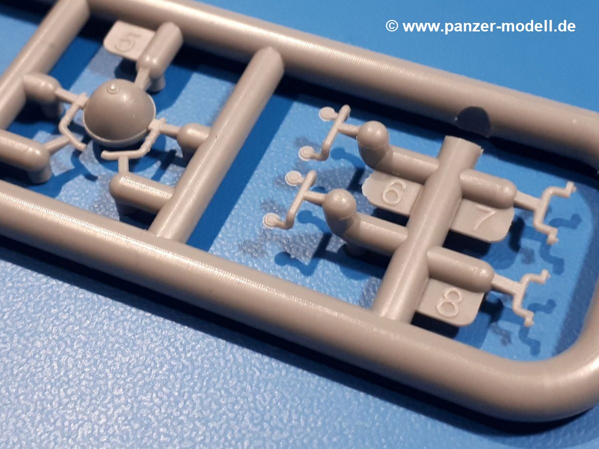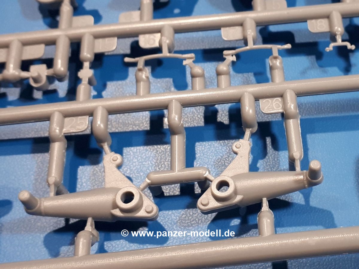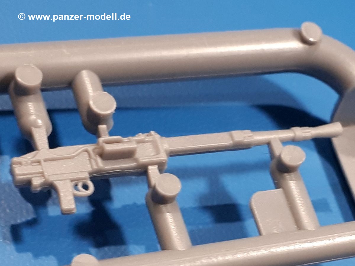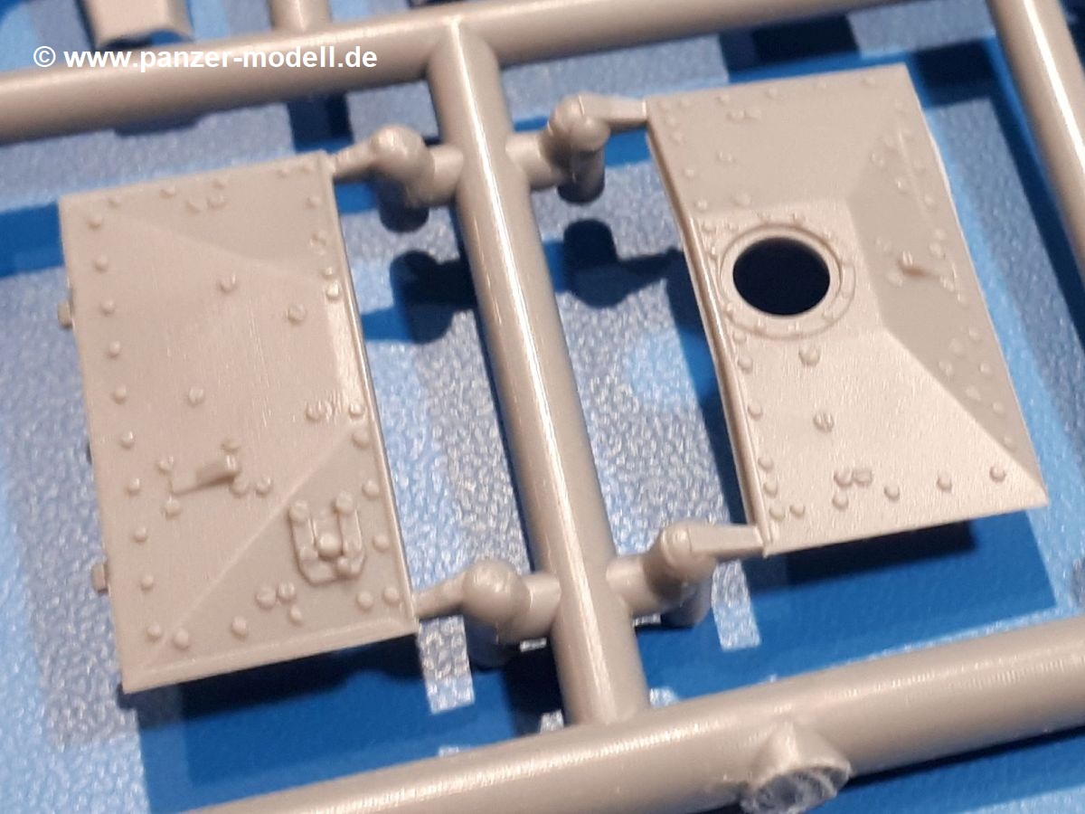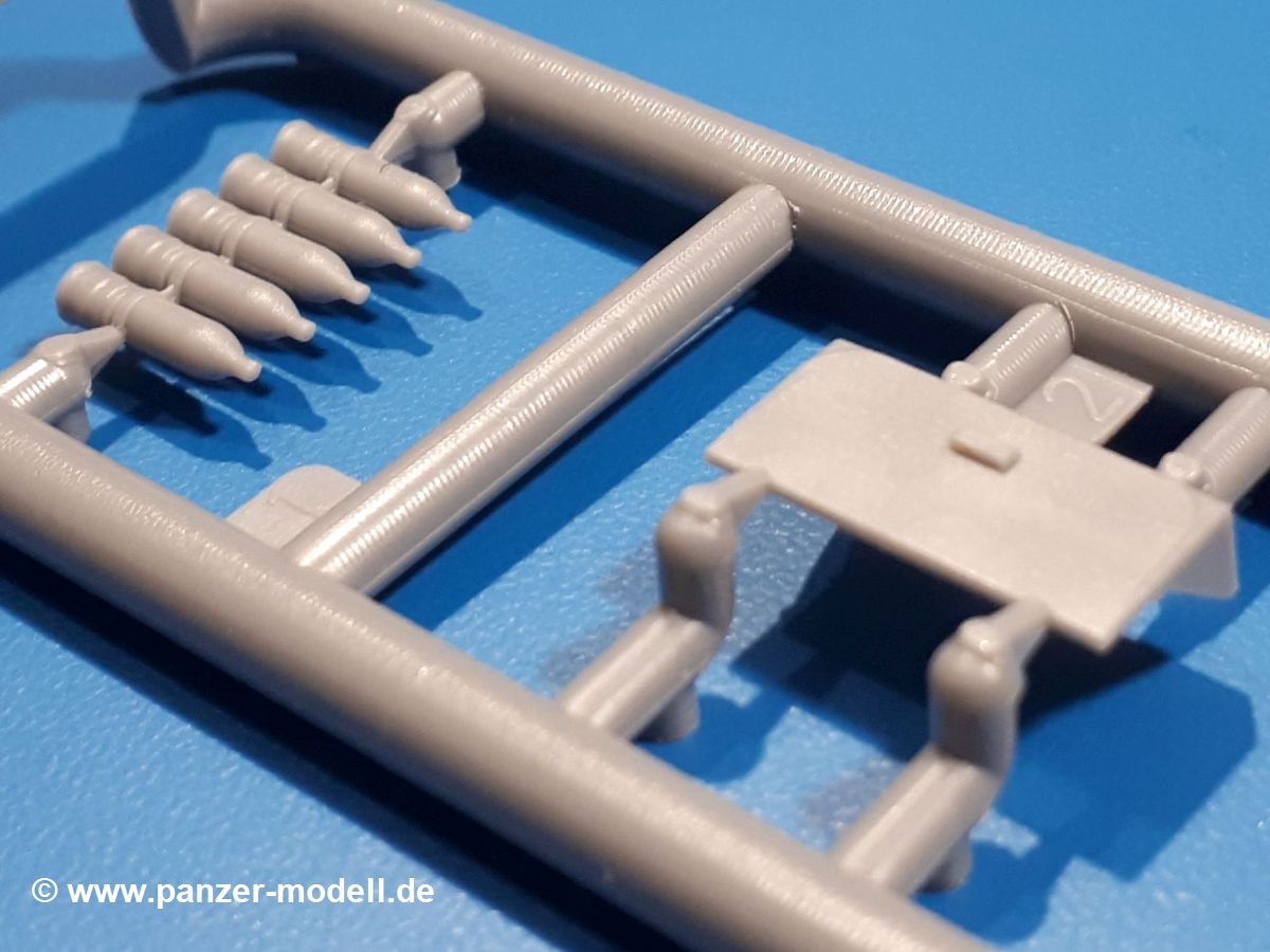 Das Original: In den 1930-er Jahren parallel zum Cruiser Mk. I (A9) entwickelt, war der A10 in der Rolle eines schweren Infanteriepanzers vorgesehen, die er aber nicht erfüllen konnte und deswegen als schwerer Kreuzerpanzer eingesetzt wurde. Es gab ihn in 3 Versionen - Mk. II (40mm 2-Pfünder Kanone, 1 koaxiales Vickers-MG), Mk. IIA (40mm 2-Pfünder Kanone, 1 koaxiales Besa-MG, 1 Besa Bug-MG) und Mk.IIA CS (94mm Howitzer, 1 koaxiales Besa-MG, 1 Besa Bug-MG). Mit seinem 150 PS Motor erreichte er grad mal 26 km/h auf der Strasse, 13 km/h im Gelände. Insgesamt wurden 175 Mk. II produziert. Er wurde Anfang des 2. Weltkrieges in Frankreich, später auch in Nordafrika und Griechenland eingesetzt. Er lieferte aber keine zufriedenstellenden Ergebnisse und wurde später durch den Cruiser Tank Mk. III (A13) ersetzt. Der Bausatz: Schon länger in der Vorankündigung kommen nun endlich die ersten Gecko Model Bausätze auch auf dem deutschen Markt an.Im Karton finden wir einen Klarsicht- und 35 hellgraue Spritzlinge. Dazu kommen Draht, Schnur, 1 Ätzteilplatine, ein Decalbogen und eine 28-seitige Bauanleitung.Die Verarbeitungsqualität ist hervorragend. Details wie z.B. Schrauben, Nieten, Schweißnähte und Bedienhebel fallen einem ebenso ins Auge wie die Schlieren freien, kristallklaren Scheinwerfergläser. Die Angüsse sind klein und gut zugänglich. Auswerferspuren sind, wo es geht auf den Gießästen zu finden, und sonst nur in geringer Anzahl auf den Teilen und an Stellen, die nach dem Zusammenbau nicht mehr ins Auge fallen. Zudem sind sie recht flach und gut zu entfernen, wenn man dies für nötig hält.Gleich vorweg - Gecko Models spendiert seinem A10 eine Inneneinrichtung für Fahrer-, Kampfraum und Turm. So besteht die Unterwanne aus Bodenplatte, Seitenteilen und Frontplatte, ausgestattet mit Details wie Wartungsdeckeln, Nieten und Lagerverschraubungen. Der Fahrerraum ist mit Fahrer-, Bug-MG Schützensitz und Bedienelementen wie Lenkhebel, Schaltung, Pedalen und Armaturentafel versehen. Das aus mehreren Teilen bestehende Bug-Mg samt Halterung kann beweglich in die Frontplatte eingebaut werden. Die Fahrersichtluke bietet die Option des offenen oder geschlossenen Anbaus. Die Trennwand im Rücken des Fahrers hat einen Durchlass zum Kampfraum. Im Kampfraum finden sich Halterungen mit insgesamt 10 Schuss 3,7 Zoll Haubitzen-Munition. Eine schön detaillierte Wand trennt Kampf- und Motorraum.Das Fahrgestell entspricht dem des Valentine - je Seite 2 große Lagerböcke, die die Rollenwagen mit je einem großen und 2 kleinen Laufrollen und ein Stützrad aufnehmen. Mittig zwischen den Lagerböcken findet man das 3. Stützrad. Lauf- und Stützrollen sind fein detailliert. Die Federbeine bestehen aus funktionsfähigen Plastikfedern. Das gesamte Fahrwerk ist beweglich ausgelegt, so dass man es z.B. an Bodenunebenheiten in einem Diorama anpassen kann. Dies wird durch die vollbewegliche Kette unterstützt, die sich aus Obergliedern mit Führungszähnen, Untergliedern und Endverbindern mit Kettenbolzen zusammensetzt. Es gibt eine Montagehilfe für den Bau der Kette. Der Getriebekasten am Heck hat eine separat anzubauende Wartungsklappe. Die Leitradlager mit der Kettenspannvorrichtung bestehen zwecks besserer Detaillierung aus mehreren Einzelteilen. Dies gilt auch für die Antriebszahnräder.Das große Oberteil muss im Fahrerbereich noch mit der Bugplatte und Seitenteilen ergänzt werden. Fahrer- und Bug-MG-Schützenluken können offen oder geschlossen, der Fahrerwinkelspiegel aus Klarsichtmaterial drehbar gebaut werden. Die Turmdrehringpanzerung besteht aus einem runden Teil mit vielen Nieten. Die großen Lufteinlässe links und rechts vom Motorraum werden zwecks besserer Detaillierung aus einzelnen Blechen zusammengesetzt. Die Motorraumklappen sind separat anzubringen. Ein schönes Teil ist der Auspuff. Dieser wird mit dem großen PE Gitter ummantelt und mit Zulauf- und Endrohr versehen. Er ruht in Halterungerungen aus PE-Teilen. Die Fahrscheinwerfer auf der Bugplatte können wahlweise mit Glaseinsatz oder Tarnscheibe gebaut werden. Die Zuleitungen der Scheinwerfer sind als Einzelteile dabei. Hier kommt auch der beiliegende Draht zum Einsatz.Die Kettenabdeckungen bestehen aus einem Guss. Auch wenn 4 Stück im Bausatz sind, benötigt man nur die zwei für die Griechenland, bzw. Nordafrika-Version. Große Staukästen müssen noch angebracht werden. Interessant ist, dass nur die linke Seite eine Kettenschürze besitzt. Ich konnte leider noch nicht herausfinden, warum dies so ist. Vorn auf der linken Kettenabdeckung wird der Außentank, wie wir ihn z.B. beim Matilda II oder auch beim Valentine wiederfinden. Er ruht auf mehrfach gewinkelten Halterungen, die mit PE-Teilen ergänzt werden. Das Außenbordwerkzeug beschränkt sich auf Schaufel, Spitzhacke und Stiel, einen Ratschenschlüssel (?) und eine Brechstange. Dazu gibt es noch kleine Feuerlöscher. Die Hupe wurde ebenso wenig vergessen wie der Fahrerspiegel. Auf der rechten, hinteren Kettenabdeckung gibt es eine Holzkiste mit einer schönen Maserung. Am Heck wird eine große Kanisterhalterung mit 6 Wasserkanistern angebracht. Die Ausgussstopfen sind winzig, aber separat anzubringen. Die Kanistergriffe bestehen aus PE.Der Bau des Turmes beginnt mit den Einzelteilen des Turmkorbes wie Bodenplatte, Stellmotor, Sitz und Behältern. Sämtliche Innenteile der 3,7 Zoll Haubitze wie Verschlussblock, Verschluss und Stelleinrichtung sind vorhanden. Ebenso findet man die Richtoptik und das koaxiale MG. Im Turmheck kommt ein schönes, mehrteiliges Funkgerät mit Schutzbügeln aus PE-Teilen zum Einsatz. Die Turmpanzerung besteht aus mehreren Teilen. Die Turmluken mit schönen Innendetails können offen oder geschlossen gebaut werden. Auch hier gibt einen Klarsicht-Winkelspiegel für den Kommandanten. Auch der Suchscheinwerfer wird mit einer Glasscheibe versehen. Lukenanschlag und Hilfsvisier des Kommandanten sind aus feinen Plastikteilen. Der Antennenfuß samt Antenne a