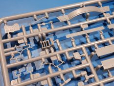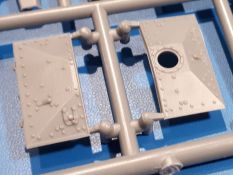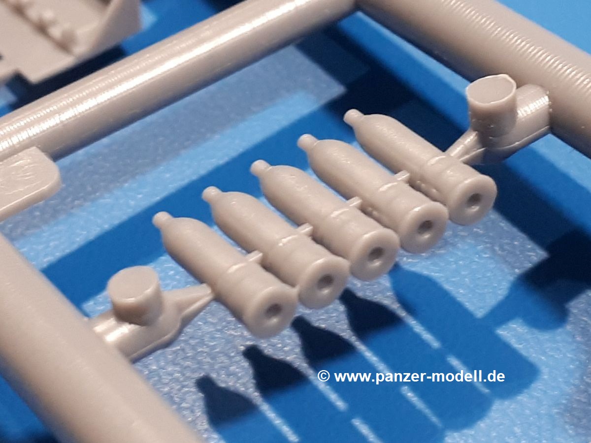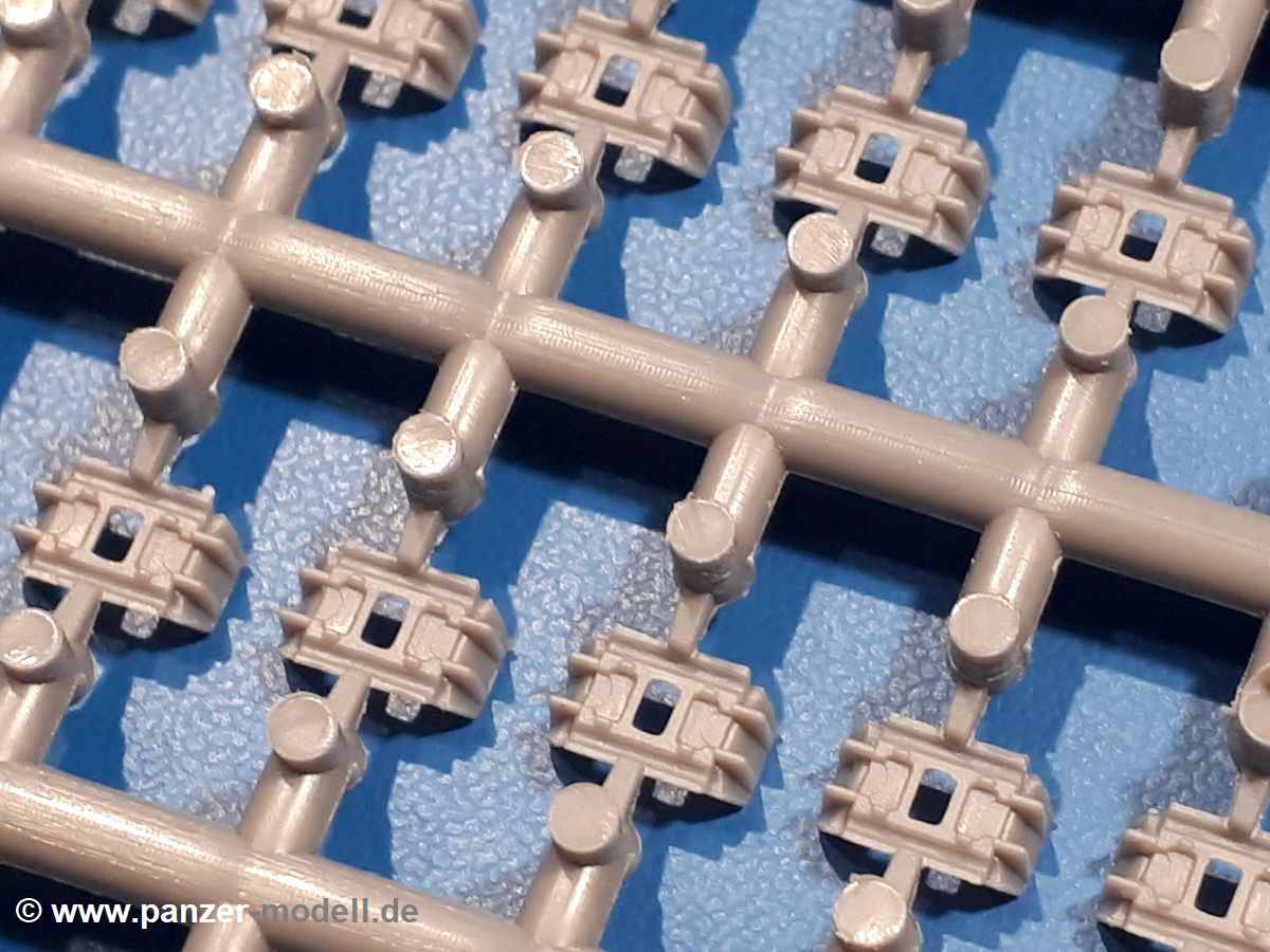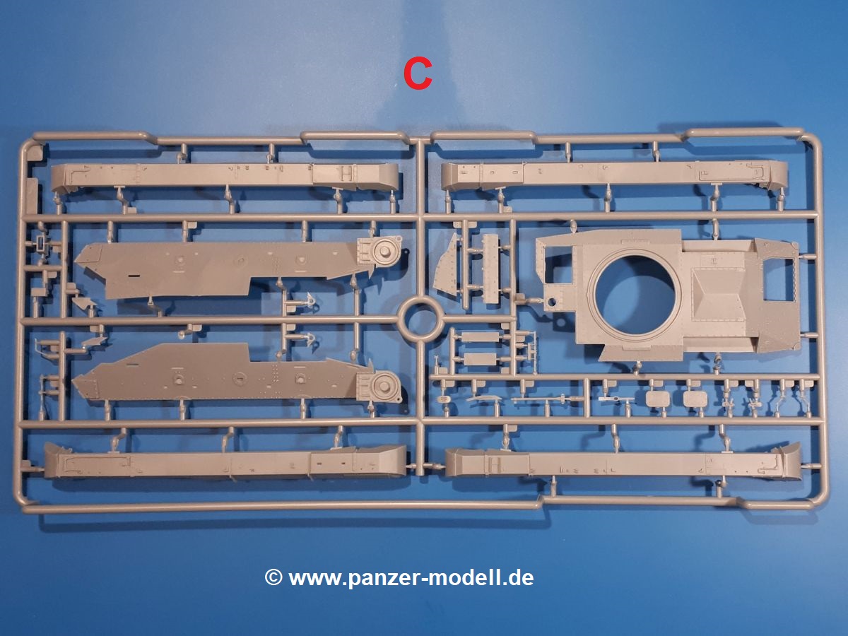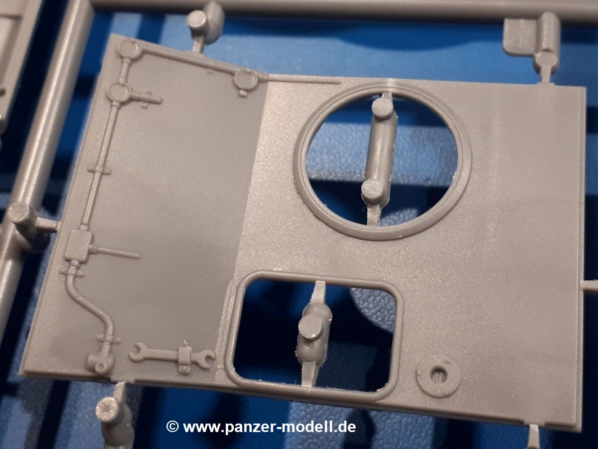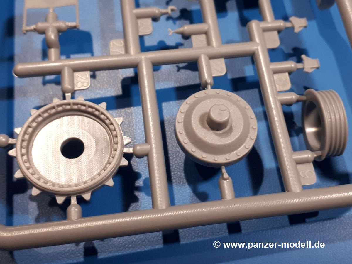 Das Original: In den 1930-er Jahren parallel zum Cruiser Mk. I (A9) entwickelt, war der A10 in der Rolle eines schweren Infanteriepanzers vorgesehen, die er aber nicht erfüllen konnte und deswegen als schwerer Kreuzerpanzer eingesetzt wurde. Es gab ihn in 3 Versionen - Mk. II (40mm 2-Pfünder Kanone, 1 koaxiales Vickers-MG), Mk. IIA (40mm 2-Pfünder Kanone, 1 koaxiales Besa-MG, 1 Besa Bug-MG) und Mk.IIA CS (94mm Howitzer, 1 koaxiales Besa-MG, 1 Besa Bug-MG). Mit seinem 150 PS Motor erreichte er grad mal 26 km/h auf der Strasse, 13 km/h im Gelände. Insgesamt wurden 175 Mk. II produziert. Er wurde Anfang des 2. Weltkrieges in Frankreich, später auch in Nordafrika und Griechenland eingesetzt. Er lieferte aber keine zufriedenstellenden Ergebnisse und wurde später durch den Cruiser Tank Mk. III (A13) ersetzt. Der Bausatz: Schon länger in der Vorankündigung kommen nun endlich die ersten Gecko Model Bausätze auch auf dem deutschen Markt an.Im Karton finden wir einen Klarsicht- und 35 hellgraue Spritzlinge. Dazu kommen Draht, Schnur, 1 Ätzteilplatine, ein Decalbogen und eine 28-seitige Bauanleitung.Die Verarbeitungsqualität ist hervorragend. Details wie z.B. Schrauben, Nieten, Schweißnähte und Bedienhebel fallen einem ebenso ins Auge wie die Schlieren freien, kristallklaren Scheinwerfergläser. Die Angüsse sind klein und gut zugänglich. Auswerferspuren sind, wo es geht auf den Gießästen zu finden, und sonst nur in geringer Anzahl auf den Teilen und an Stellen, die nach dem Zusammenbau nicht mehr ins Auge fallen. Zudem sind sie recht flach und gut zu entfernen, wenn man dies für nötig hält.Gleich vorweg - Gecko Models spendiert seinem A10 eine Inneneinrichtung für Fahrer-, Kampfraum und Turm. So besteht die Unterwanne aus Bodenplatte, Seitenteilen und Frontplatte, ausgestattet mit Details wie Wartungsdeckeln, Nieten und Lagerverschraubungen. Der Fahrerraum ist mit Fahrer-, Bug-MG Schützensitz und Bedienelementen wie Lenkhebel, Schaltung, Pedalen und Armaturentafel versehen. Das aus mehreren Teilen bestehende Bug-Mg samt Halterung kann beweglich in die Frontplatte eingebaut werden. Die Fahrersichtluke bietet die Option des offenen oder geschlossenen Anbaus. Die Trennwand im Rücken des Fahrers hat einen Durchlass zum Kampfraum. Im Kampfraum finden sich Halterungen mit insgesamt 10 Schuss 3,7 Zoll Haubitzen-Munition. Eine schön detaillierte Wand trennt Kampf- und Motorraum.Das Fahrgestell entspricht dem des Valentine - je Seite 2 große Lagerböcke, die die Rollenwagen mit je einem großen und 2 kleinen Laufrollen und ein Stützrad aufnehmen. Mittig zwischen den Lagerböcken findet man das 3. Stützrad. Lauf- und Stützrollen sind fein detailliert. Die Federbeine bestehen aus funktionsfähigen Plastikfedern. Das gesamte Fahrwerk ist beweglich ausgelegt, so dass man es z.B. an Bodenunebenheiten in einem Diorama anpassen kann. Dies wird durch die vollbewegliche Kette unterstützt, die sich aus Obergliedern mit Führungszähnen, Untergliedern und Endverbindern mit Kettenbolzen zusammensetzt. Es gibt eine Montagehilfe für den Bau der Kette. Der Getriebekasten am Heck hat eine separat anzubauende Wartungsklappe. Die Leitradlager mit der Kettenspannvorrichtung bestehen zwecks besserer Detaillierung aus mehreren Einzelteilen. Dies gilt auch für die Antriebszahnräder.Das große Oberteil muss im Fahrerbereich noch mit der Bugplatte und Seitenteilen ergänzt werden. Fahrer- und Bug-MG-Schützenluken können offen oder geschlossen, der Fahrerwinkelspiegel aus Klarsichtmaterial drehbar gebaut werden. Die Turmdrehringpanzerung besteht aus einem runden Teil mit vielen Nieten. Die großen Lufteinlässe links und rechts vom Motorraum werden zwecks besserer Detaillierung aus einzelnen Blechen zusammengesetzt. Die Motorraumklappen sind separat anzubringen. Ein schönes Teil ist der Auspuff. Dieser wird mit dem großen PE Gitter ummantelt und mit Zulauf- und Endrohr versehen. Er ruht in Halterungerungen aus PE-Teilen. Die Fahrscheinwerfer auf der Bugplatte können wahlweise mit Glaseinsatz oder Tarnscheibe gebaut werden. Die Zuleitungen der Scheinwerfer sind als Einzelteile dabei. Hier kommt auch der beiliegende Draht zum Einsatz.Die Kettenabdeckungen bestehen aus einem Guss. Auch wenn 4 Stück im Bausatz sind, benötigt man nur die zwei für die Griechenland, bzw. Nordafrika-Version. Große Staukästen müssen noch angebracht werden. Interessant ist, dass nur die linke Seite eine Kettenschürze besitzt. Ich konnte leider noch nicht herausfinden, warum dies so ist. Vorn auf der linken Kettenabdeckung wird der Außentank, wie wir ihn z.B. beim Matilda II oder auch beim Valentine wiederfinden. Er ruht auf mehrfach gewinkelten Halterungen, die mit PE-Teilen ergänzt werden. Das Außenbordwerkzeug beschränkt sich auf Schaufel, Spitzhacke und Stiel, einen Ratschenschlüssel (?) und eine Brechstange. Dazu gibt es noch kleine Feuerlöscher. Die Hupe wurde ebenso wenig vergessen wie der Fahrerspiegel. Auf der rechten, hinteren Kettenabdeckung gibt es eine Holzkiste mit einer schönen Maserung. Am Heck wird eine große Kanisterhalterung mit 6 Wasserkanistern angebracht. Die Ausgussstopfen sind winzig, aber separat anzubringen. Die Kanistergriffe bestehen aus PE.Der Bau des Turmes beginnt mit den Einzelteilen des Turmkorbes wie Bodenplatte, Stellmotor, Sitz und Behältern. Sämtliche Innenteile der 3,7 Zoll Haubitze wie Verschlussblock, Verschluss und Stelleinrichtung sind vorhanden. Ebenso findet man die Richtoptik und das koaxiale MG. Im Turmheck kommt ein schönes, mehrteiliges Funkgerät mit Schutzbügeln aus PE-Teilen zum Einsatz. Die Turmpanzerung besteht aus mehreren Teilen. Die Turmluken mit schönen Innendetails können offen oder geschlossen gebaut werden. Auch hier gibt einen Klarsicht-Winkelspiegel für den Kommandanten. Auch der Suchscheinwerfer wird mit einer Glasscheibe versehen. Lukenanschlag und Hilfsvisier des Kommandanten sind aus feinen Plastikteilen. Der Antennenfuß samt Antenne a