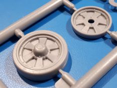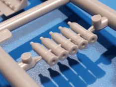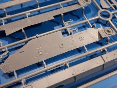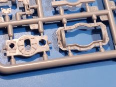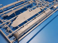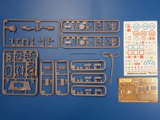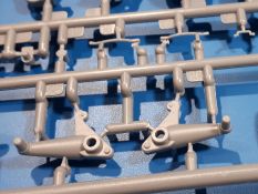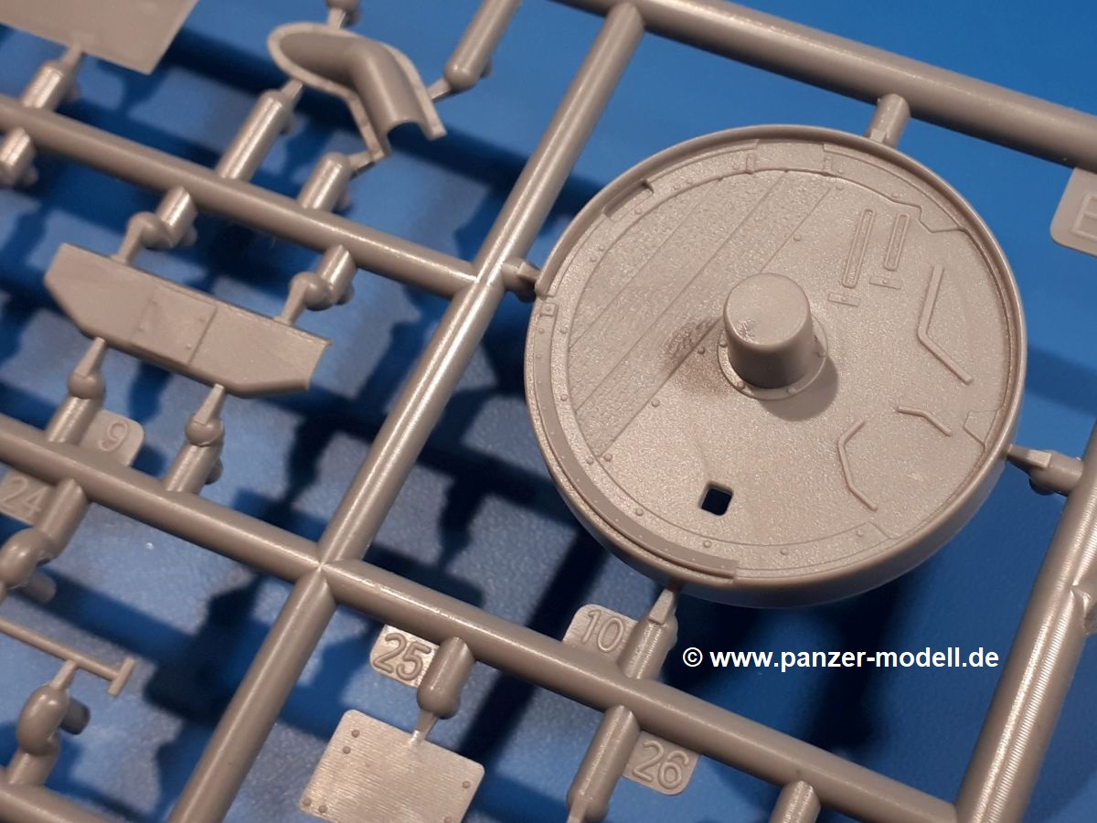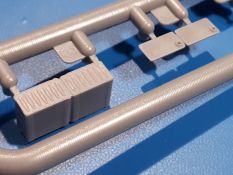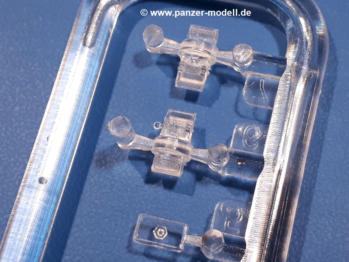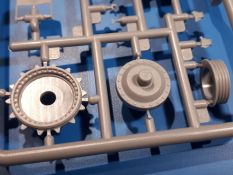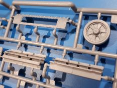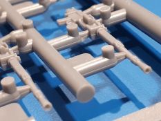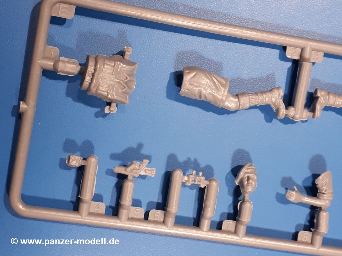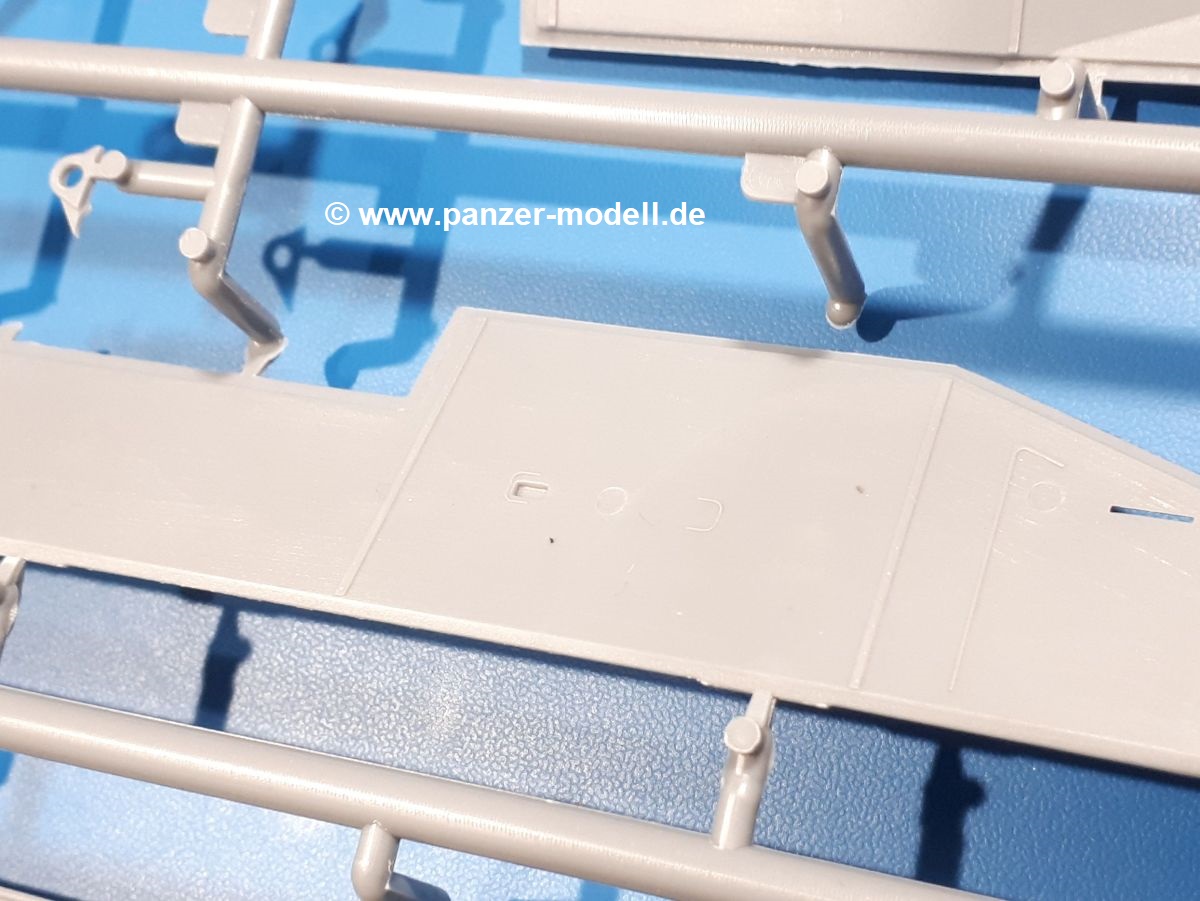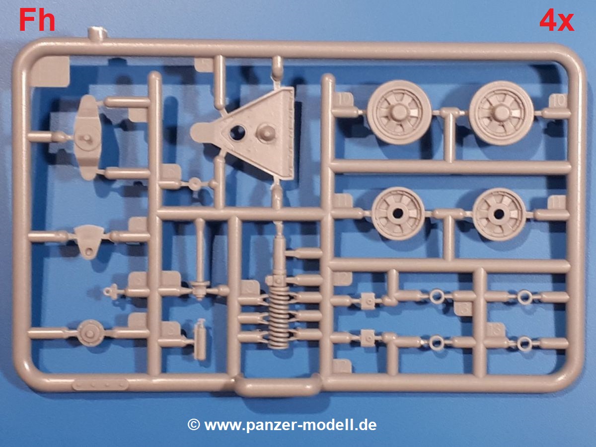 Das Original: In den 1930-er Jahren parallel zum Cruiser Mk. I (A9) entwickelt, war der A10 in der Rolle eines schweren Infanteriepanzers vorgesehen, die er aber nicht erfüllen konnte und deswegen als schwerer Kreuzerpanzer eingesetzt wurde. Es gab ihn in 3 Versionen - Mk. II (40mm 2-Pfünder Kanone, 1 koaxiales Vickers-MG), Mk. IIA (40mm 2-Pfünder Kanone, 1 koaxiales Besa-MG, 1 Besa Bug-MG) und Mk.IIA CS (94mm Howitzer, 1 koaxiales Besa-MG, 1 Besa Bug-MG). Mit seinem 150 PS Motor erreichte er grad mal 26 km/h auf der Strasse, 13 km/h im Gelände. Insgesamt wurden 175 Mk. II produziert. Er wurde Anfang des 2. Weltkrieges in Frankreich, später auch in Nordafrika und Griechenland eingesetzt. Er lieferte aber keine zufriedenstellenden Ergebnisse und wurde später durch den Cruiser Tank Mk. III (A13) ersetzt. Der Bausatz: Schon länger in der Vorankündigung kommen nun endlich die ersten Gecko Model Bausätze auch auf dem deutschen Markt an.Im Karton finden wir einen Klarsicht- und 35 hellgraue Spritzlinge. Dazu kommen Draht, Schnur, 1 Ätzteilplatine, ein Decalbogen und eine 28-seitige Bauanleitung.Die Verarbeitungsqualität ist hervorragend. Details wie z.B. Schrauben, Nieten, Schweißnähte und Bedienhebel fallen einem ebenso ins Auge wie die Schlieren freien, kristallklaren Scheinwerfergläser. Die Angüsse sind klein und gut zugänglich. Auswerferspuren sind, wo es geht auf den Gießästen zu finden, und sonst nur in geringer Anzahl auf den Teilen und an Stellen, die nach dem Zusammenbau nicht mehr ins Auge fallen. Zudem sind sie recht flach und gut zu entfernen, wenn man dies für nötig hält.Gleich vorweg - Gecko Models spendiert seinem A10 eine Inneneinrichtung für Fahrer-, Kampfraum und Turm. So besteht die Unterwanne aus Bodenplatte, Seitenteilen und Frontplatte, ausgestattet mit Details wie Wartungsdeckeln, Nieten und Lagerverschraubungen. Der Fahrerraum ist mit Fahrer-, Bug-MG Schützensitz und Bedienelementen wie Lenkhebel, Schaltung, Pedalen und Armaturentafel versehen. Das aus mehreren Teilen bestehende Bug-Mg samt Halterung kann beweglich in die Frontplatte eingebaut werden. Die Fahrersichtluke bietet die Option des offenen oder geschlossenen Anbaus. Die Trennwand im Rücken des Fahrers hat einen Durchlass zum Kampfraum. Im Kampfraum finden sich Halterungen mit insgesamt 10 Schuss 3,7 Zoll Haubitzen-Munition. Eine schön detaillierte Wand trennt Kampf- und Motorraum.Das Fahrgestell entspricht dem des Valentine - je Seite 2 große Lagerböcke, die die Rollenwagen mit je einem großen und 2 kleinen Laufrollen und ein Stützrad aufnehmen. Mittig zwischen den Lagerböcken findet man das 3. Stützrad. Lauf- und Stützrollen sind fein detailliert. Die Federbeine bestehen aus funktionsfähigen Plastikfedern. Das gesamte Fahrwerk ist beweglich ausgelegt, so dass man es z.B. an Bodenunebenheiten in einem Diorama anpassen kann. Dies wird durch die vollbewegliche Kette unterstützt, die sich aus Obergliedern mit Führungszähnen, Untergliedern und Endverbindern mit Kettenbolzen zusammensetzt. Es gibt eine Montagehilfe für den Bau der Kette. Der Getriebekasten am Heck hat eine separat anzubauende Wartungsklappe. Die Leitradlager mit der Kettenspannvorrichtung bestehen zwecks besserer Detaillierung aus mehreren Einzelteilen. Dies gilt auch für die Antriebszahnräder.Das große Oberteil muss im Fahrerbereich noch mit der Bugplatte und Seitenteilen ergänzt werden. Fahrer- und Bug-MG-Schützenluken können offen oder geschlossen, der Fahrerwinkelspiegel aus Klarsichtmaterial drehbar gebaut werden. Die Turmdrehringpanzerung besteht aus einem runden Teil mit vielen Nieten. Die großen Lufteinlässe links und rechts vom Motorraum werden zwecks besserer Detaillierung aus einzelnen Blechen zusammengesetzt. Die Motorraumklappen sind separat anzubringen. Ein schönes Teil ist der Auspuff. Dieser wird mit dem großen PE Gitter ummantelt und mit Zulauf- und Endrohr versehen. Er ruht in Halterungerungen aus PE-Teilen. Die Fahrscheinwerfer auf der Bugplatte können wahlweise mit Glaseinsatz oder Tarnscheibe gebaut werden. Die Zuleitungen der Scheinwerfer sind als Einzelteile dabei. Hier kommt auch der beiliegende Draht zum Einsatz.Die Kettenabdeckungen bestehen aus einem Guss. Auch wenn 4 Stück im Bausatz sind, benötigt man nur die zwei für die Griechenland, bzw. Nordafrika-Version. Große Staukästen müssen noch angebracht werden. Interessant ist, dass nur die linke Seite eine Kettenschürze besitzt. Ich konnte leider noch nicht herausfinden, warum dies so ist. Vorn auf der linken Kettenabdeckung wird der Außentank, wie wir ihn z.B. beim Matilda II oder auch beim Valentine wiederfinden. Er ruht auf mehrfach gewinkelten Halterungen, die mit PE-Teilen ergänzt werden. Das Außenbordwerkzeug beschränkt sich auf Schaufel, Spitzhacke und Stiel, einen Ratschenschlüssel (?) und eine Brechstange. Dazu gibt es noch kleine Feuerlöscher. Die Hupe wurde ebenso wenig vergessen wie der Fahrerspiegel. Auf der rechten, hinteren Kettenabdeckung gibt es eine Holzkiste mit einer schönen Maserung. Am Heck wird eine große Kanisterhalterung mit 6 Wasserkanistern angebracht. Die Ausgussstopfen sind winzig, aber separat anzubringen. Die Kanistergriffe bestehen aus PE.Der Bau des Turmes beginnt mit den Einzelteilen des Turmkorbes wie Bodenplatte, Stellmotor, Sitz und Behältern. Sämtliche Innenteile der 3,7 Zoll Haubitze wie Verschlussblock, Verschluss und Stelleinrichtung sind vorhanden. Ebenso findet man die Richtoptik und das koaxiale MG. Im Turmheck kommt ein schönes, mehrteiliges Funkgerät mit Schutzbügeln aus PE-Teilen zum Einsatz. Die Turmpanzerung besteht aus mehreren Teilen. Die Turmluken mit schönen Innendetails können offen oder geschlossen gebaut werden. Auch hier gibt einen Klarsicht-Winkelspiegel für den Kommandanten. Auch der Suchscheinwerfer wird mit einer Glasscheibe versehen. Lukenanschlag und Hilfsvisier des Kommandanten sind aus feinen Plastikteilen. Der Antennenfuß samt Antenne a
