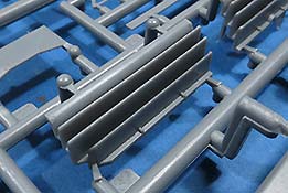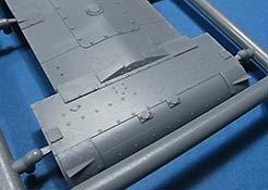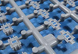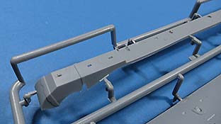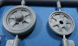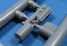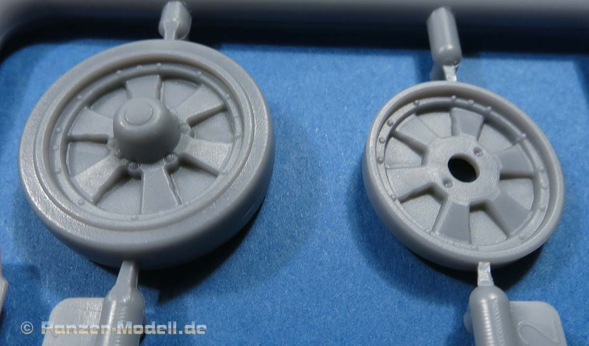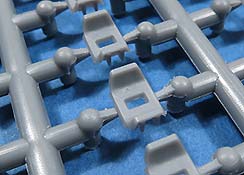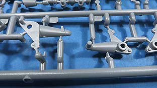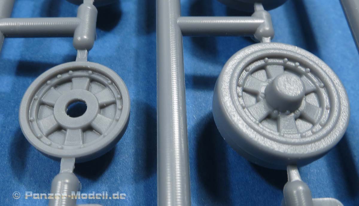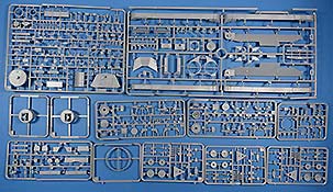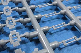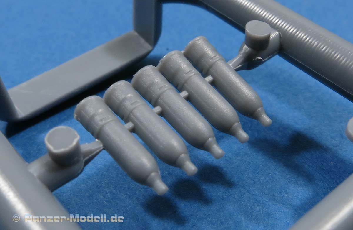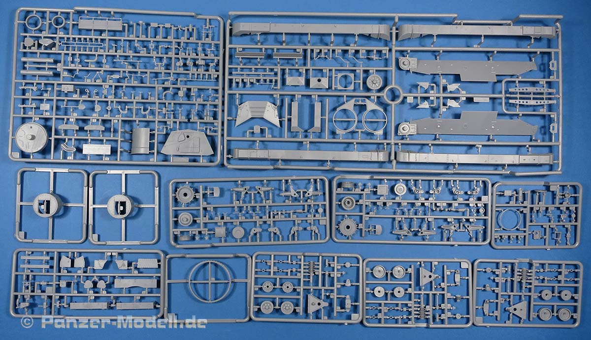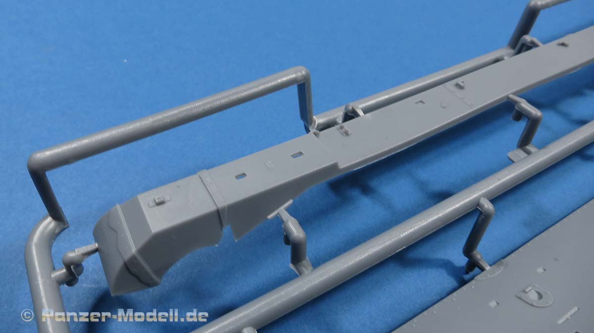Die Gusssqualität ist ganz hervorragend. Details wie z.B. Schrauben, Nieten, Schweißnähte und Bedienhebel fallen positiv ins Auge mit scharfen, klaren Detailguss. Die Angüsse sind klein und gut zugänglich. Auswerferspuren sind, wo es geht auf den Gießästen zu finden, und sonst nur in geringer Anzahl auf den Teilen und an Stellen, die nach dem Zusammenbau nicht mehr ins Auge fallen. Zudem sind sie recht flach und gut zu entfernen, wenn man dies für nötig hält.