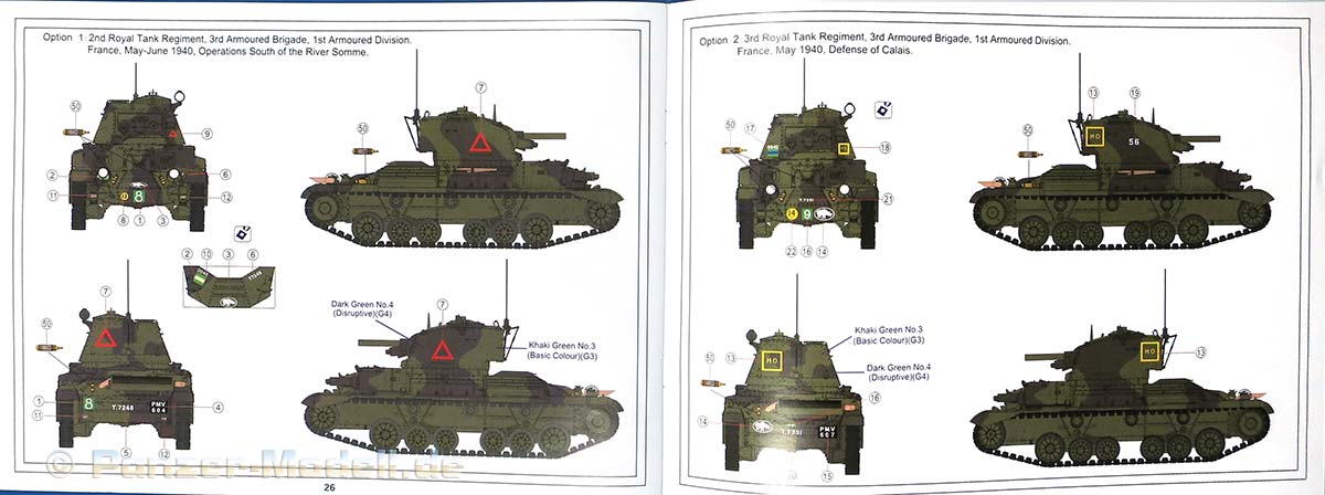 - 3rd Royal Tank Regiment, 3rd Armoured Brigade, 1st Armoured Division, Calais, Frankreich, Mai 1940 in Zweifarbtarn Khaki/Dunkelgrün