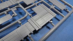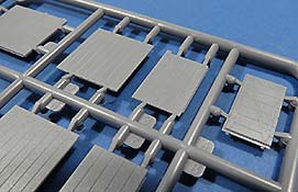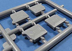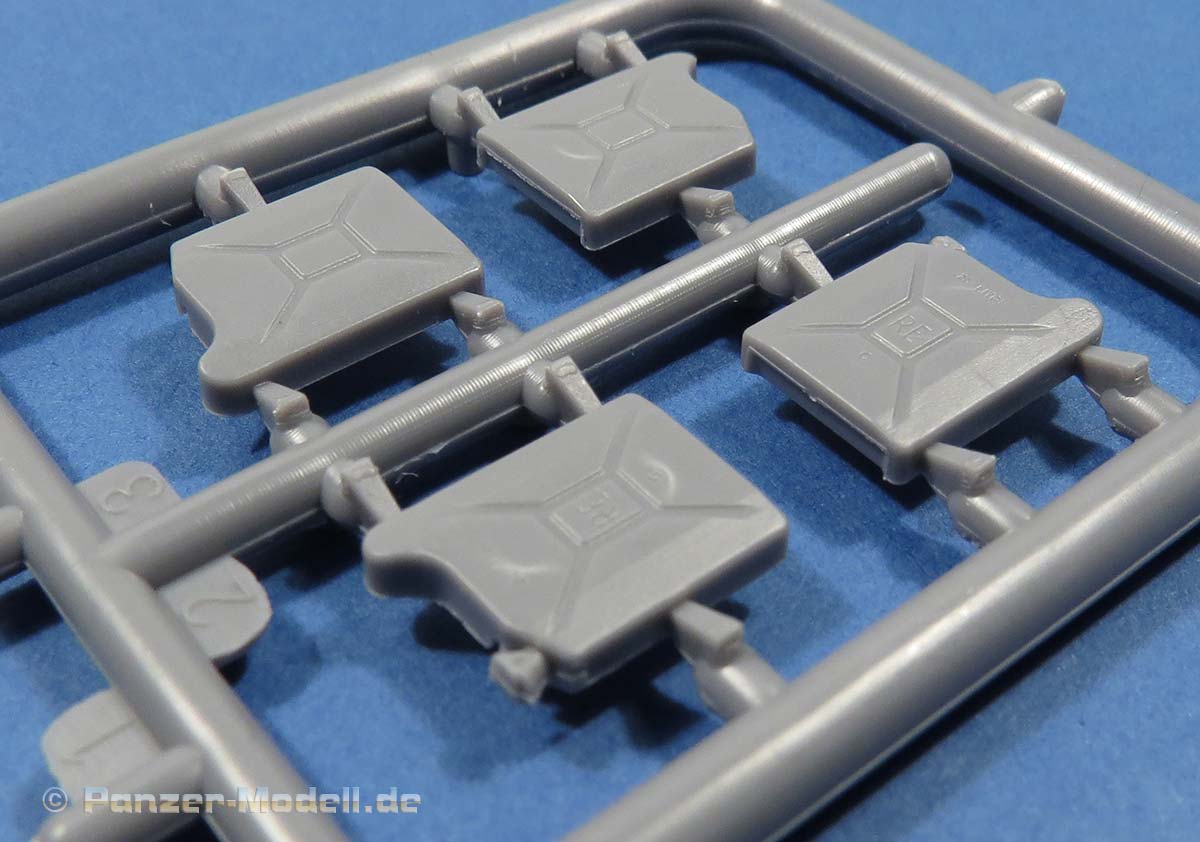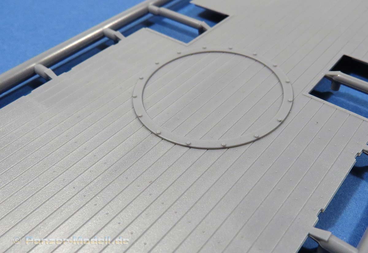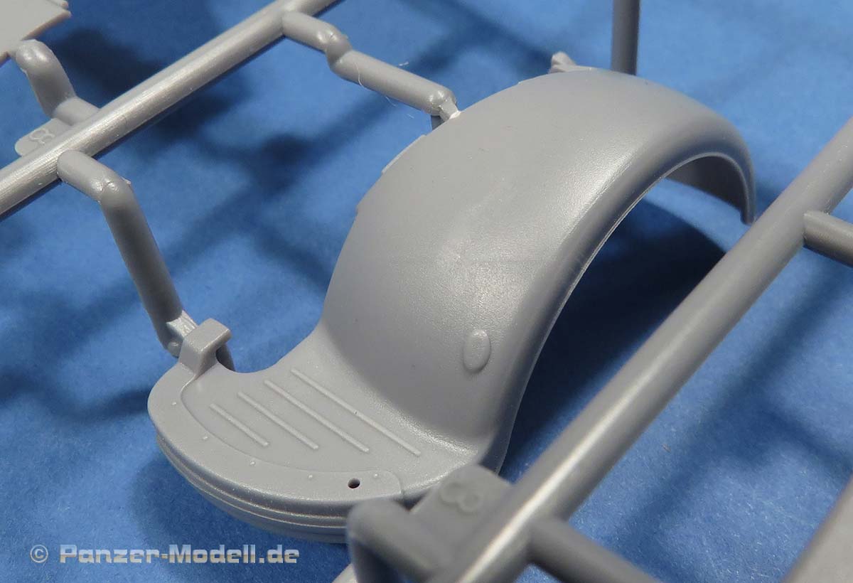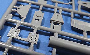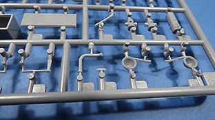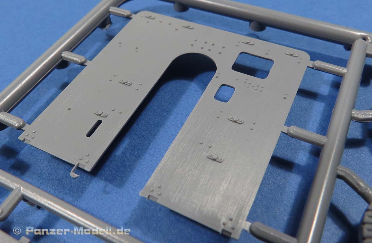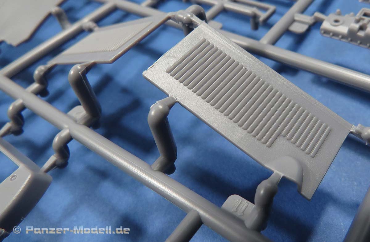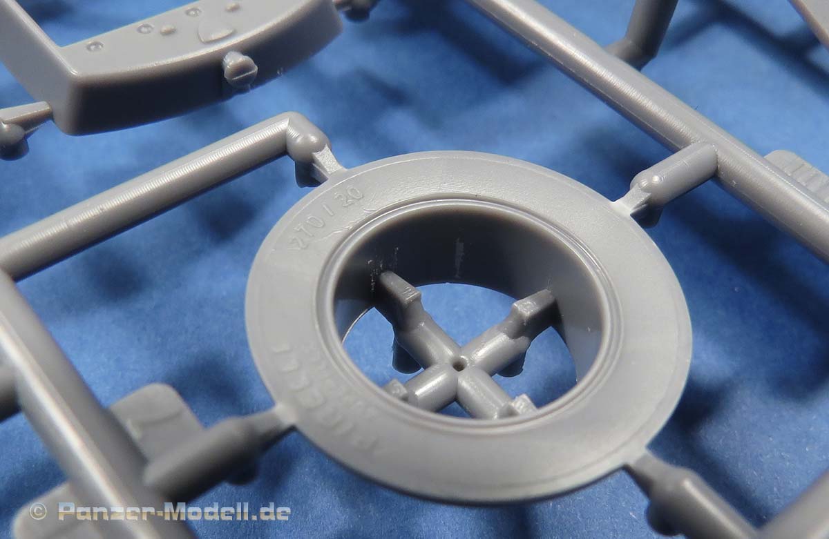 Die Teile aus grauem Plastik sind sauber ausgespritzt, ohne Grat und Versatz. Angüsse sind so gesetzt, dass Details in der Regel nicht beeinträchtigt werden. Unnötige oder störende Auswerferspuren sind mir nicht aufgefallen. Also, alles in allem sollte man die Teile vom Spritzling ohne viel Nacharbeit bekommen.