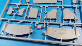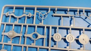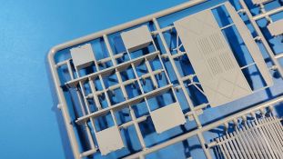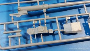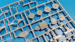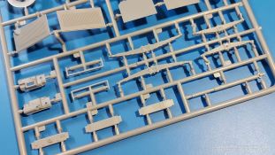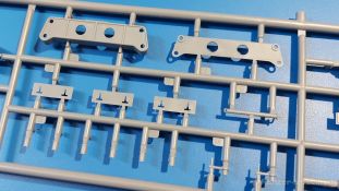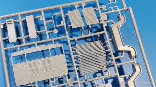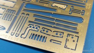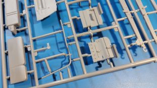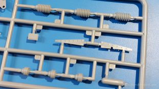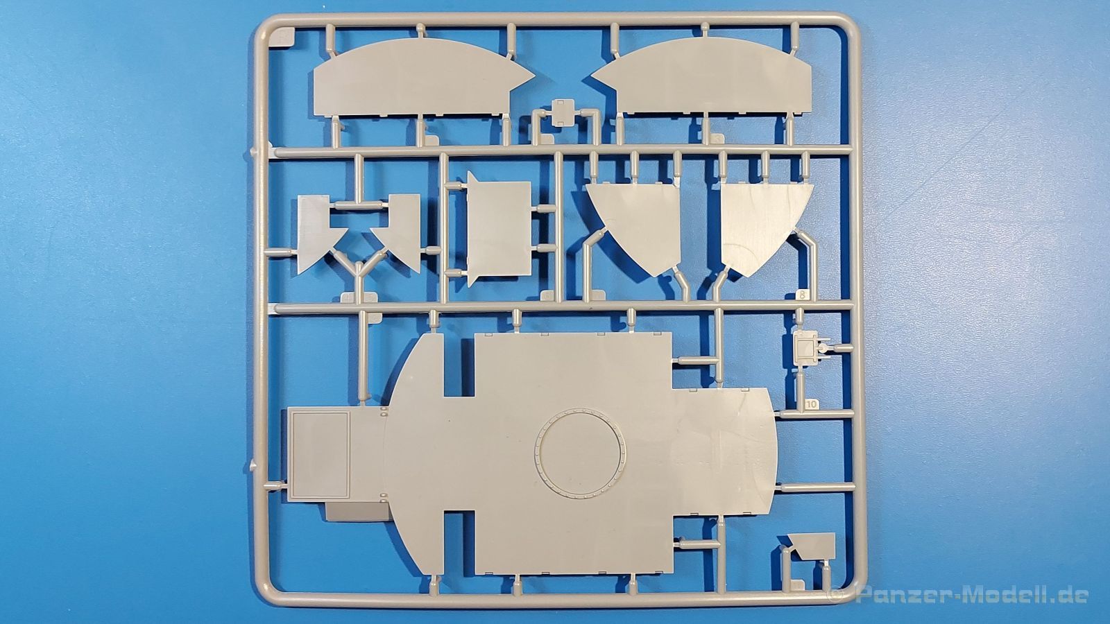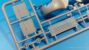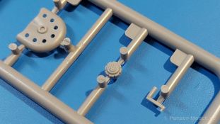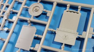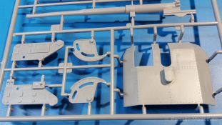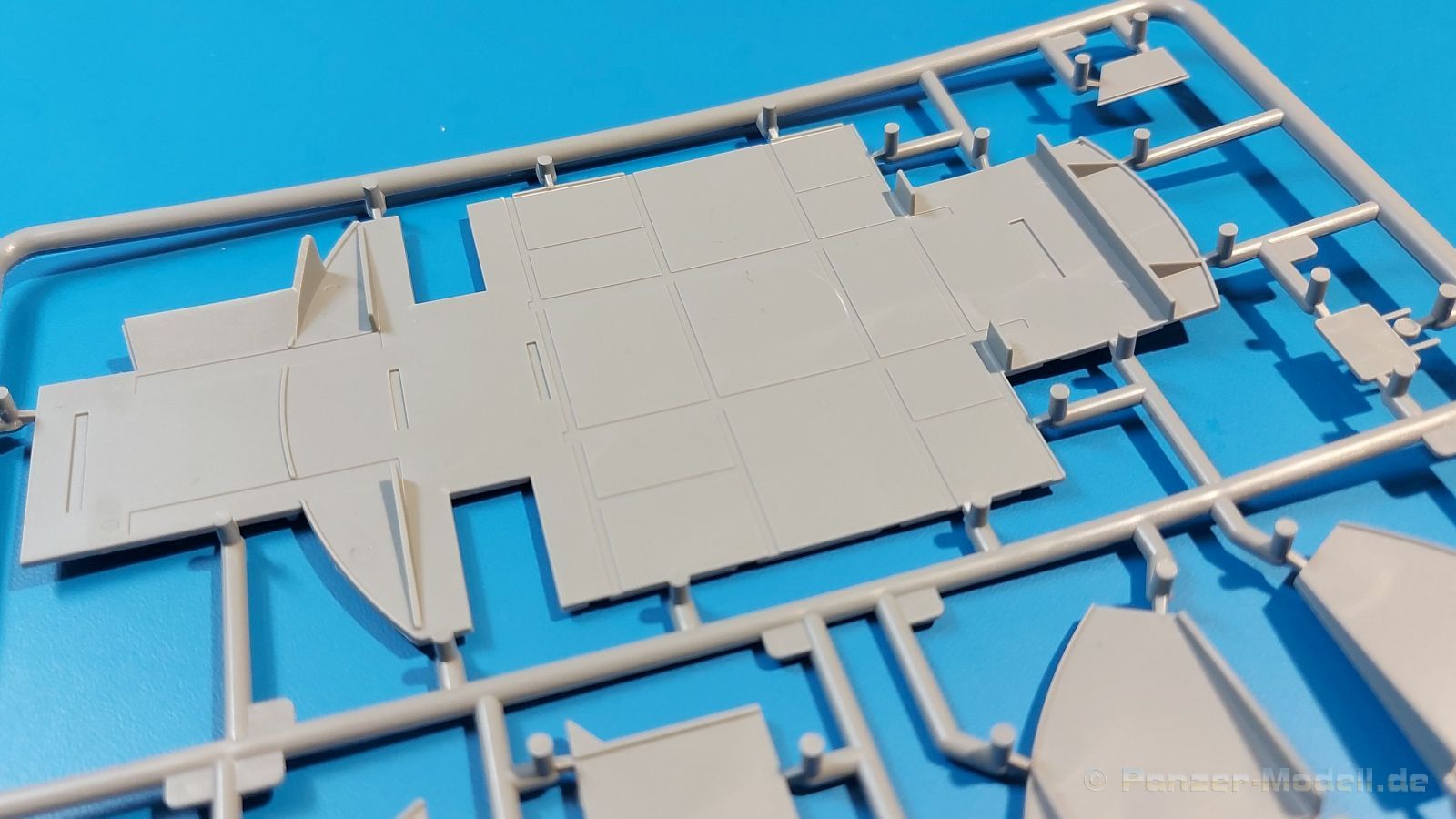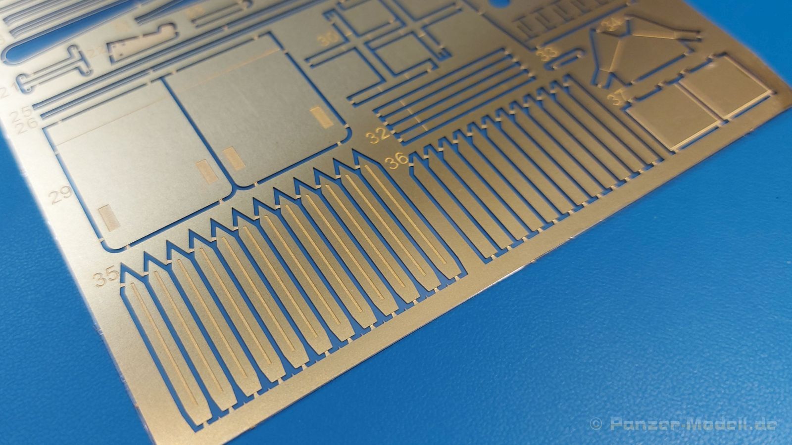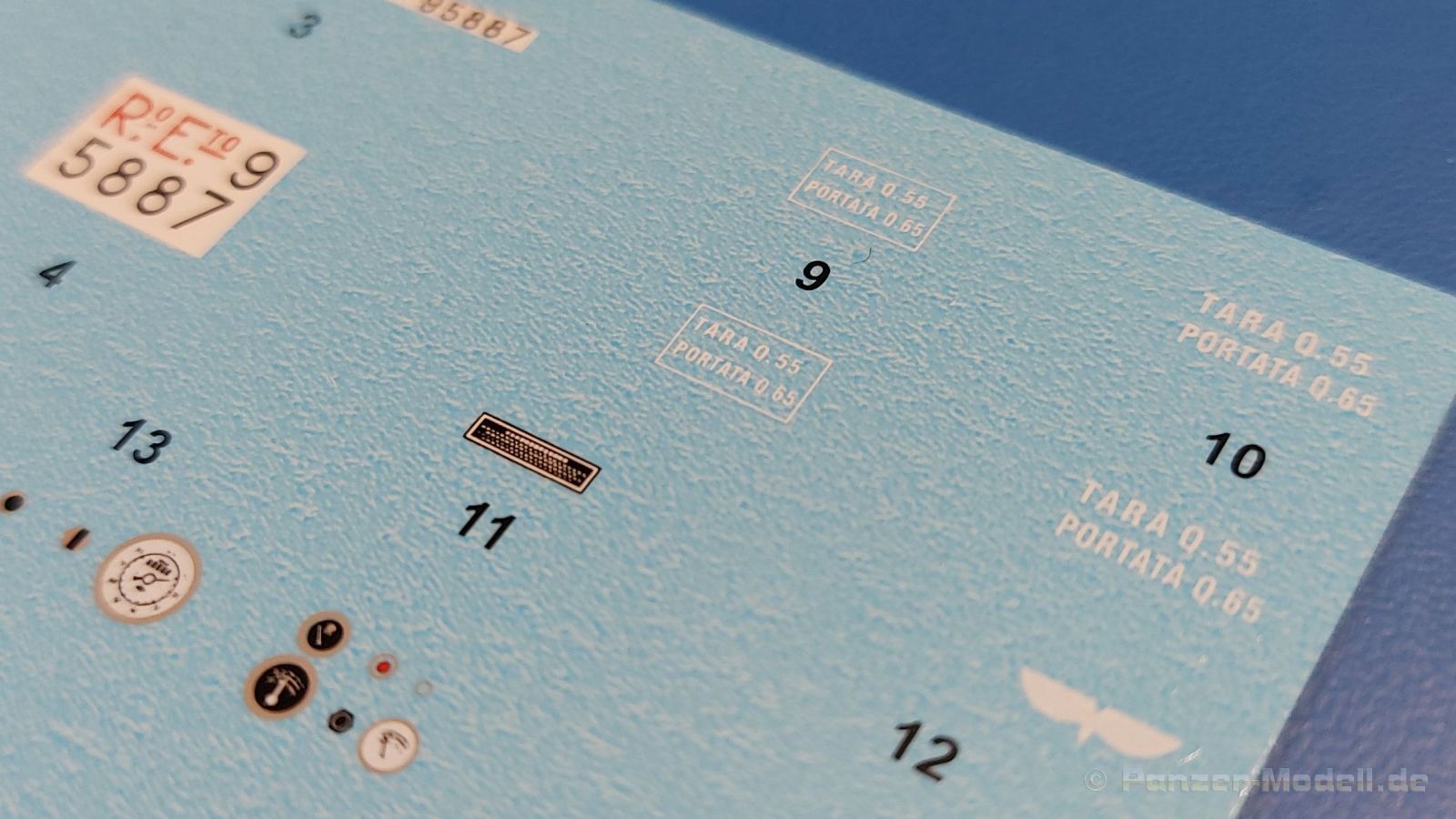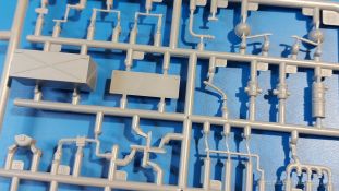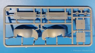 Das Original Der Lancia 3RO war ein schwerer, italienischer Lkw, basierend auf dem Lancia RO. Er wurde ab 1939 bis 1950 produziert und war bis in die 1960-er Jahre im Einsatz. Mit seinem 93 PS Motor konnte er bis zu 45 km/h erreichen. Der Lancia fand sowohl zivile als auch militärische Abnehmer. Als Truppentransporter konnte er bis zu 32 Soldaten transportieren. Es wurden aber auch Panzer und Pferde befördert. Umgebaute Fahrzeuge waren z.B. mit einer 100mm Haubitze oder einer 90mm Flugabwehrkanone ausgerüstet. Neben der italienischen Armee nutzte ihn auch die deutsche Wehrmacht. Für die Flugabwehrkanone Ansaldo 90/53 wurden die Leistungsmerkmale der deutschen 8,8 cm Flak und der amerikanischen M1 90mm Flak als Maßstab herangezogen. Sie wurde hauptsächlich als gezogenes Geschütz mit einer Kreuzlafette gebaut, aber einige Exemplare wurden auch Panzer- und Lkw-Fahrgestelle gesetzt. Der Bausatz: Basierend auf seinen hervorragenden 3Ro Bausätzen liefert uns IBG nun den umgebauten Lkw mit der 90mm Flak. Ganz offensichtlich der erste und einzige Bausatz dieses Fahrzeuges in Spritzguss. Der Stülpkarton ist 400 x 260 x 110 mm groß und enthält 16 graue, zwei klare Spritzlinge, 7 Plastikreifen, 1 PE-Platine, Decals und die Bauanleitung. Die Teile aus grauem Plastik machen einen guten Eindruck, sind sauber ausgespritzt, ohne Sinkstellen oder Versatz. Angüsse sind so gesetzt, dass Details nicht beeinträchtigt werden. Störende Auswerferspuren konnte ich jetzt nicht entdecken. Die Klarsichtteile für Scheiben und Scheinwerfer sind kristallklar, ohne Kratzer oder Schlieren. Auch bei diesem Lancia besteht der Rahmen aus separaten Längs- und Querträgern. Selbst ein weniger erfahrener Modellbauer sollte einen verwindungsfreien Rahmen hinbekommen, denn die Träger sind so geformt, dass sie nach dem Zusammenbau die entsprechende Stabilität gewährleisten. Es gibt sehr viele, teils aus PE bestehende, teils auch filigrane, Anbauteile, die alle ihren Platz finden wollen. Man sollte die Bauanleitung schon sehr ausgiebig studieren. In der Vorderachse sind bereits viele Details integriert, so dass nur noch ein paar Hebel und Gestänge angebaut werden müssen. Leider kann man die Räder nur in Geradeausstellung montieren, es sei denn, man entschließt sich zu „einschneidenden“ Änderungen an Radlager und Gestängen. Auch die Hinterachse ist gut detailliert. Zusätzliche Spiralfedern, Hebel und das schöne Kardangelenk sind hierbei anzusprechen, wenn auch letzteres bei der Montage der Kardanwelle fast vollständig unter einer Schutzkappe verschwindet. Wie auch bei den Vorgängermodellen sind die Bremsseile und Leitungen aus PE. Diese Extra-Details sind herausfordernd, aber auch lohnenswert! Die großen Blattfedern vorn wie hinten sind schön strukturiert. Auch wenn man auf den ersten Blick in den Karton der Meinung sein kann, dass man 7 gleiche Räder bekommt, so unterscheiden die sich durch ihr „Innenleben“. Die Lauffläche mit dem Profil und einer Seitenwand mit erhabenem PIRELLI Herstelleraufdruck und Reifengröße sind für alle gleich. Für die Vorderräder setzt man nur Felge mit Seitenwand und Lauffläche zusammen. Bei den Zwillingsreifen hinten besteht das innere Rad aus Felge und Lauffläche, das äußere aus Felgentrommel und Lauffläche. Das Ersatzrad besteht nur aus Felgentrommel und Lauffläche. Die Felgen sind mit entsprechenden Durchbrüchen versehen. Das Ersatzrad ruht in einem 3-teiligen Gestell am Heck des Rahmens. 2 PE Gurte sichern das Rad gegen Herausrutschen. Im vorderen Drittel des Rahmens sitzt das Getriebe, ausgestattet mit Kardanwelle, Öleinfüllstutzen und, über Umlenkrollen gelegte, PE-Drähte. Genoppte Trittbleche für das Fahrerhaus werden auch am Rahmen befestigt. Im hinteren Querträger sitzt die Anhängekupplung mit separatem Kupplungsbolzen, so dass man einen Anhänger ohne Schnitztechnik anhängen könnte, aber diese Version des 3Ro war wohl meist ohne unterwegs. Der mehrteilige Auspuff wird im Rahmen verlegt und mit einigen PE-Teilen gesichert. Der Dieselmotor ist ein kleines Modell für sich. Der hohe Motorblock des 5-Zylinder Diesel mit seinen Einspritzdüsen im Zylinderkopf fällt ebenso ins Auge wie die als Ölkühler ausgelegte und somit mit vielen Kühlrippen versehene Ölwanne. Lichtmaschine, Einspritzpumpe, Keilriemen, Lüfterrad, Zuluft- und Kühlleitungen, Abgaskrümmer und Öleinfüllstutzen sind weitere Details. Nach dem Einbau in den Rahmen wird der Motor mit dem dünnen, aber dennoch beidseitig detaillierten Kühler versehen. Das Fahrerhaus ist ein viele Einzelteile aufgebrochen. Die Rückwand hat außen etliche Versteifungsrippen und ist zur Geschützplattform hin offen ohne Scheiben. Innen wird die durchgehende Rückenlehne angebracht. Die schmalen Seitenwände haben um unteren Ende Stangen zur Aufhängung der Trittbleche. Hier sollte man beim Hantieren aufpassen, um die Stangen nicht bereits vor der Montage des Fahrerhauses auf dem Rahmen abzubrechen. Der Boden nimmt die einteilige Sitzbank auf, deren Darstellung aber eine Trennung zwischen Fahrer- und Beifahrersitz aufweist. Es macht den Eindruck, dass der Fahrer auf dem Tank sitzt, den rechts von seinem Sitz schaut ein Einfüllstutzen heraus. Schalt- und Handbremshebel werden ebenfalls auf den Boden geklebt. Die Fahrerhausfront ist auch beidseitig detailliert. Bereits angegossen sind die Halterungen mit den Winkern. Außen wird der Luftfilter mittels PE-Halterung montiert und über die Zuluftleitung mit dem Motor verbunden. Innen finden sich Kupplungs-, Brems- und Gaspedal, Lenkstange und -rad, Armaturentafel, kleine Bedienhebel und Haltebügel für den/die Beifahrer. Beidseitig detaillierte Türen können geöffnet oder geschlossen angebaut werden. Die äußeren Türgriffe werden separat angebracht. Beidseitig werden Außenspiegel (man achte auf die Details siehe Foto) und Suchscheinwerfer(?) angebracht. Das Dach, auch innen mit Struktur, schließt das Fahrerhaus nach oben hin ab. And