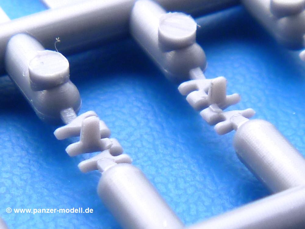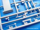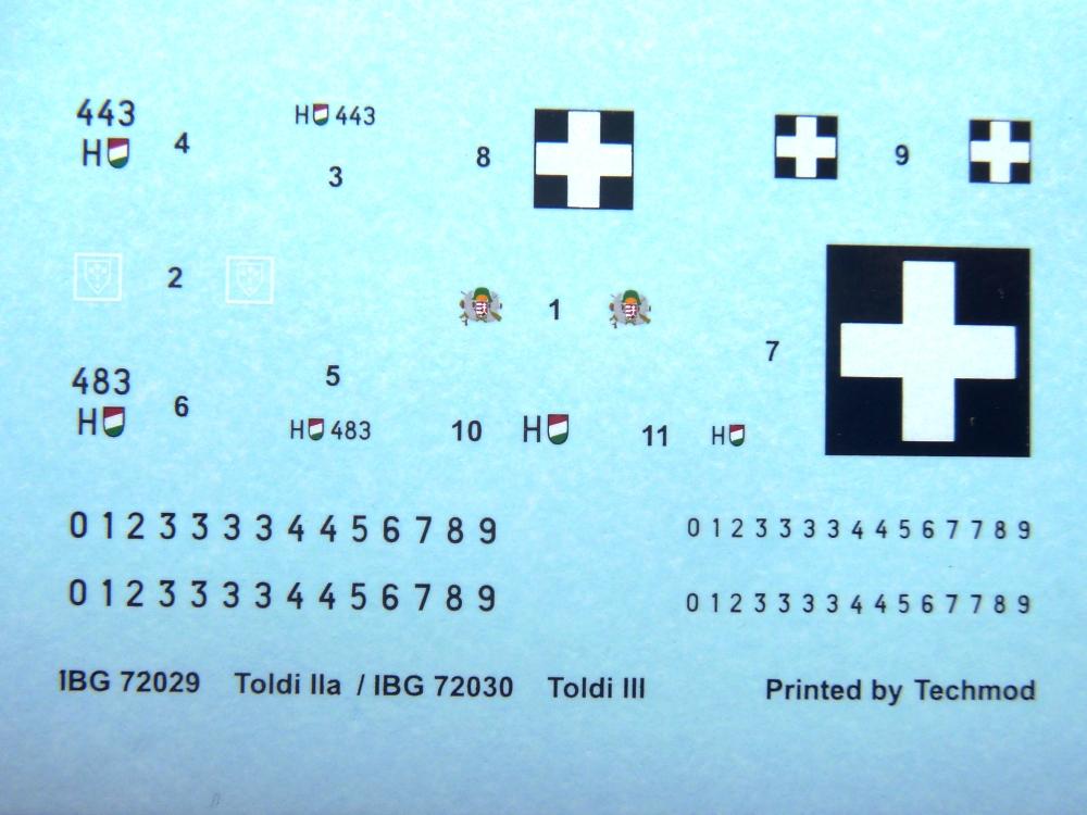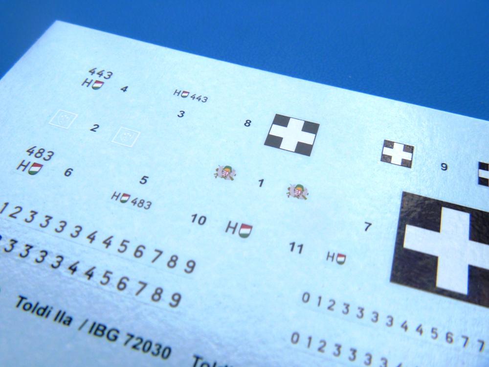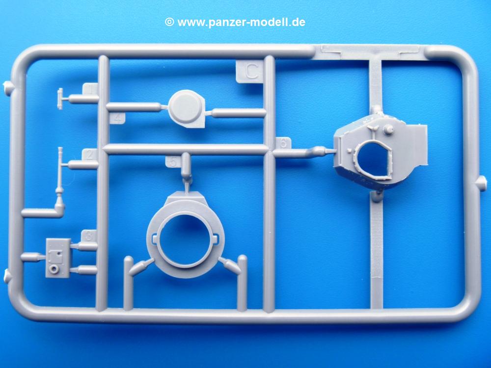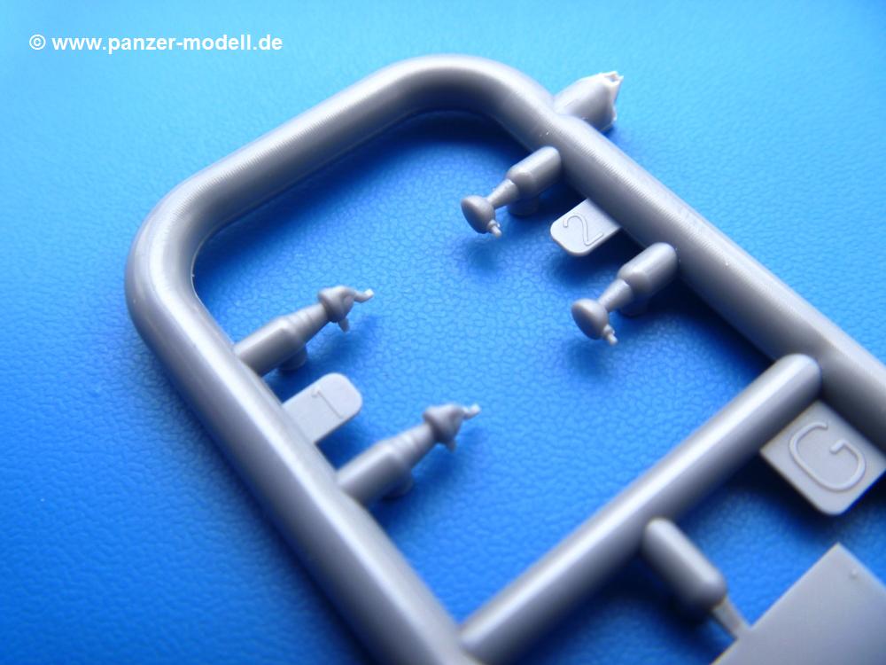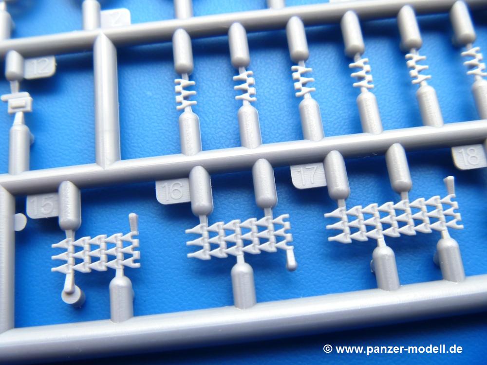 Die Teile aus mittelgrauem Plastik sind sauber ausgespritzt, ohne Grat und Versatz. Die Auswerfer sind meist auf den Spritzrahmen platziert. Feine Details treten scharf hervor.Die Wanne ist mehrteilig in Boden-, Heck-, Bugplatte und Seitenwänden ausgeführt. Ebenso sind Schwingarme, Stoßdämpfer und Kettenspannvorrichtung als separate Teile zu montieren. Die Befestigungsstifte der Schwingarme erscheinen mir ein wenig kurz. Sicheres Verkleben erspart späteren Frust. Alle Räder werden Paaren zusammengeklebt. Nieten und Verschraubungen sind jede Menge vorhanden, die Details treten scharf hervor. Die Ketten bestehen aus verschieden großen Segmenten und Einzelgliedern für die Rundungen der Antriebs- und Leiträder. Die Kettenführungszähne sind auch sehr schön gestaltet. Das Heraustrennen der Einzelglieder wird jede Menge Vorsicht erfordern, da die Glieder extrem fein und zerbrechlich erscheinen.Die Oberwanne besteht aus einem großen Teil mit angegossenen Kettenabdeckungen. Auch hier fallen feine Details wie Nietenreihen, Wartungsklappen, Luftein- und Auslassgrätings auf. An den Staukästen finden wir feine Klavierscharniere. Werkzeuge wie Schaufel, Spitzhacke, Brechstange und Wagenheber beleben das Fahrzeug. Die Fahrerluke kann geöffnet oder geschlossen angebracht werden. Die Scheinwerfer sind mit ihren Schutzbügeln zusammengegossen und wirken ein klein wenig "klotzig", sind aber in dem Maßstab in Spritzguß kaum besser zu gestalten.Der Turm besteht Unter-, Oberteil und Luke. Seitenluken und Sichtklappen sind angegossen, trotzdem aber sehr schön detailliert. Zwar sind auch die 20mm Kanone und die passende Blende im Bausatz vorhanden, aber für den Toldi IIa kommt die 40mm Kanone mit ihrer Blende zum Einsatz. Das Turmheck bekommt noch einen zweiteiligen Staukasten.Dem Bausatz liegen Decals für 2 Fahrzeuge bei. In der Anleitung ist aber nur 1 Version in Wintertarnung über olivgrüner Grundfarbe erwähnt: