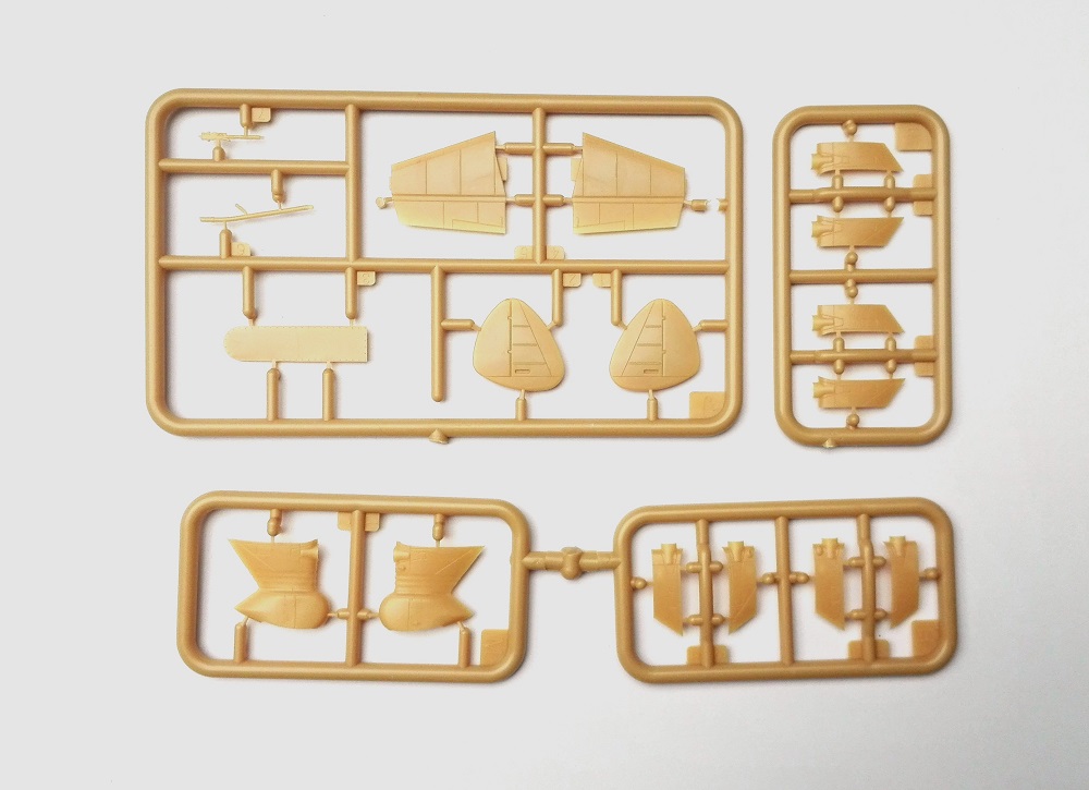 Der Bausatz für diesen polnischen leichten Bomber und Aufklärer besteht aus sechs Spritzrahmen in hellem sandgelben Plastik, einem Spritzrahmen mit Klarsichtteilen, einer kleinen Platine mit PE-Teilen und einem Decalsheet. Insgesamt macht der Bausatz einen sehr guten Eindruck. Der Spritzguss wirkt einwandfrei mit feinen Gravuren und sehr gut ausgearbeiteten Details. Die Angüsse fallen erfreulich klein aus und werden sich leicht entfernen und versäubern lassen. Die Klarsichtteile sind absolut schlierenfrei und die Verstrebungen der Kanzel sind sehr schön erhaben ausgeführt. Das dürfte das Abkleben und spätere lackieren erheblich erleichtern.