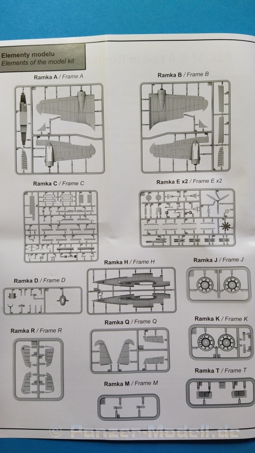 Die Bauanleitung ist zweisprachig ausgelegt. Es gibt Hinweise in polnischer und englischer Sprache. Sie ist sehr detailliert und übersichtlich aufgebaut. Zu Beginn findet man eine Übersicht der enthaltenen Decals und Fotoätzteile sowie Farbangaben für die Hersteller Vallejo, Hataka, Life Color, Mr. Hobby, und AK Interactive. Im Weiteren folgt dann eine Übersicht der enthaltenen Gießäste. Danach folgt die eigentliche Bauanleitung, die sich in 23 Baustufen gliedert. Hier wird pro Baustufe anhand von einfarbigen 3D-Zeichnungen Schritt für Schritt der Weg zum fertigen Modell dargestellt bzw. erklärt. Den Abschluss der Anleitung bilden drei verschiedene Bemalungs- und Markierungsvarianten.