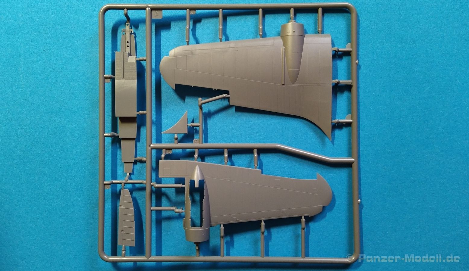 Grundsätzlich besteht der Bausatz wie bei den meisten Flugzeugbausätzen aus linker und rechter Rumpfhälfte und jeweils Ober- und Unterteil für die Flügel rechts und links und weiteren Anbauteilen wie z.B. Höhen- und Seitenruder.