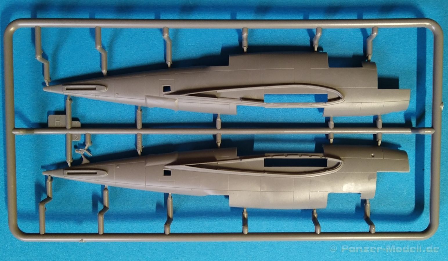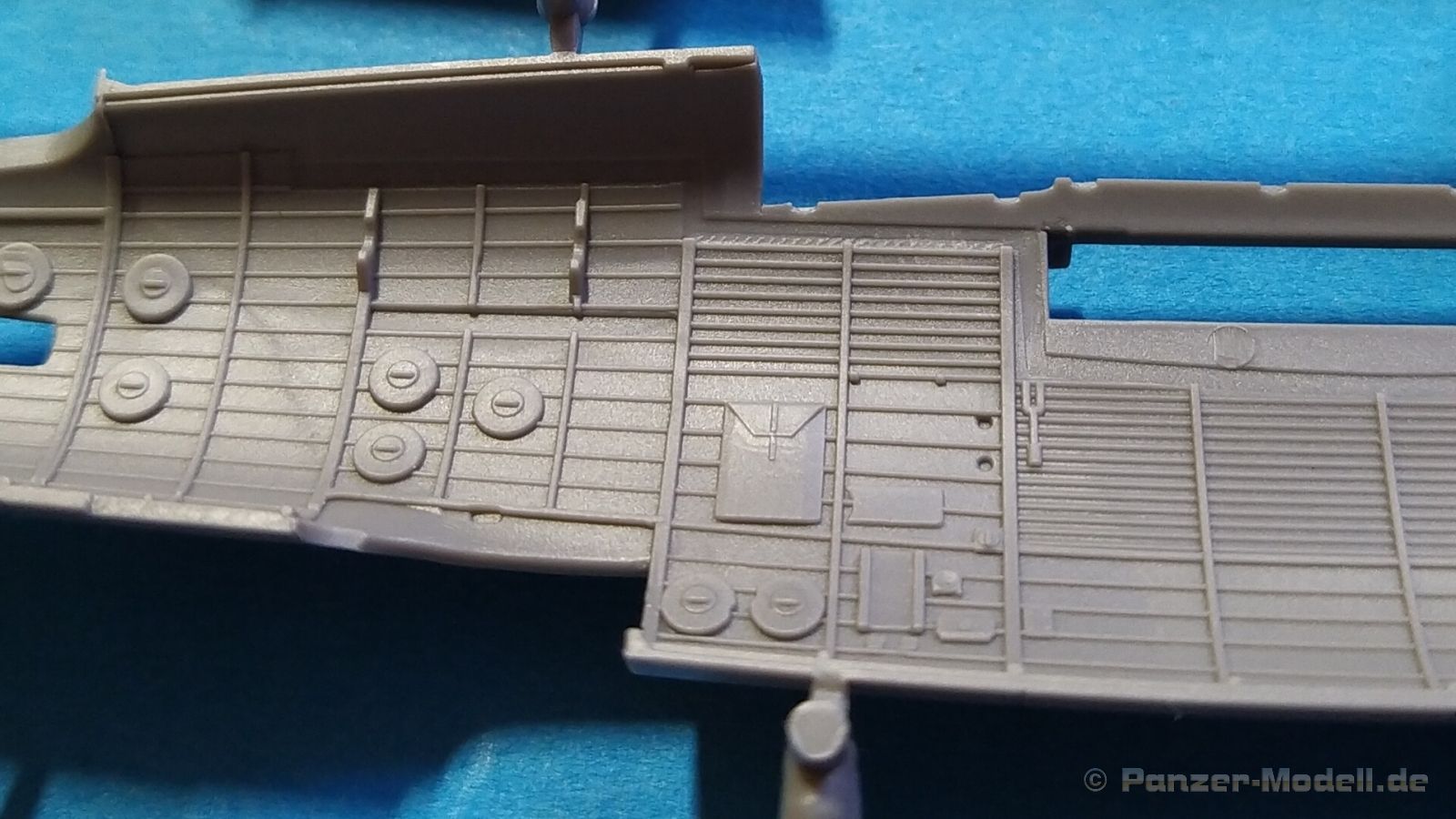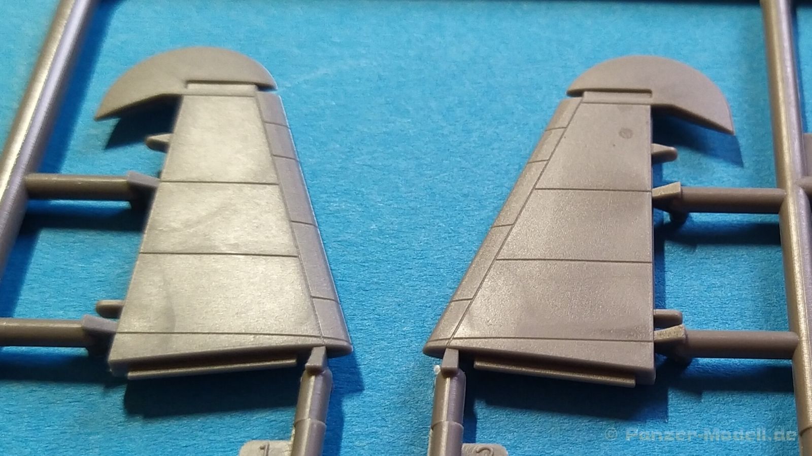 Die Rumpfhälften sind innen, wie auch außen schön graviert. Die Höhen- und Seitenruder weisen schön scharfe Kanten auf und lassen sich in verschiedenen Positionen montieren.