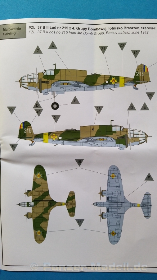Angetrieben von zwei luftgekühlten Sternmotoren vom Typ Bristol Pegasus XX konnte die 4 köpfige Besatzung mit dem knapp 9 Tonnen schweren Flugzeug insgesamt ca. 2,6 to Bombenfracht ins Ziel bringen und sich dabei notfalls mit den drei 7,7-mm-MG verteidigen. Insgesamt wurden nur 92 Flugzeuge dieses Typs in verschiedenen Versionen gebaut. Die mit diesem Bausatz dargestellten Versionen sind etwas Besonderes. Zeigen Sie doch drei Varianten der, nach dem Überfall von Deutschland auf Polen, nach Rumänien „geretteten“ und dort mit neuer Bemalung bzw. Markierung zum Einsatz gebrachten Flugzeuge.