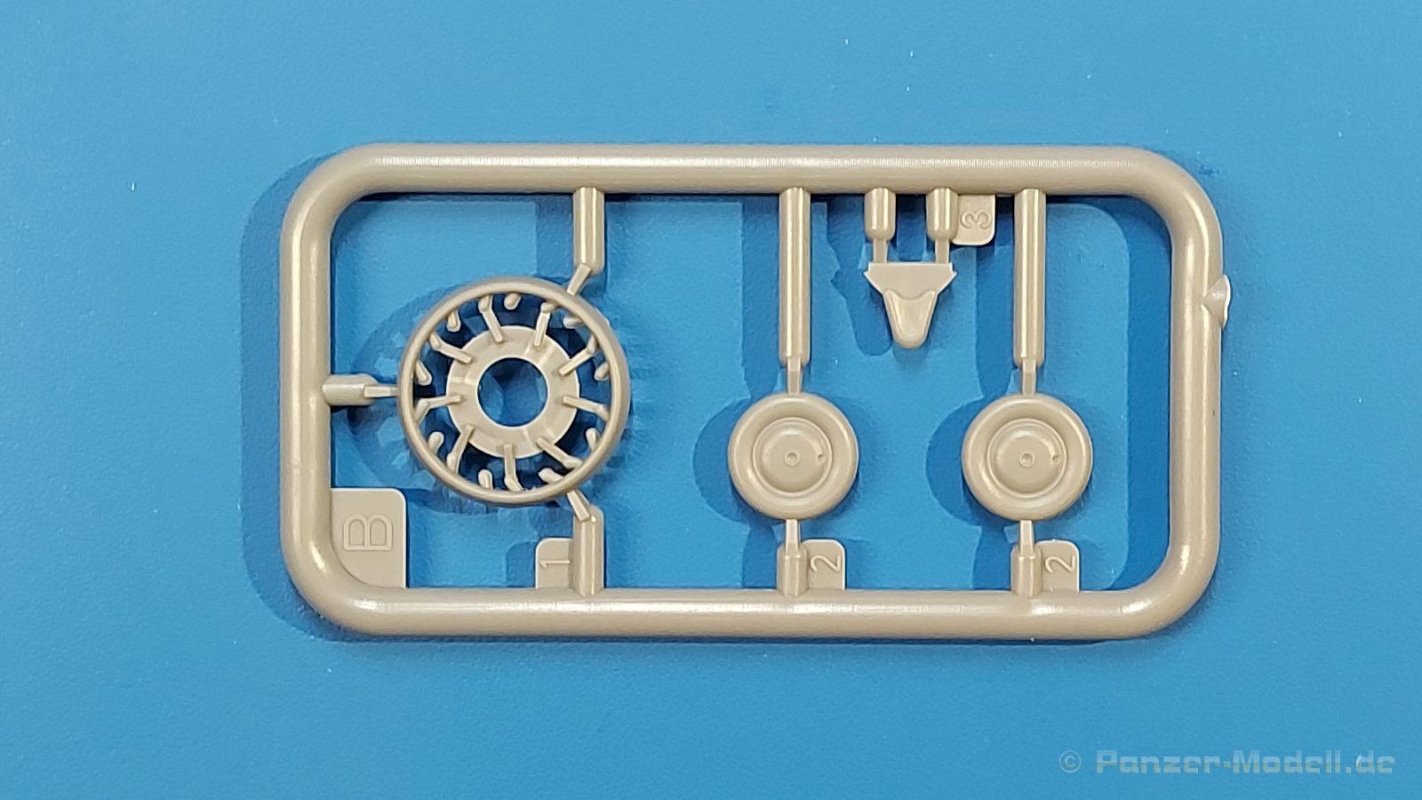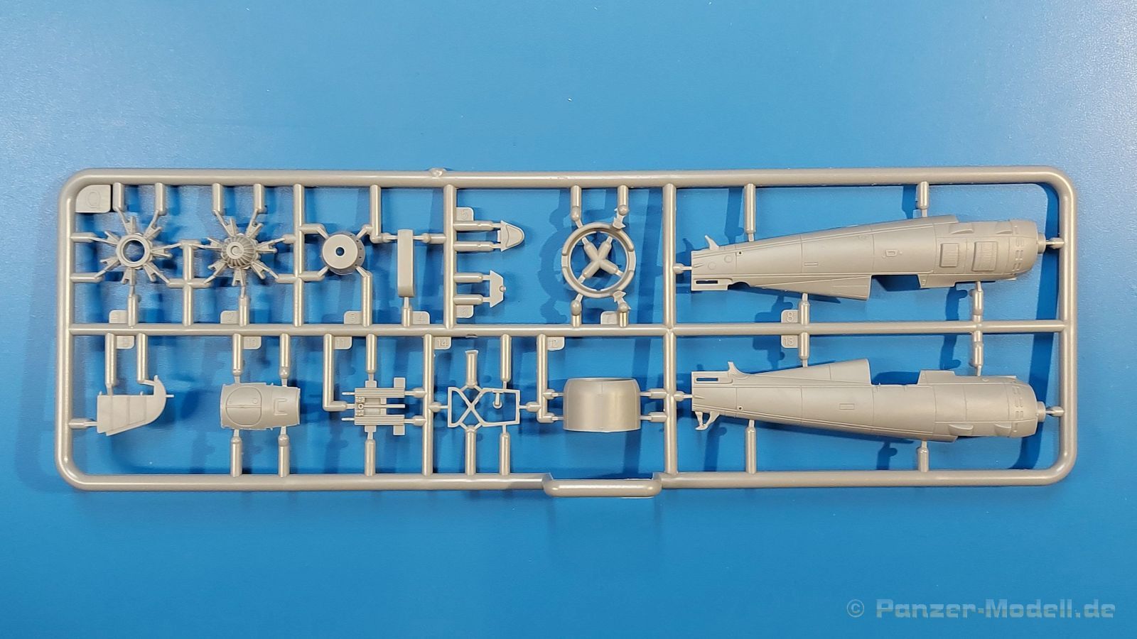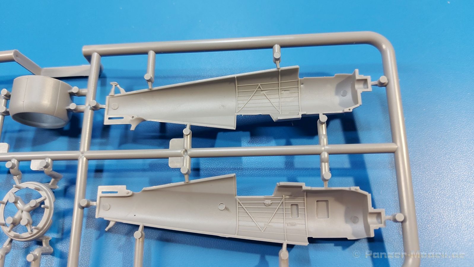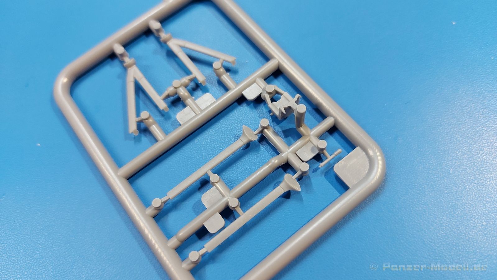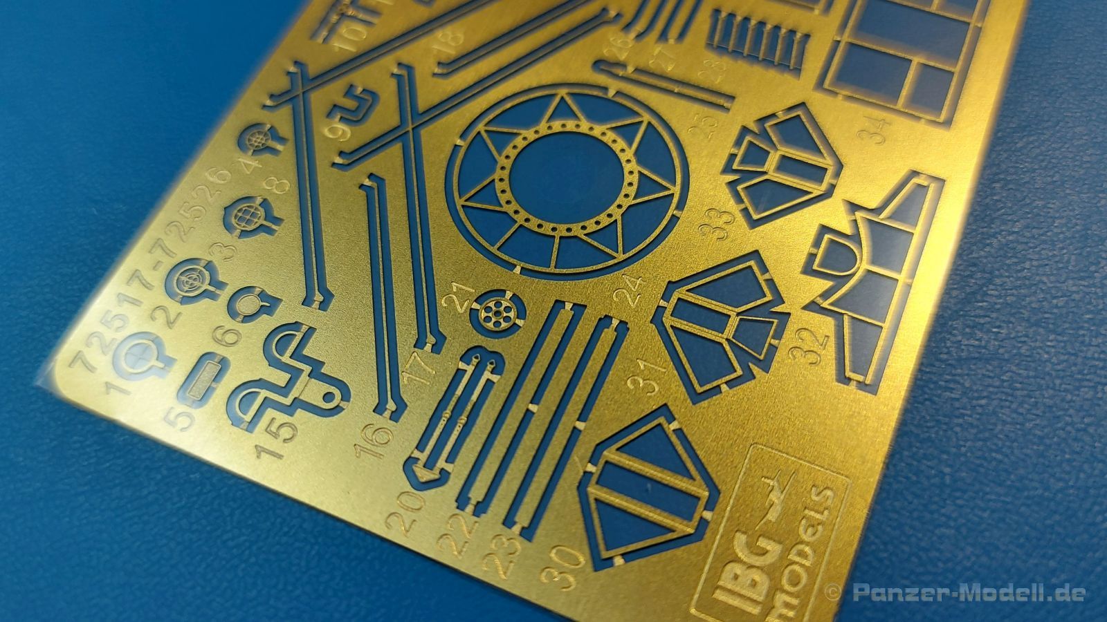Das Original: Das PZL P.24 war ein, in Polen zwischen 1936 und 1939, für den Export produziertes, einmotoriges Jagdflugzeug, das auf Elementen des PZL P.11 aufbaute. Die Hauptnutzerländer waren Bulgarien, Griechenland, Rumänien und die Türkei. Mit dem 970 PS (723 kw) 14-Zylinder-Doppelsternmotor erreichte es 430 km/h. Die Bewaffnung bestand aus zwei 7,7mm MG und zwei 20 mm Kanonen, alle im Flügel untergebracht. Der Bausatz: IBG präsentiert uns hier ein Modell des interessanten Hochdeckers im Kleid der türkischen Luftwaffe. Wir finden im Karton 8 graue und 1 Klarsichtspritzling, 1 PE-Platine, Klarsichtfolie, Decals und die Bauanleitung. Die Spritzrahmen sind relativ dick im Vergleich zu den teils filigranen und gut detaillierten Teilen. Diese sind sauber ausgespritzt, ohne Grat und Versatz. Angüsse sind so gesetzt, dass Details nicht beeinträchtigt werden. Grobe Auswerferspuren sind mir nicht aufgefallen. Das Cockpit besteht aus Bodenplatte, Sitz und Steuerknüppel. Sitzgurte, Pedale und Trimmrad sind aus PE. Das Trimmrad PE-21 ist in der Anleitung fast nicht zu sehen. Da es sehr blass ausgedruckt ist. Im Cockpitbereich in den Rumpfhälften sehen wir feine Spanten. Für die Armaturentafel gibt es ein buntes Decal. Die Rumpfhälften mit versenkten Gravuren zeigen bereits viele Details. Der Motor besteht aus 2 Ringen zu je 7 Zylindern. Dazu kommt ein Ring mit den Auspuffauslässen, ein PE Ring, eine gelochte Abdeckung und die Motorabdeckung aus einem Teil. Unterhalb der Haube findet ein Luftkanal seinen Platz. Die Oberseite des geknickten Flügels besteht aus einem Teil, die Unterseite aus zweien. Die Flügelteile zeigen eine sehr feine Riffelung und etliche Wartungsklappen. Die Querruder werden separat angebaut. Der Knickflügel sitzt auf dem Rumpf vor der Cockpithaube auf und wird auf jeder Seite von 2 Stützen am Rumpf abgestützt. Auch die Heckflügel haben separate Ruder und auch je 2 Stützen pro Seite. Seitenleitwerk und Seitenruder sind ebenfalls als separate Teile vorhanden. Wie bereits beim Flügel finden wir beim Höhen- und Seitenleitwerk feine Rippen und Riffelungen. Das feststehende Fahrwerk besteht aus V-Trägern pro Seite, die mittels PE-Gestänge gesichert werden. Die Räder sind wie beim Original einfach gehalten. Der Hecksporn ist bereits an den Rumpfhälften angegossen. Pro Seite kommen 2 winzige Bomben unter die Flügel. Propeller und Nabe bestehen aus einer Einheit und werden fest mit der Motornabe verklebt. Oben in der Mitte des Knickflügels wird eine Visiereinrichtung aus PE Teilen angebracht. Bei der Cockpithaube hat die Wahl zwischen Klarsichtteilen aus Plastik oder Rahmen aus PE, in die Folien als Cockpitverglasung eingesetzt werden. Anfänger werden sich vielleicht eher mit den Plastikteilen begnügen, Fortgeschrittene versuchen sich wohl eher an PE und Folien. Gemäß Anleitung kann man 2 Flugzeuge der türkischen Luftwaffe mit den Decals darstellen: