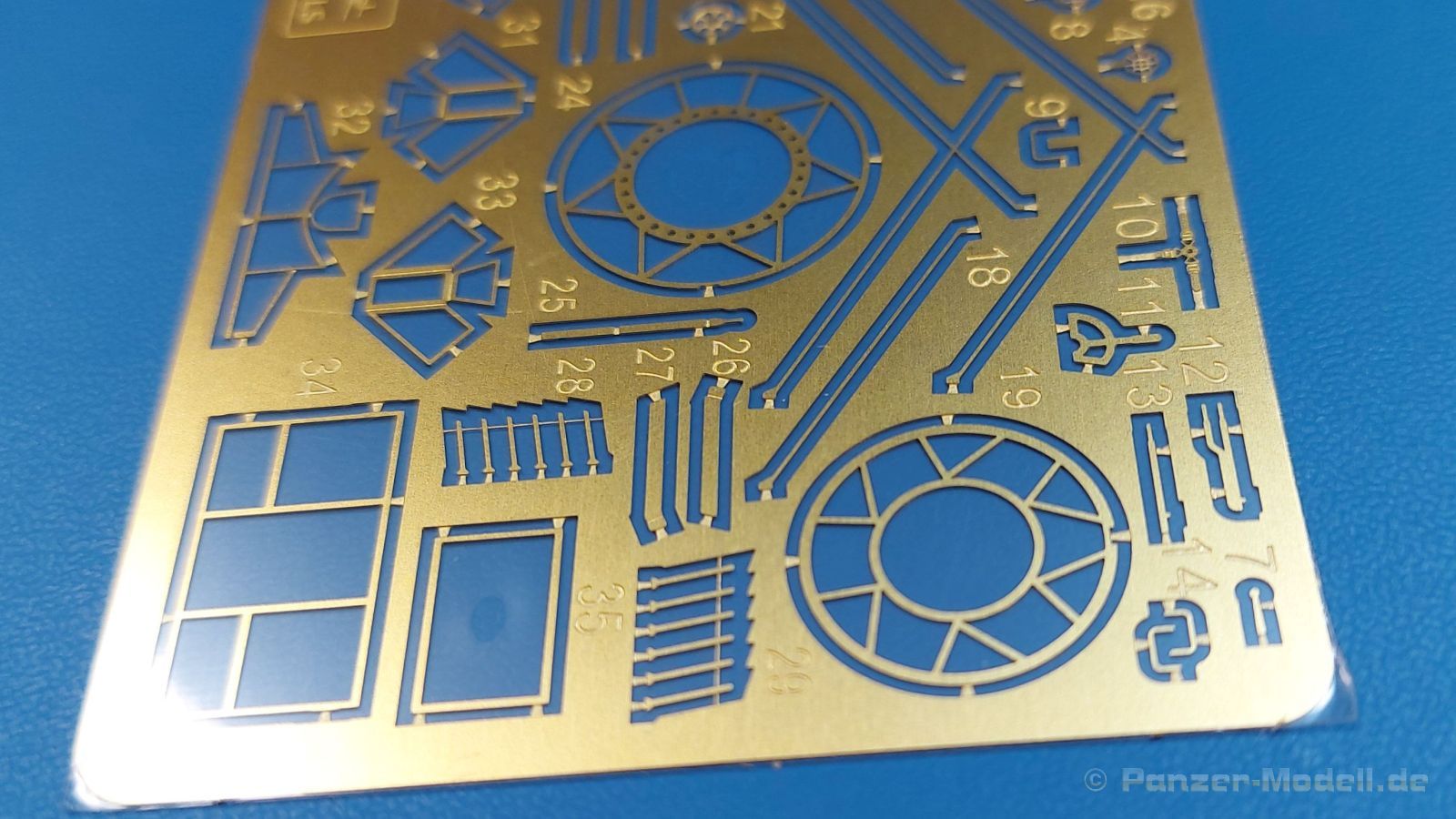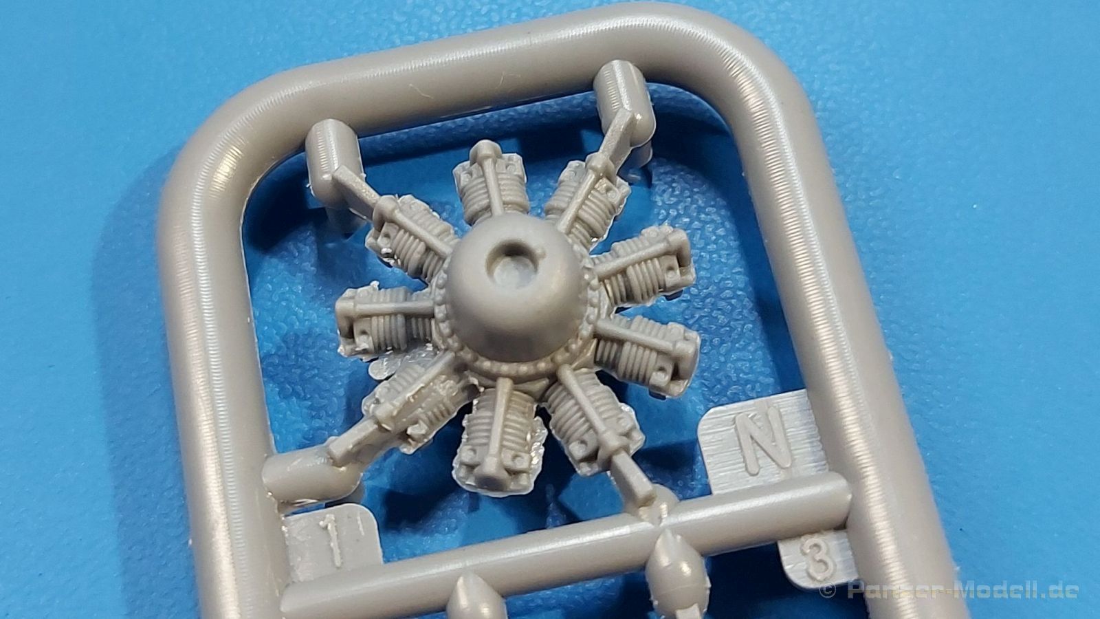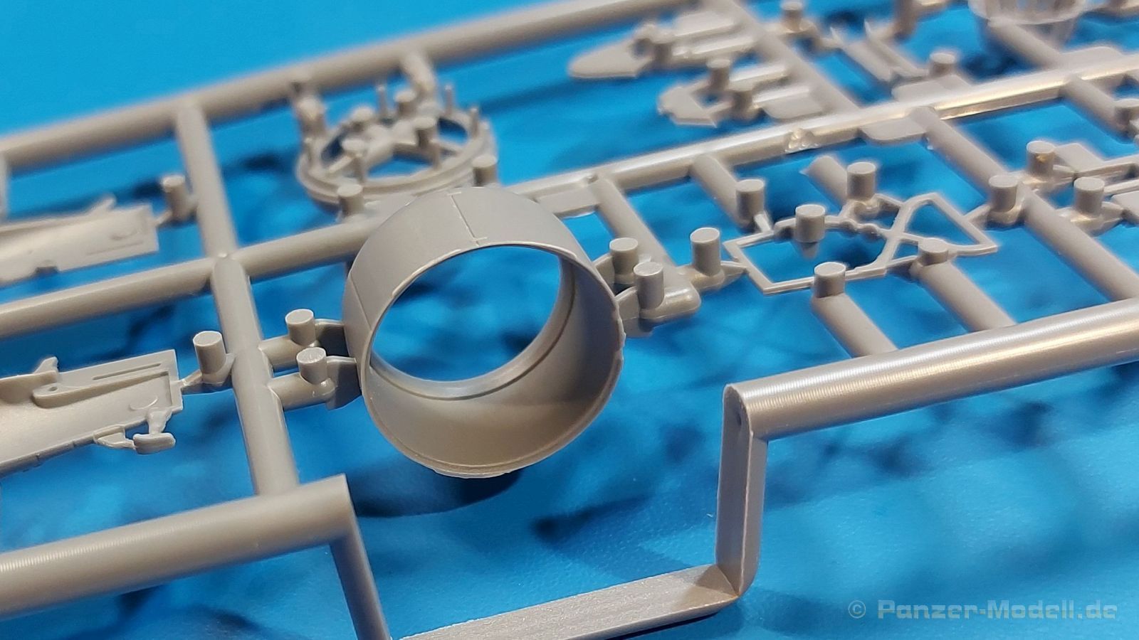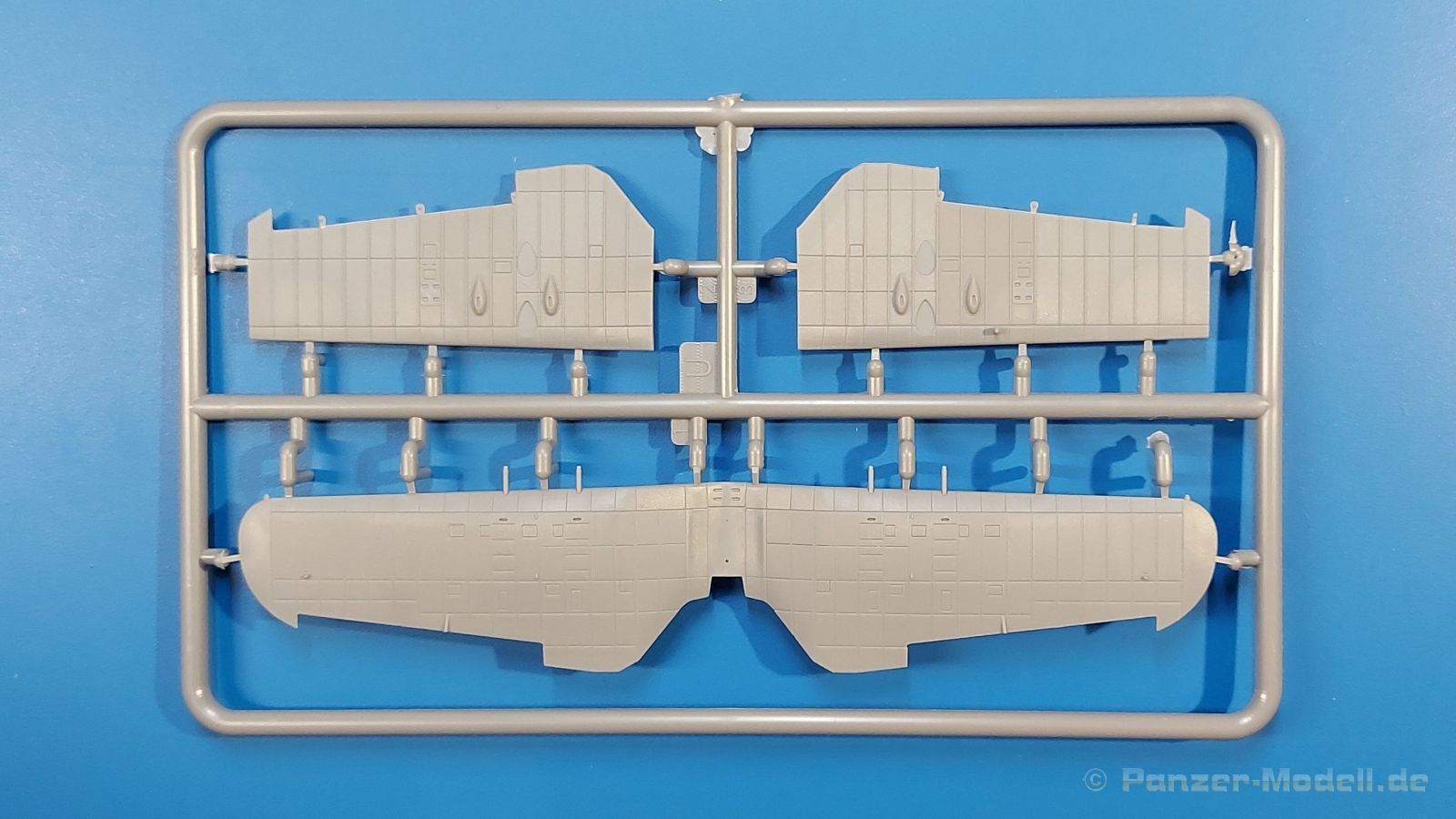 Das Original: Das PZL P.24 war ein, in Polen zwischen 1936 und 1939, für den Export produziertes, einmotoriges Jagdflugzeug, das auf Elementen des PZL P.11 aufbaute. Die Hauptnutzerländer waren Bulgarien, Griechenland, Rumänien und die Türkei. Mit dem 970 PS (723 kw) 14-Zylinder-Doppelsternmotor erreichte es 430 km/h. Die Bewaffnung bestand aus zwei 7,7mm MG und zwei 20 mm Kanonen, alle im Flügel untergebracht. Der Bausatz: IBG präsentiert uns hier ein Modell des interessanten Hochdeckers im Kleid der türkischen Luftwaffe. Wir finden im Karton 8 graue und 1 Klarsichtspritzling, 1 PE-Platine, Klarsichtfolie, Decals und die Bauanleitung. Die Spritzrahmen sind relativ dick im Vergleich zu den teils filigranen und gut detaillierten Teilen. Diese sind sauber ausgespritzt, ohne Grat und Versatz. Angüsse sind so gesetzt, dass Details nicht beeinträchtigt werden. Grobe Auswerferspuren sind mir nicht aufgefallen. Das Cockpit besteht aus Bodenplatte, Sitz und Steuerknüppel. Sitzgurte, Pedale und Trimmrad sind aus PE. Das Trimmrad PE-21 ist in der Anleitung fast nicht zu sehen. Da es sehr blass ausgedruckt ist. Im Cockpitbereich in den Rumpfhälften sehen wir feine Spanten. Für die Armaturentafel gibt es ein buntes Decal. Die Rumpfhälften mit versenkten Gravuren zeigen bereits viele Details. Der Motor besteht aus 2 Ringen zu je 7 Zylindern. Dazu kommt ein Ring mit den Auspuffauslässen, ein PE Ring, eine gelochte Abdeckung und die Motorabdeckung aus einem Teil. Unterhalb der Haube findet ein Luftkanal seinen Platz. Die Oberseite des geknickten Flügels besteht aus einem Teil, die Unterseite aus zweien. Die Flügelteile zeigen eine sehr feine Riffelung und etliche Wartungsklappen. Die Querruder werden separat angebaut. Der Knickflügel sitzt auf dem Rumpf vor der Cockpithaube auf und wird auf jeder Seite von 2 Stützen am Rumpf abgestützt. Auch die Heckflügel haben separate Ruder und auch je 2 Stützen pro Seite. Seitenleitwerk und Seitenruder sind ebenfalls als separate Teile vorhanden. Wie bereits beim Flügel finden wir beim Höhen- und Seitenleitwerk feine Rippen und Riffelungen. Das feststehende Fahrwerk besteht aus V-Trägern pro Seite, die mittels PE-Gestänge gesichert werden. Die Räder sind wie beim Original einfach gehalten. Der Hecksporn ist bereits an den Rumpfhälften angegossen. Pro Seite kommen 2 winzige Bomben unter die Flügel. Propeller und Nabe bestehen aus einer Einheit und werden fest mit der Motornabe verklebt. Oben in der Mitte des Knickflügels wird eine Visiereinrichtung aus PE Teilen angebracht. Bei der Cockpithaube hat die Wahl zwischen Klarsichtteilen aus Plastik oder Rahmen aus PE, in die Folien als Cockpitverglasung eingesetzt werden. Anfänger werden sich vielleicht eher mit den Plastikteilen begnügen, Fortgeschrittene versuchen sich wohl eher an PE und Folien. Gemäß Anleitung kann man 2 Flugzeuge der türkischen Luftwaffe mit den Decals darstellen: