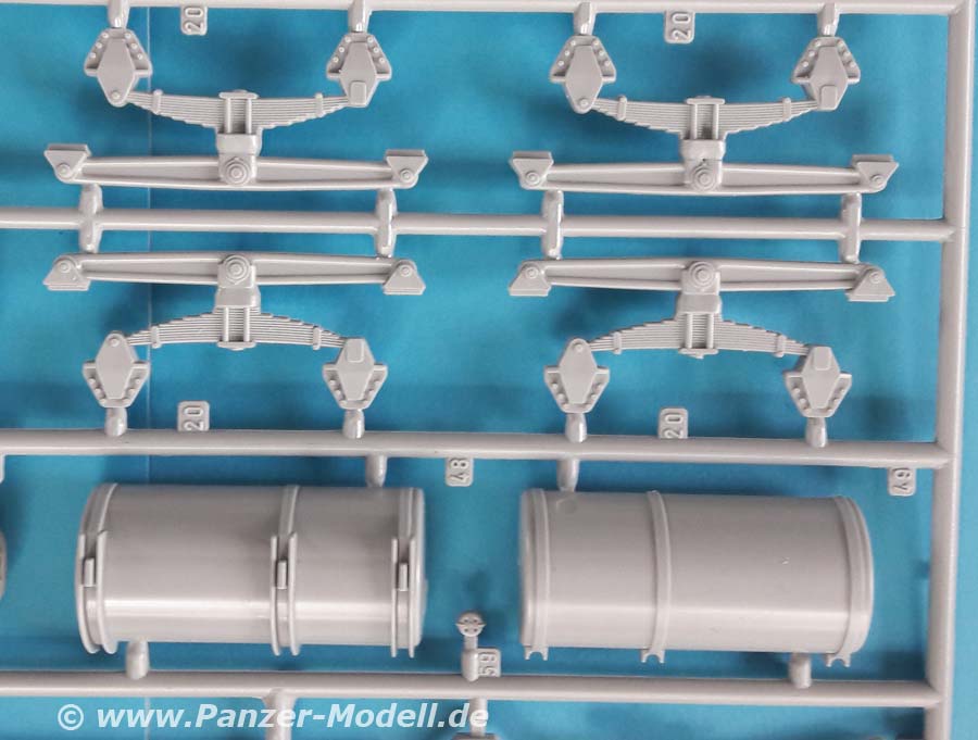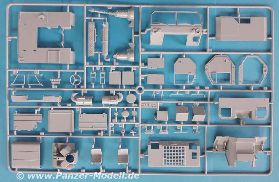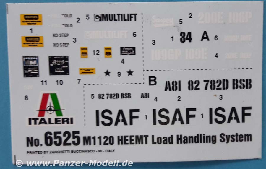 M1120 HEMMT Load Handling System 1:35 Moderne Armeen sind im hohen Maße auf die Versorgung mit Nachschub angewiesen, um die Mobilität ihrer Truppen selbst unter Gefechtsbedingungen zu gewährleisten. Das heißt, dass im Idealfall die Nachschubtruppen den Kampfverbänden bis in die vordersten Linien folgen müssen. Bei der US Army wird diese Aufgabe in der 10 Tonnen Klasse von den Fahrzeugen der Heavy Expanded Mobility Tactical Truck Familie übernommen. 1982 Eingeführt, wurden diese Fahrzeuge kontinuierlich weiterentwickelt. Im Jahre 2000 wurde damit begonnen, ältere Fahrzeuge vom Typ M977 und M985 welche beide eine Stahlpritsche besaßen , mit einem Hakenabrollwechselpalettensystem der Firma Multilift umzurüsten. Diese liefen dann ab 2001 der Truppe zu. Italeri geht hier den gleichen Weg. Basierend auf dem grundsoliden Modell des M977 von 1996 wurde der Spritzling mit der Stahlpritsche durch das System der Hakenabrollwechselpaletten ersetzt. Ebenso wurden die früheren Spritzguss Reifen durch schön gemachte Gummireifen ersetzt. An den Gussästen findet sich kaum Grat und die Auswerfermarken konzentrieren sich auf Bereiche, welche nach dem Zusammenbau nicht sichtbar sind. Die Detaillierung bewegt sich auf einem soliden Niveau, es ist aber noch Luft nach Oben. Zum Beispiel fehlen sämtliche Hydraulikleitungen. Hier wird der Aftermarket Bereich sicher bald einspringen. Zur Detaillierung der Kabine können jedoch bereits die vorhandenen Sätze für den M977 verwendet werden. Aber auch aus der Box kann ein beeindruckendes Modell dieses interessanten Fahrzeuges entstehen, zumal in der Kombination mit dem ebenfalls erhältlichen Container von Italeri. Die Decaloptionen erlauben die Darstellung zweier Fahrzeuge 2011 in Afghanistan. Fazit: Ein vernünftiges Modell mit dem Potential für Verbesserungen einen Kaufempfehlung kann bedenkenlos ausgesprochen werden.