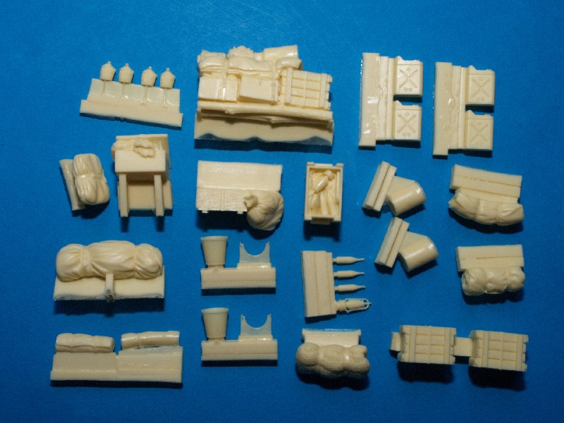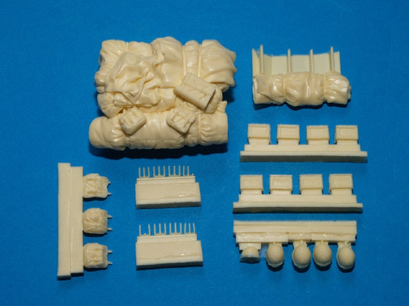 Neben den üblichen Kisten, Benzinkanistern und persönlichen Ausrüstungsgegenständen, gibt es hier auch 'übervolle' Staukästen, bei den der Deckel nicht mehr zuging. Eine nette Sache, wie ich finde. Darüber hinaus gibt es an der Qualität der einzelnen Resinteile nichts auszusetzen; so sucht man Lufteinschlüsse vergebens.