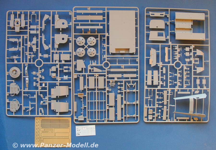 Im Bausatz enthalten sind 12 Spritzlinge, eine PE Platine und ein Decal Bogen.