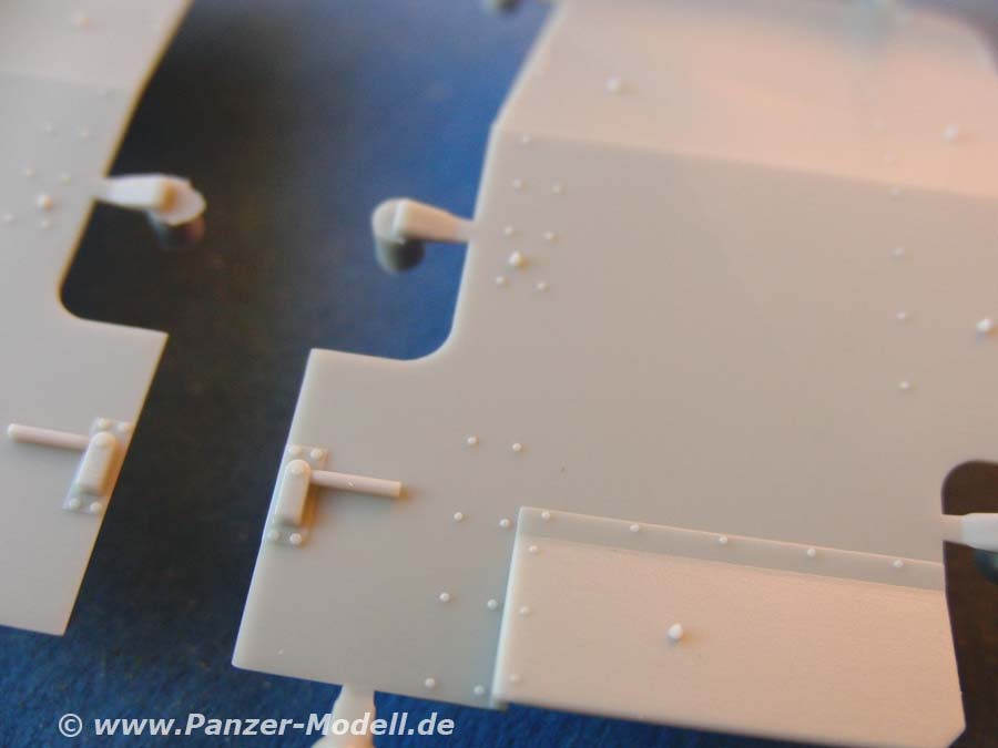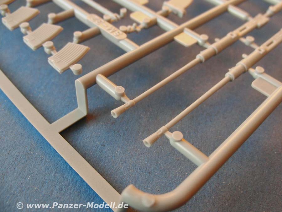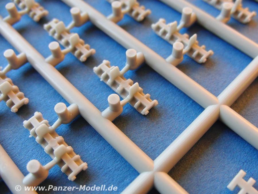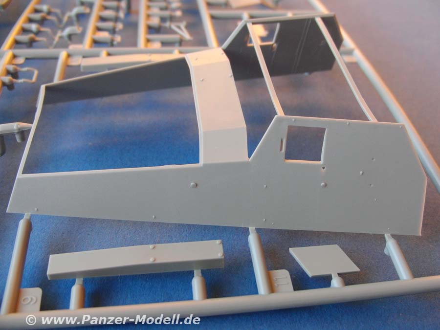 Die Plastikteile machen einen guten und detaillierten Eindruck. Für weitere Detaillierungen, wie z.B. den Gittern an der Ladefläche, liegen passende PE Teile bei.