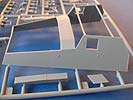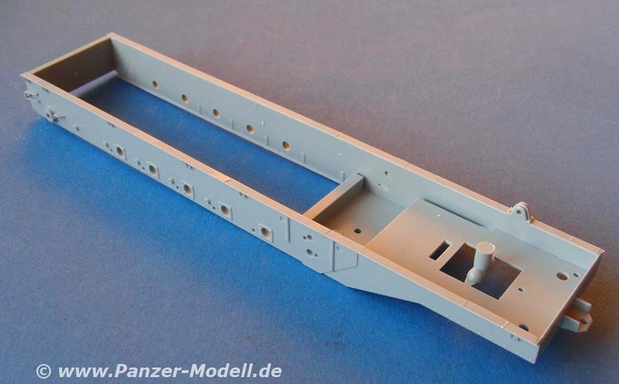 Der Fahrerraum ist recht umfangreich und ziemlich detailliert dargestellt. zwar ließe sich auch der Motorraum auch offen darstellen, aber hier mangelt es dem Bausatz an einer entsprechenden Motorraumdarstellung.