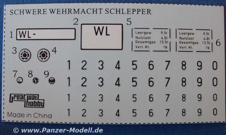 Ein farbiger, überlanger A4 Bogen zeigt die Farbgebung eines sWs in Dreifarbtarnung. Die Farbangaben sind dabei von Hobby Color, Tamiya und Vallejo.
